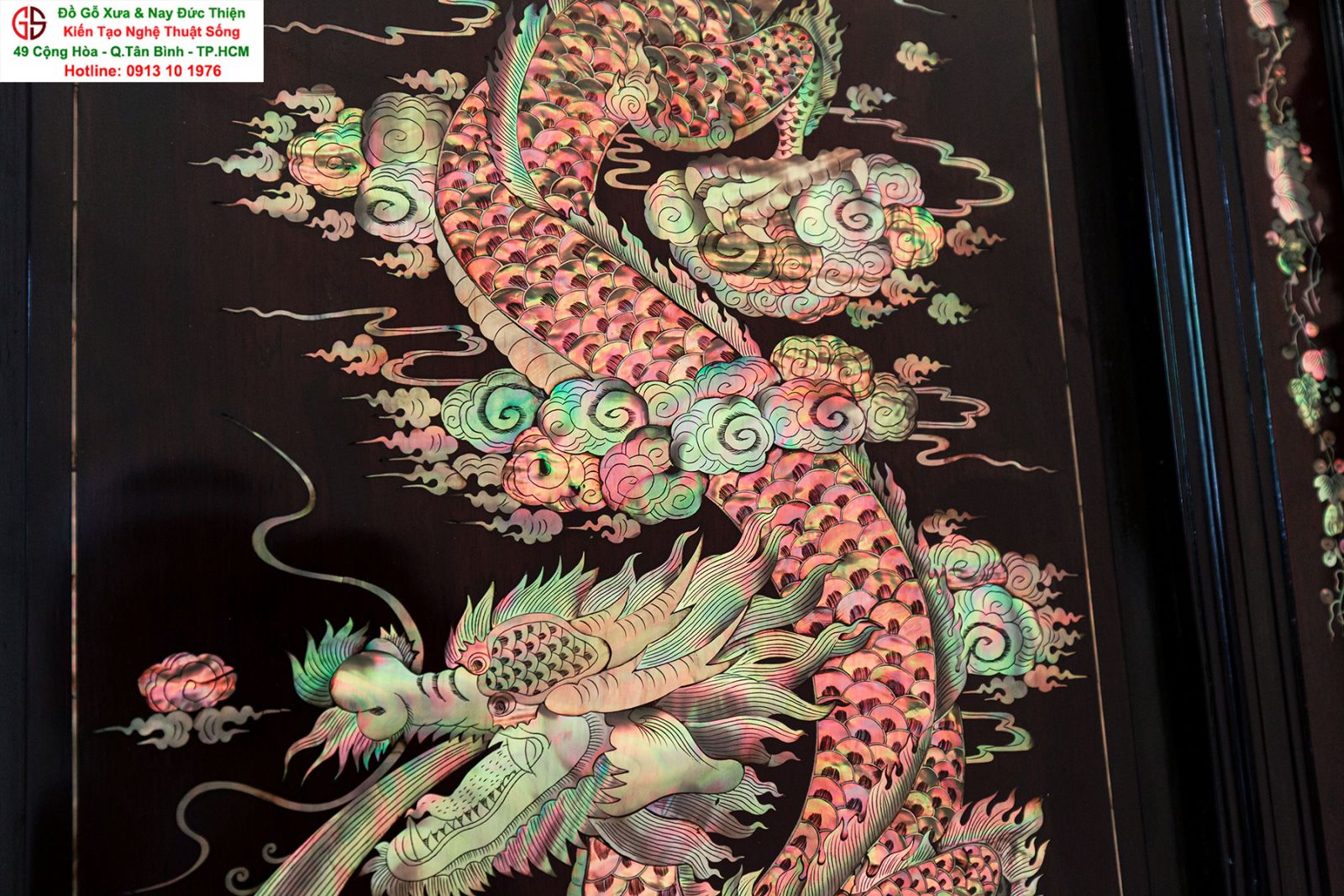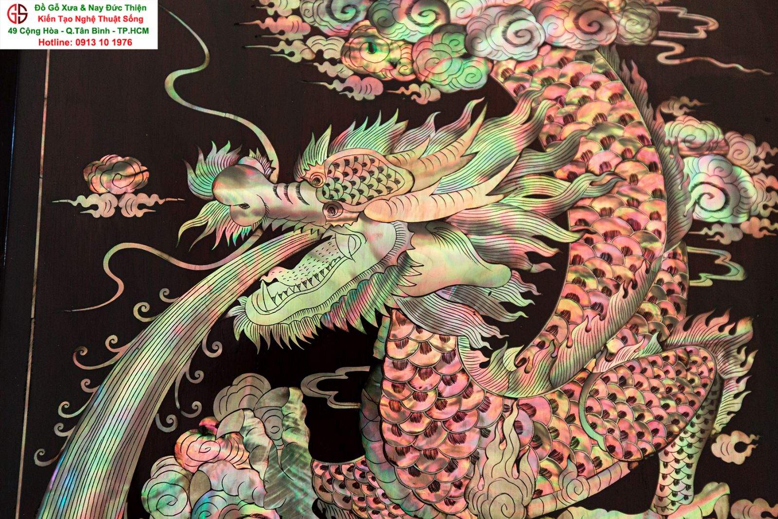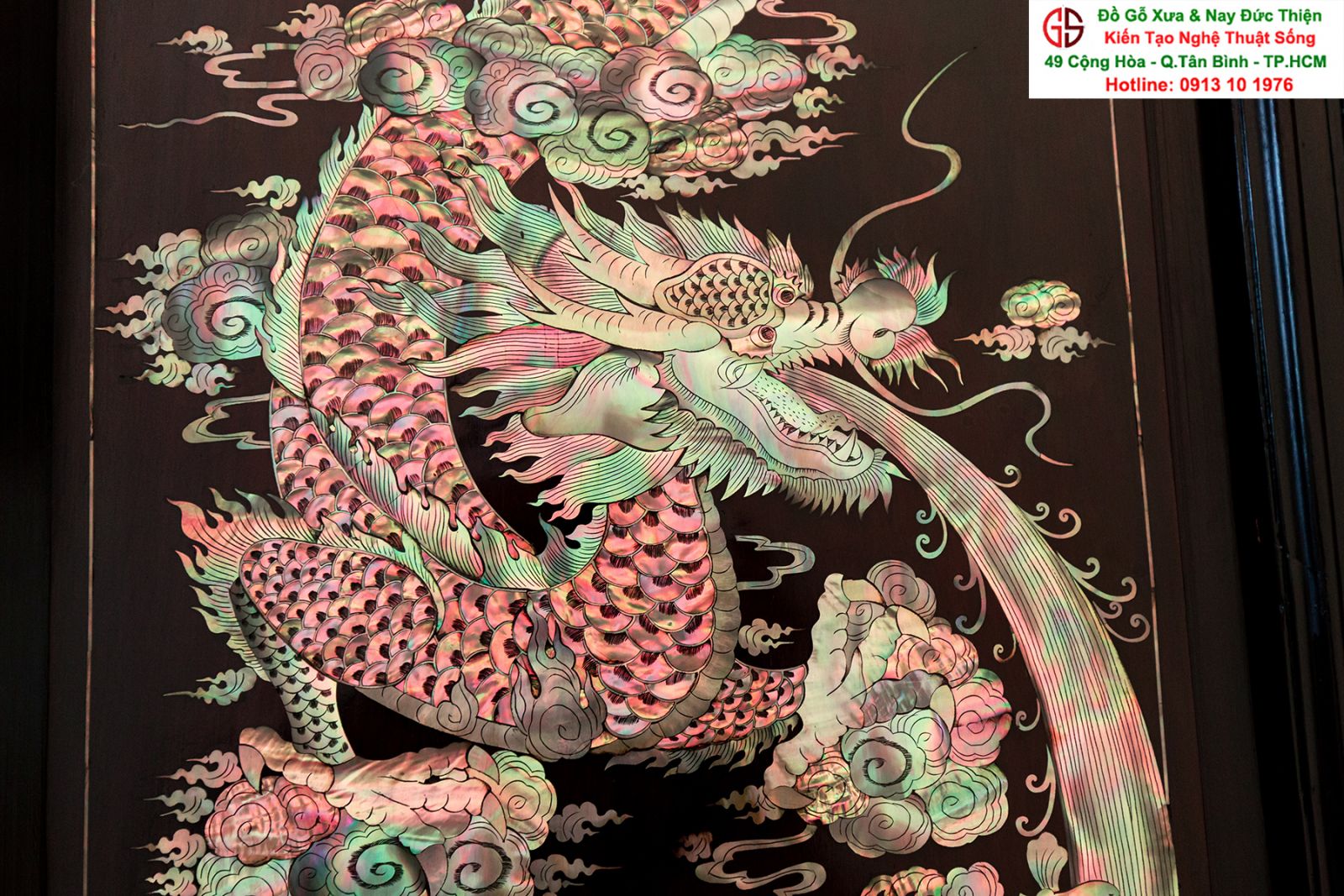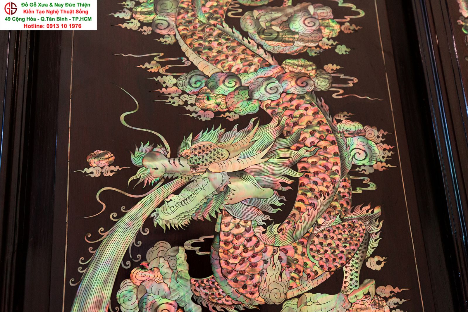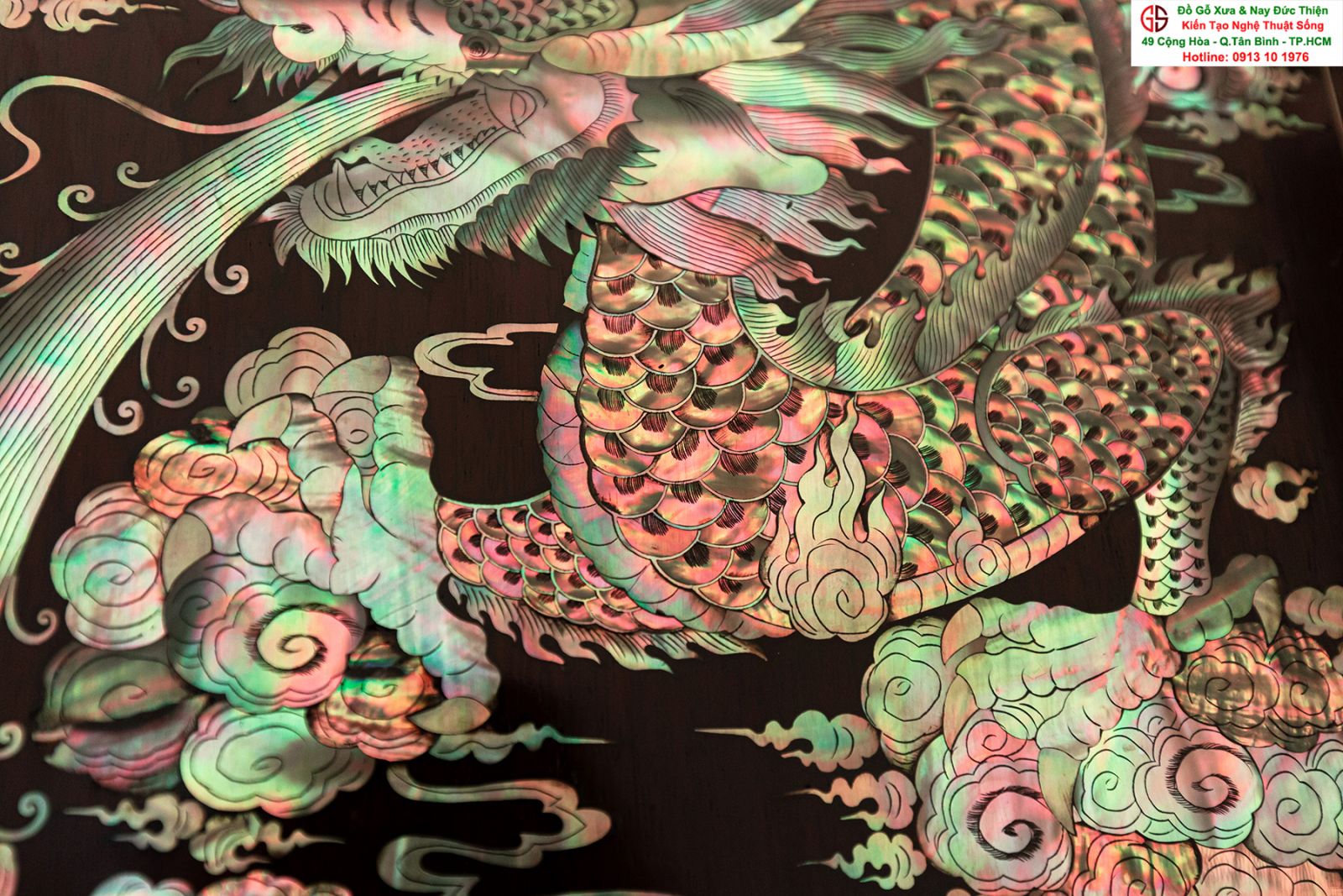 TỦ ÁO GỖ GỤ KHẢM ÓC ĐẸP [ TÍCH CÁ CHÉP HÓA RỒNG ]