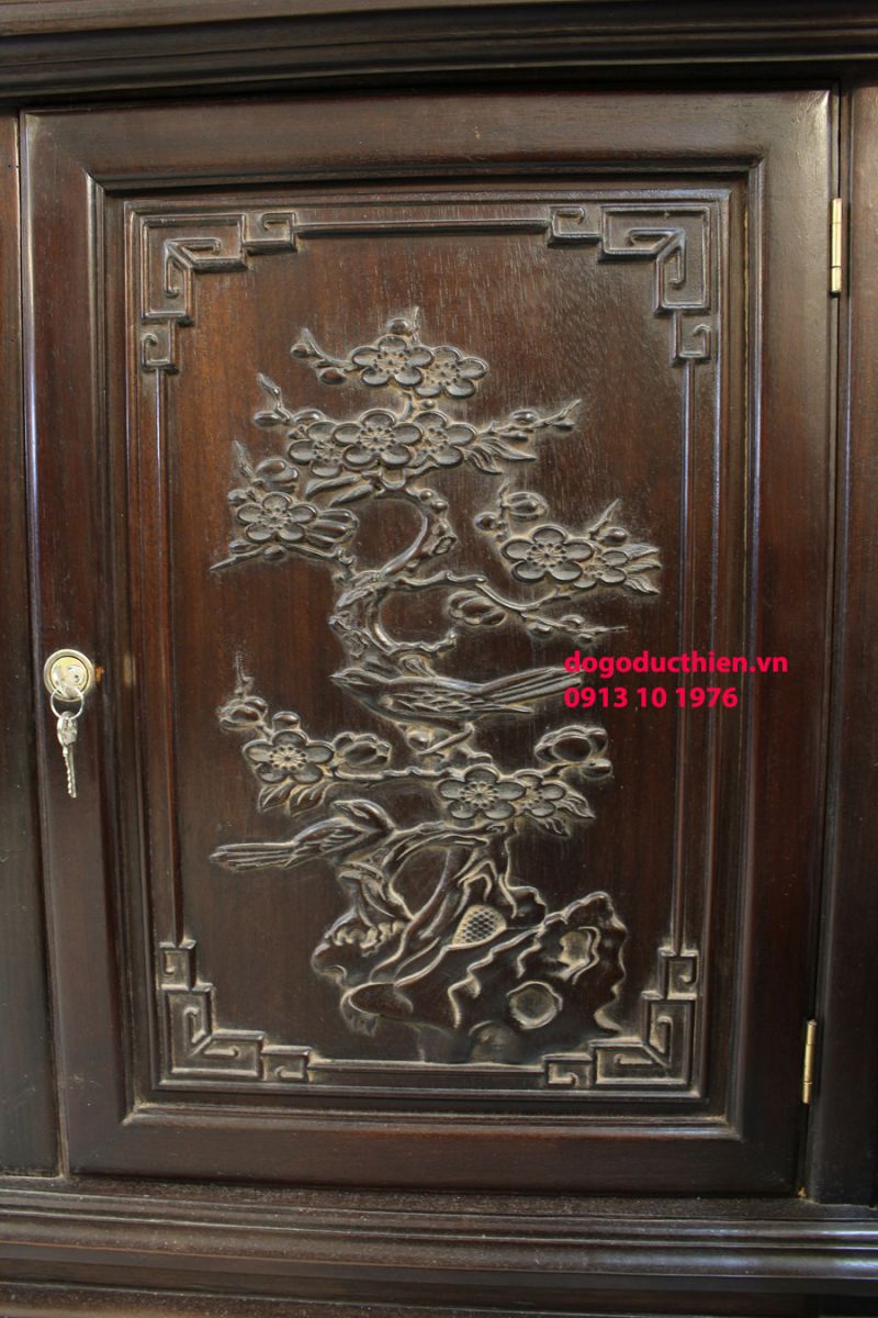 Một phòng khách đẹp, sang trọng không thể thiếu một chiếc tủ bày đồ đẹp, đó vừa là nơi giúp gia chủ lưu giữ những những đồ vật có giá trị vượt thời gian, những món đồ lưu niệm, những cuốn sách hay, rượu quý...bản thân nó cũng mang nét đẹp riêng tô điểm cho phòng khách của gia chủ. Chiếc tủ nhỏ xinh được người nghệ nhân chạm khắc cầu kỳ tinh xảo và tỉ mỉ trên chất liệu gỗ gụ ( gõ mật) - gỗ quý thuộc nhóm 1, bền đẹp và giá trị mãi theo năm tháng.