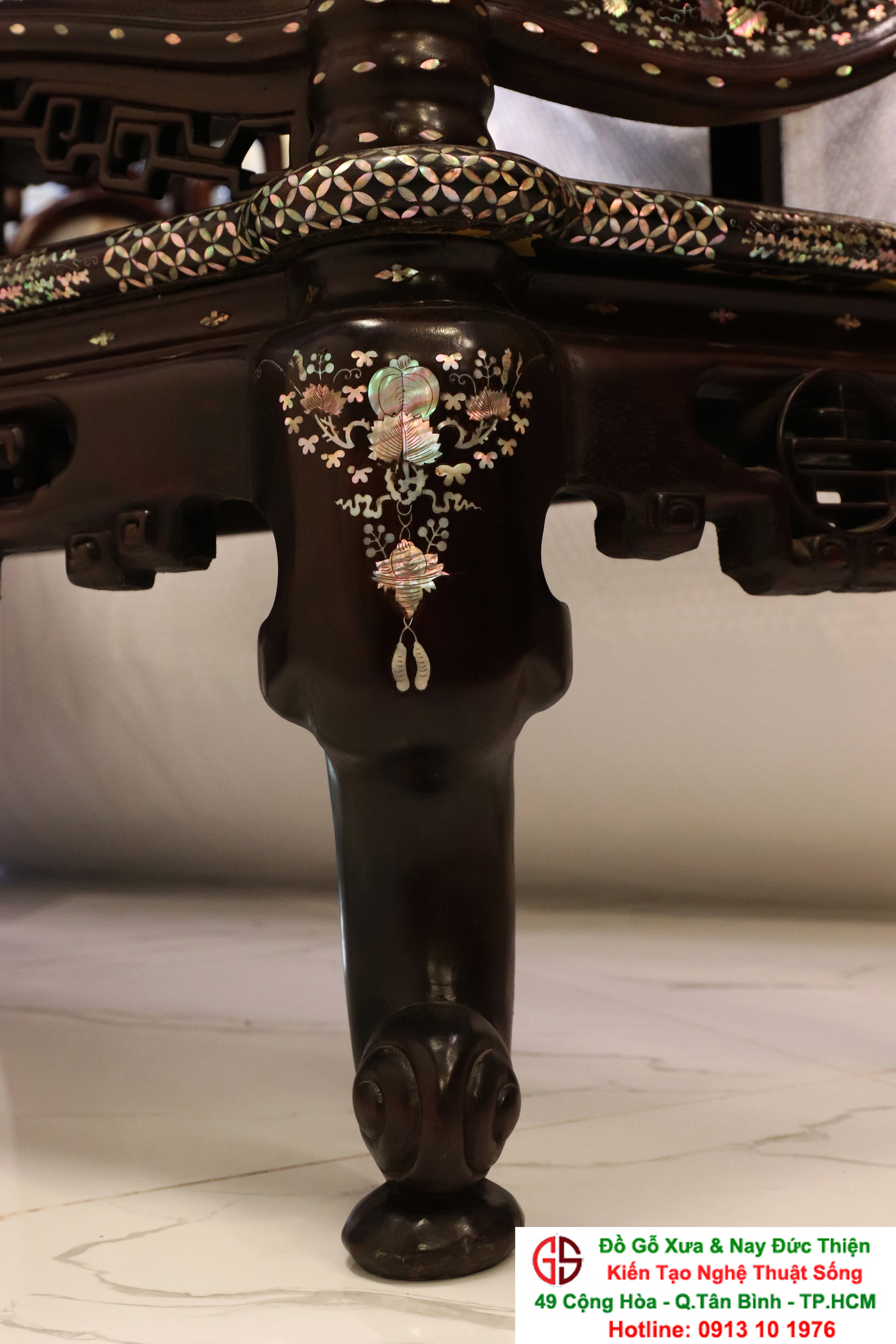 - Bàn ghế Louis, đôn trống gỗ trắc, bộ bàn ăn cẩn ốc, bàn ghế phương kỷ, bàn trung đường cẩn ốc xà cừ