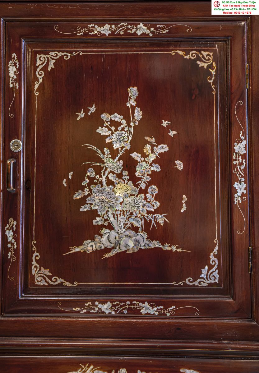 + Chất liệu: Gỗ Hương - khảm ốc xà cừ