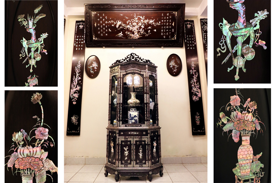 - Tranh cẩn ốc xà cừ: tranh tứ quý cẩn ốc, tranh vinh quy bái tổ, tranh phượng hồng, tranh tứ bình cẩn ốc, tranh tùng cúc trúc mai, tranh cổ đồ.