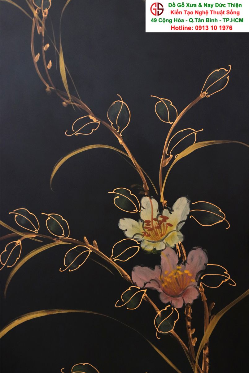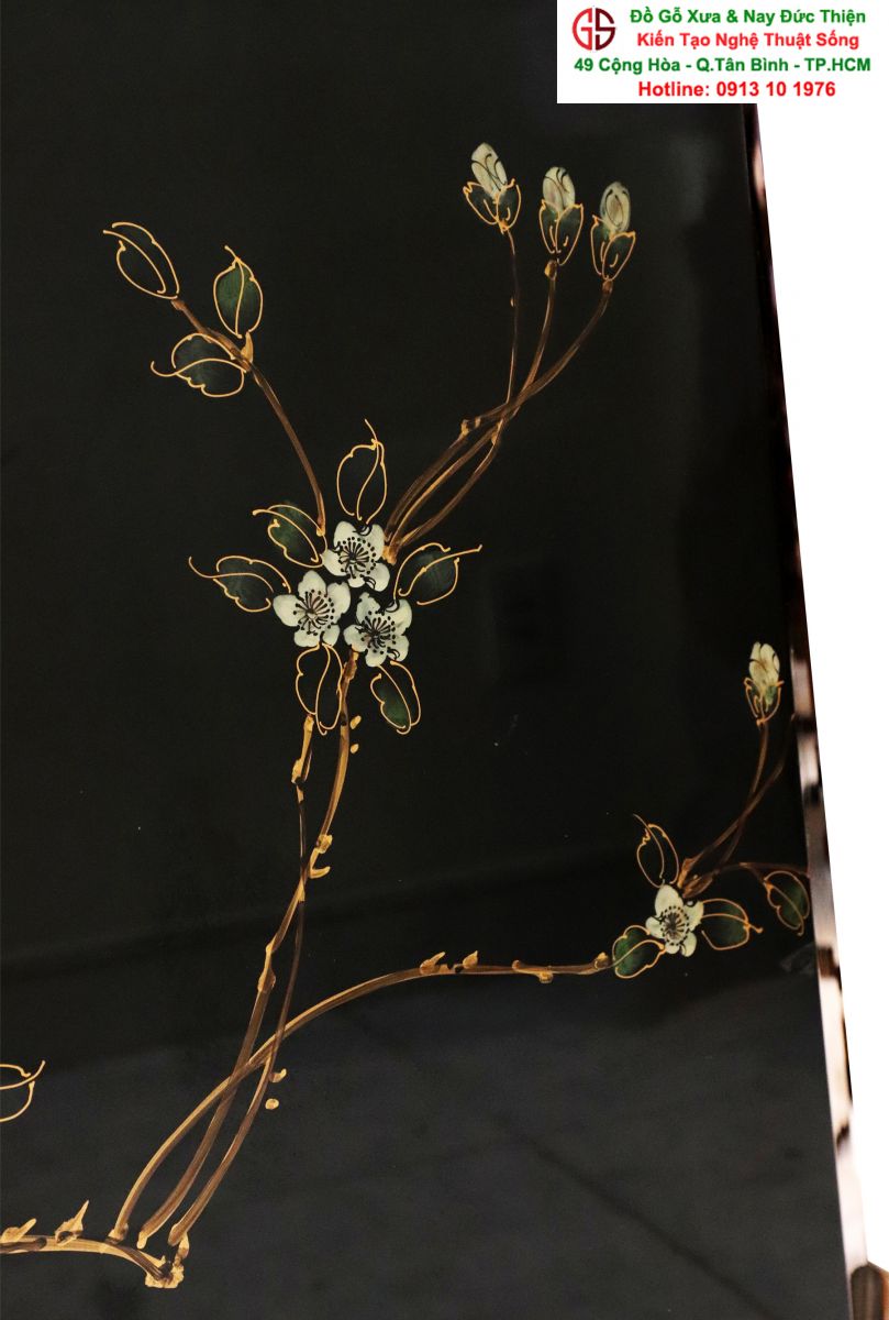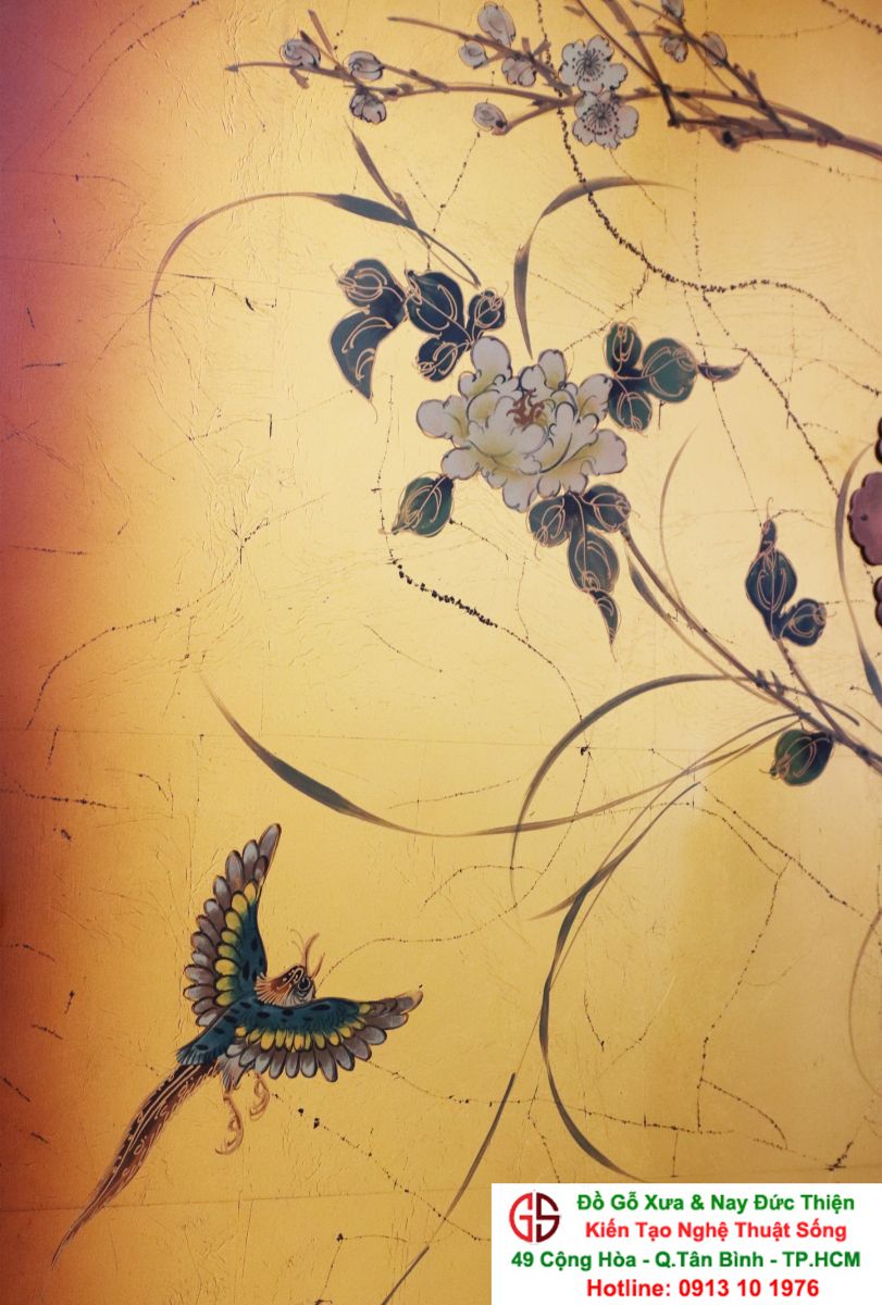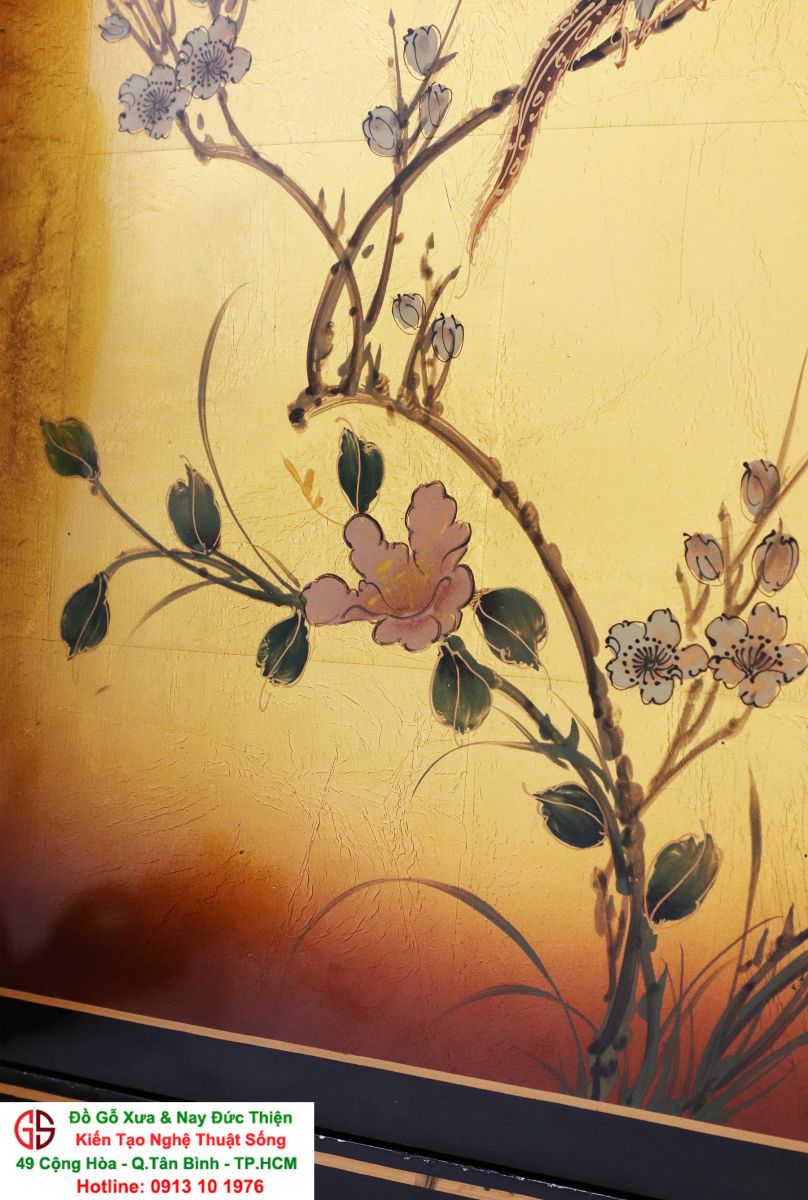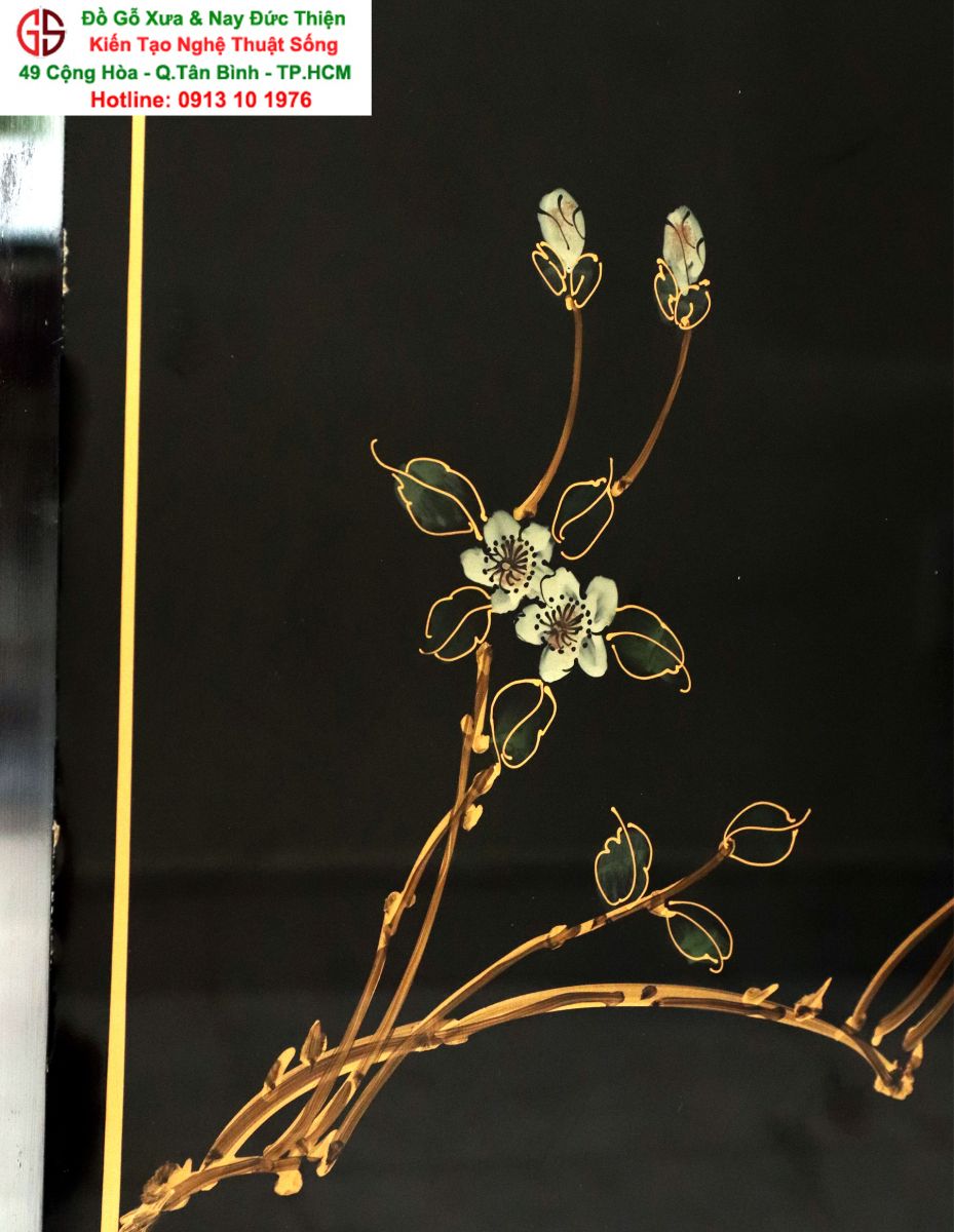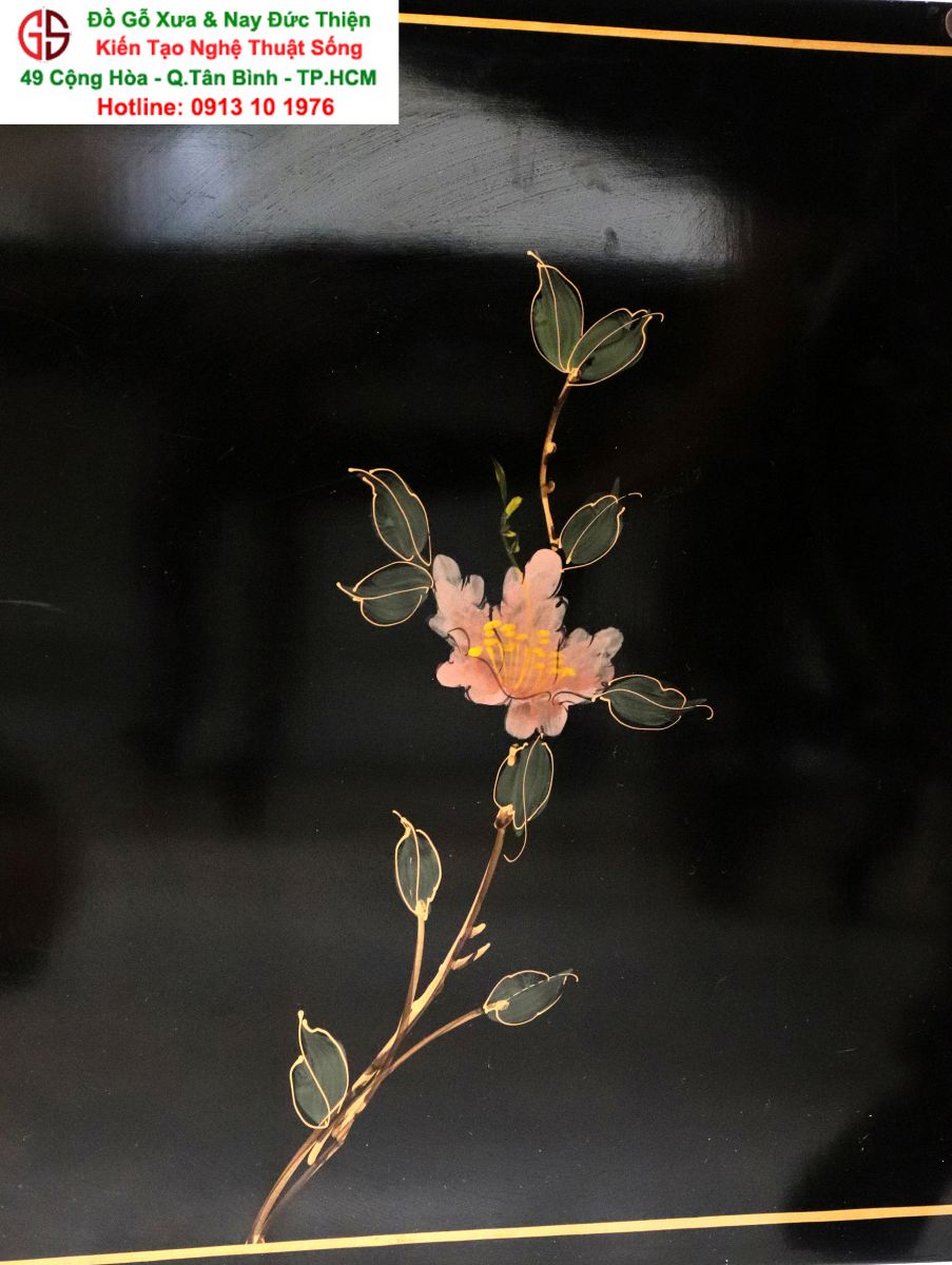 + Chất liệu: Gỗ sơn mài - Dát vàng