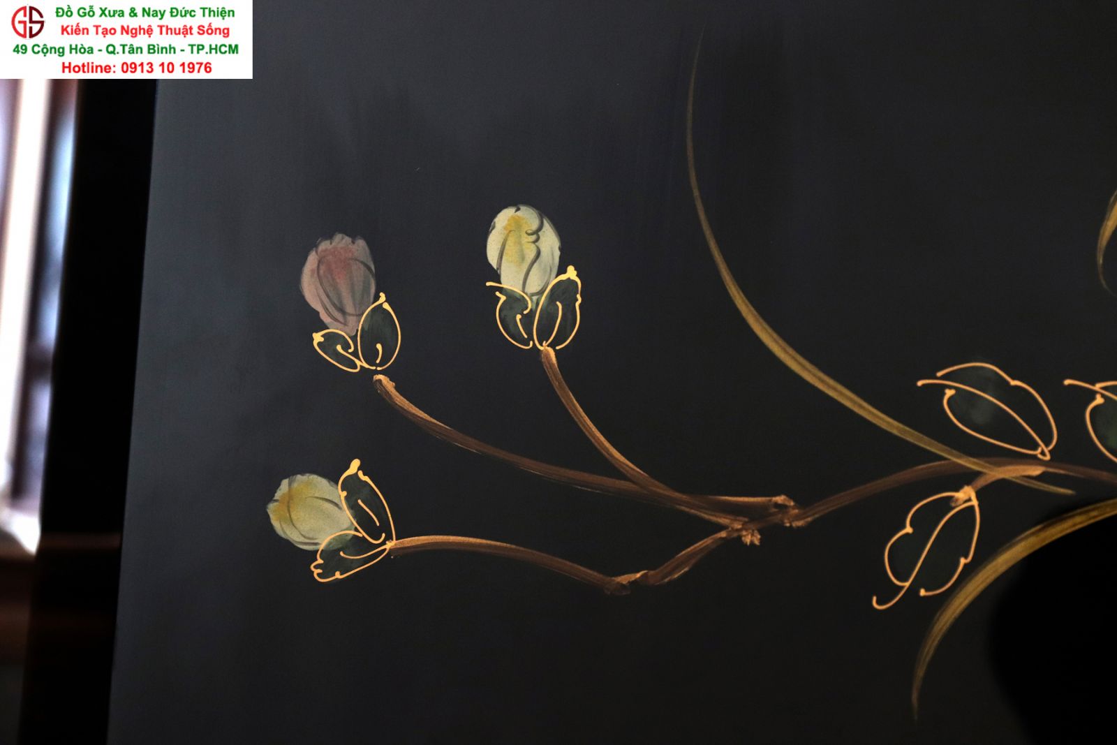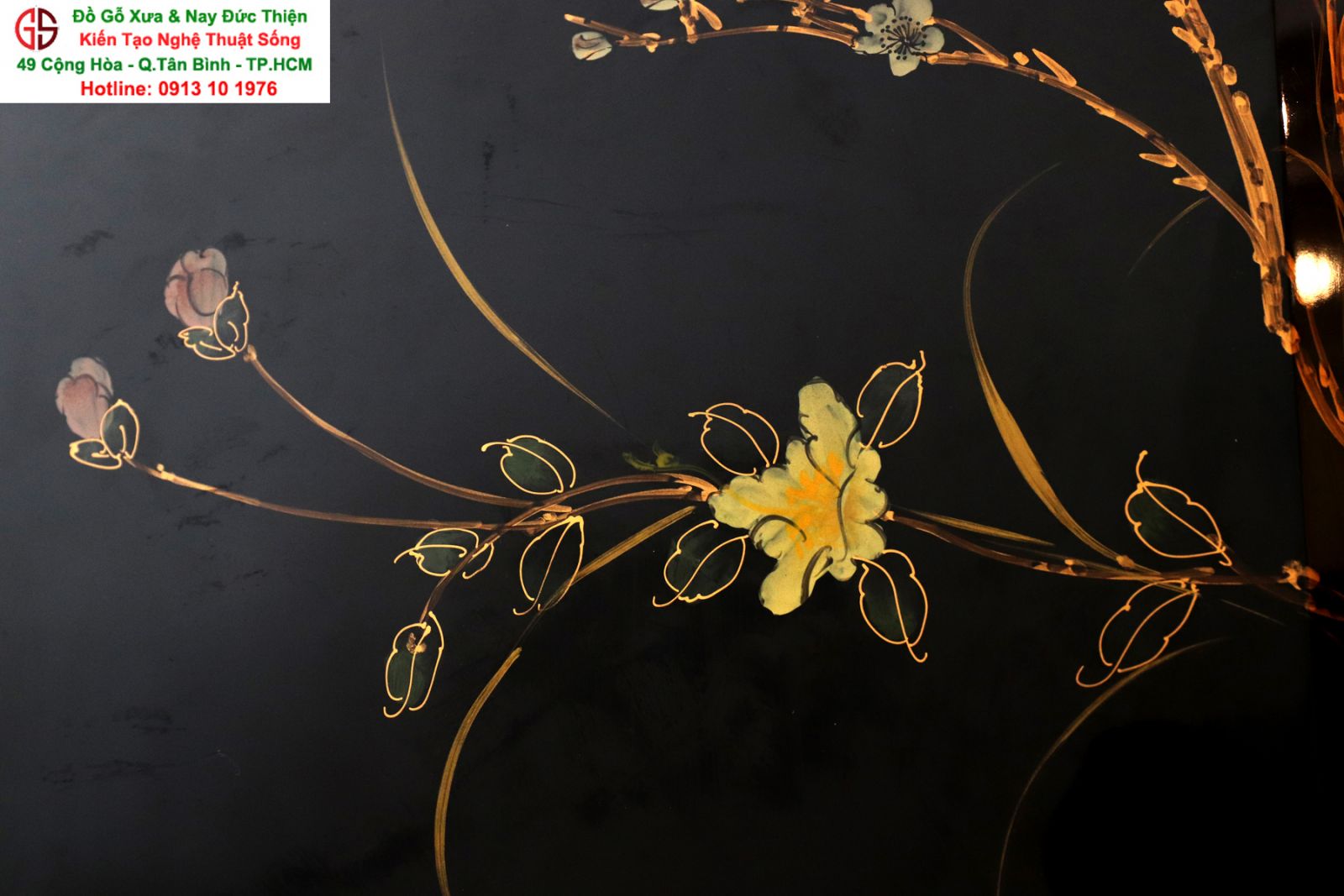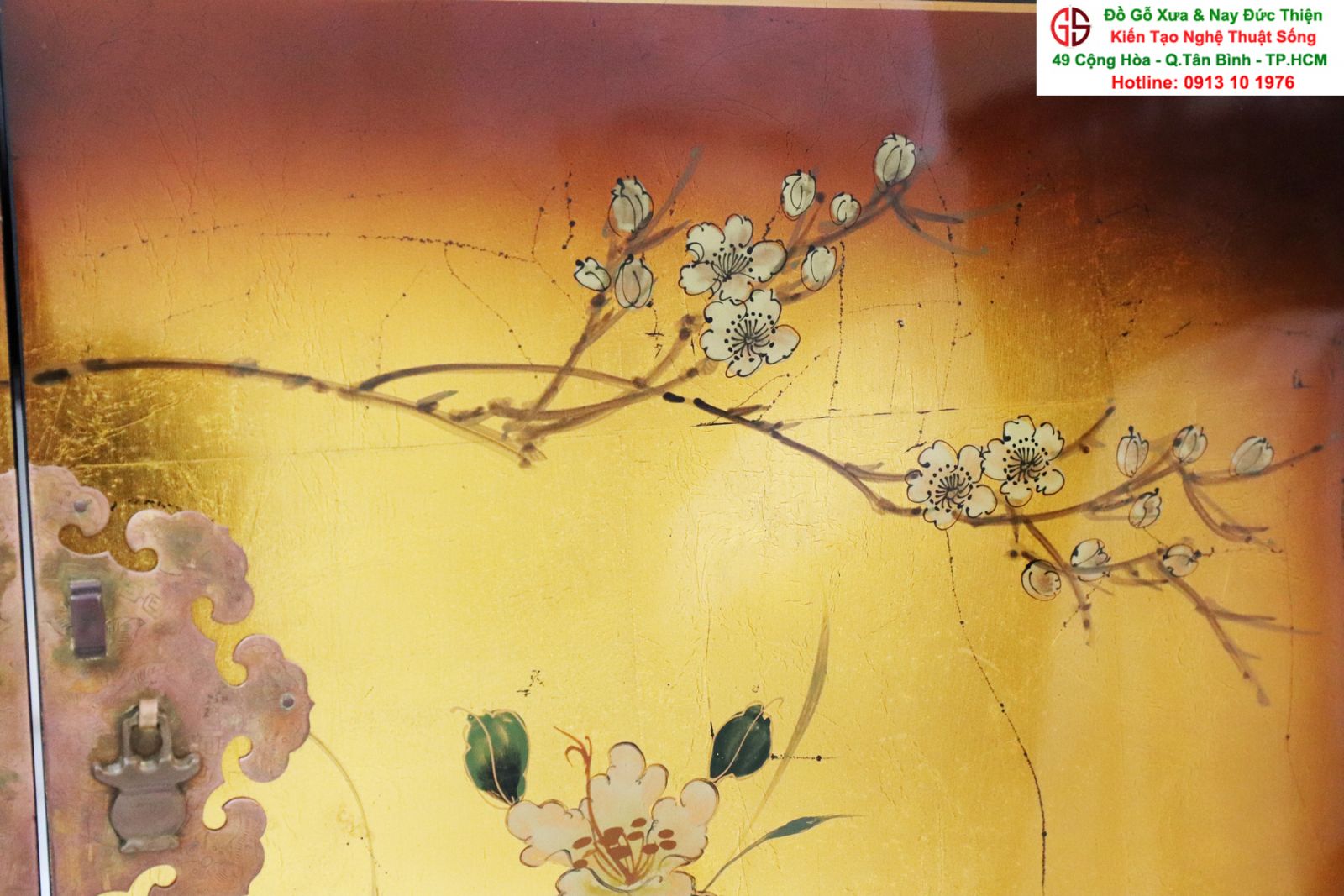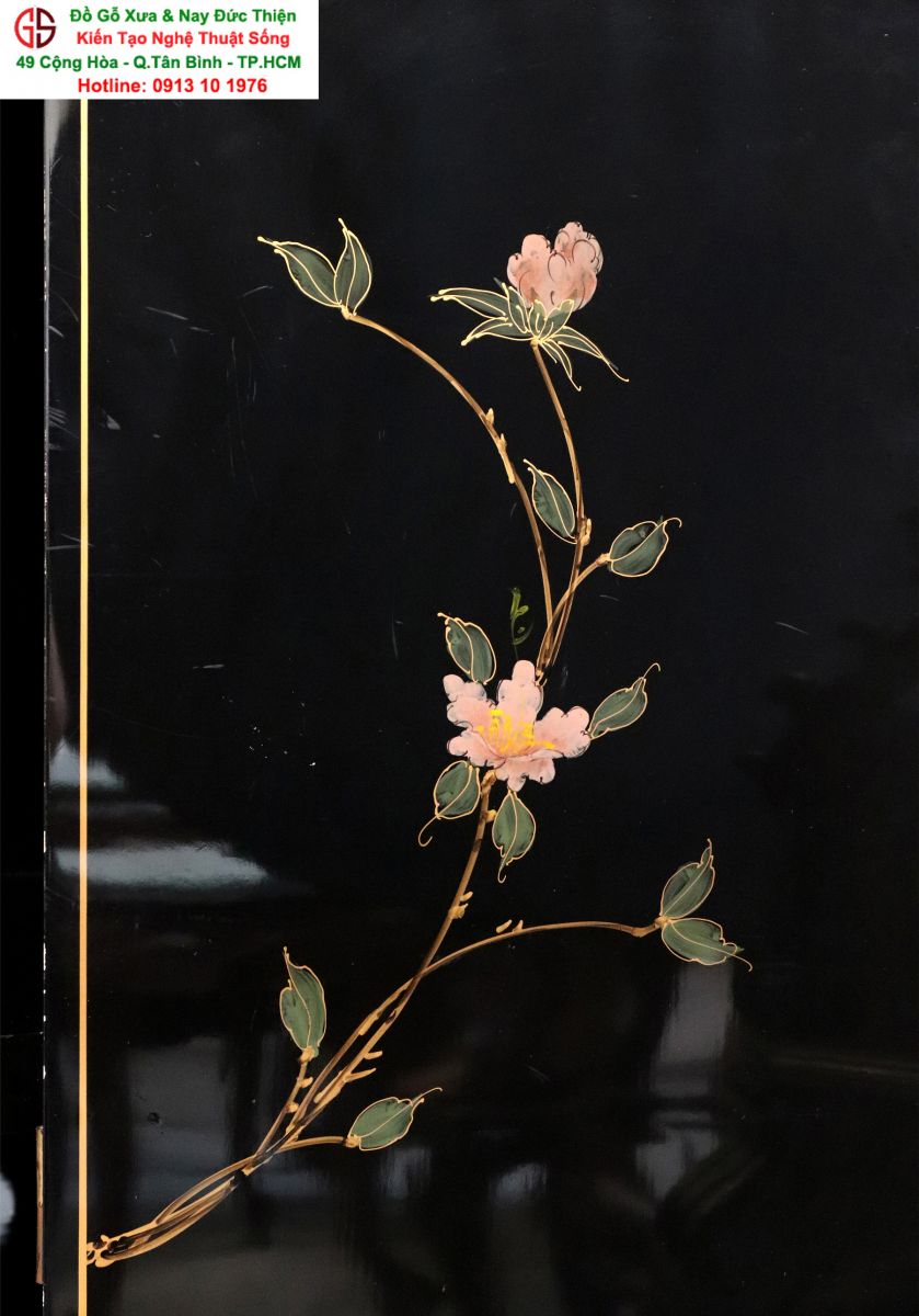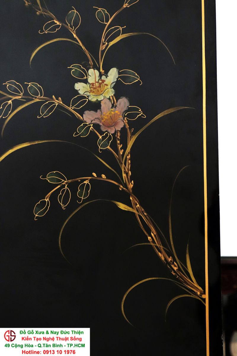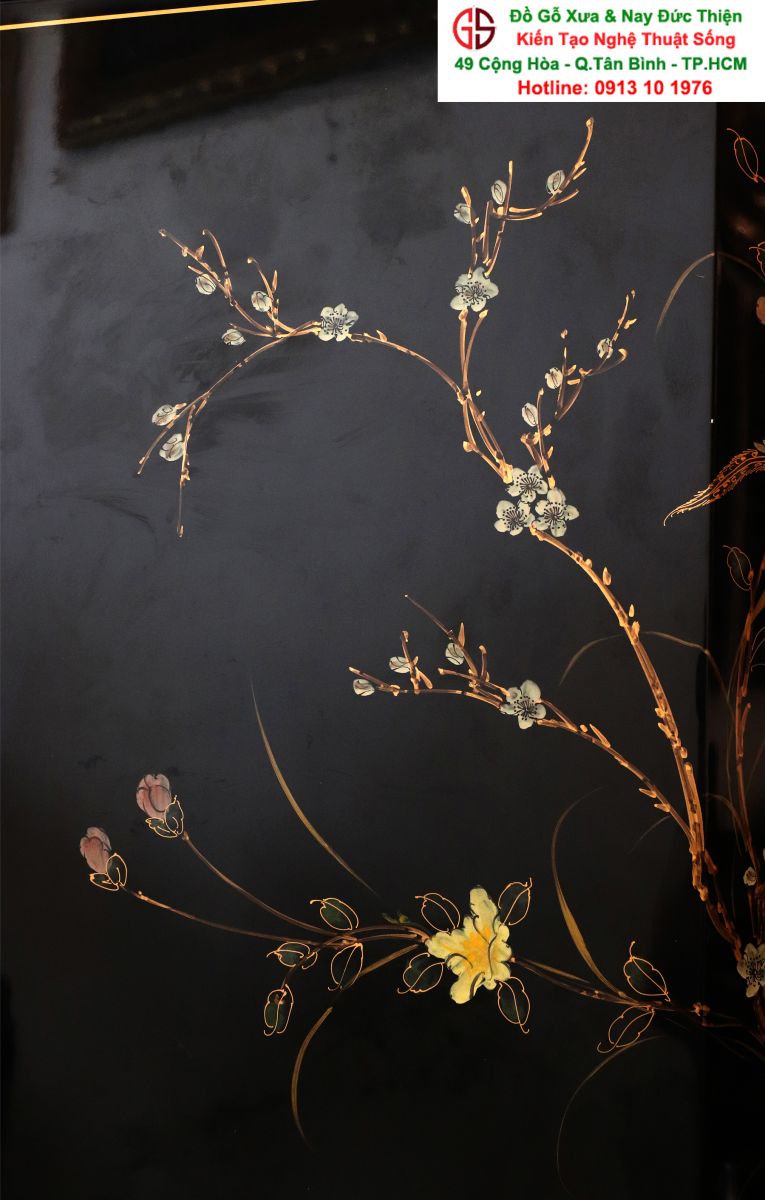 + Chất liệu: Gỗ sơn mài - Dát vàng
