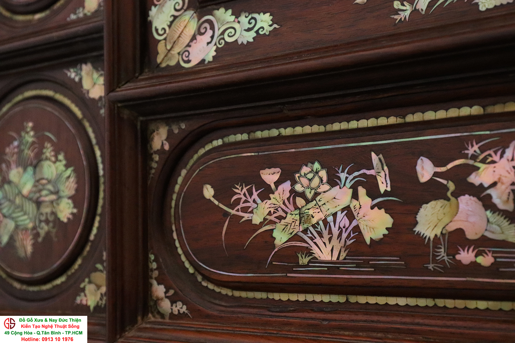 - Bàn ghế Louis, đôn trống gỗ trắc, bộ bàn ăn cẩn ốc, bàn ghế phương kỷ, bàn trung đường cẩn ốc xà cừ