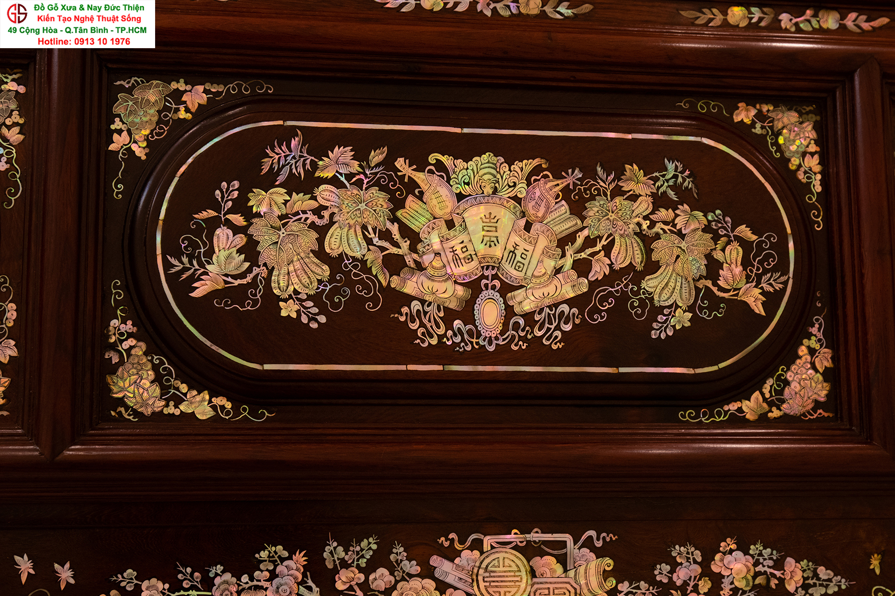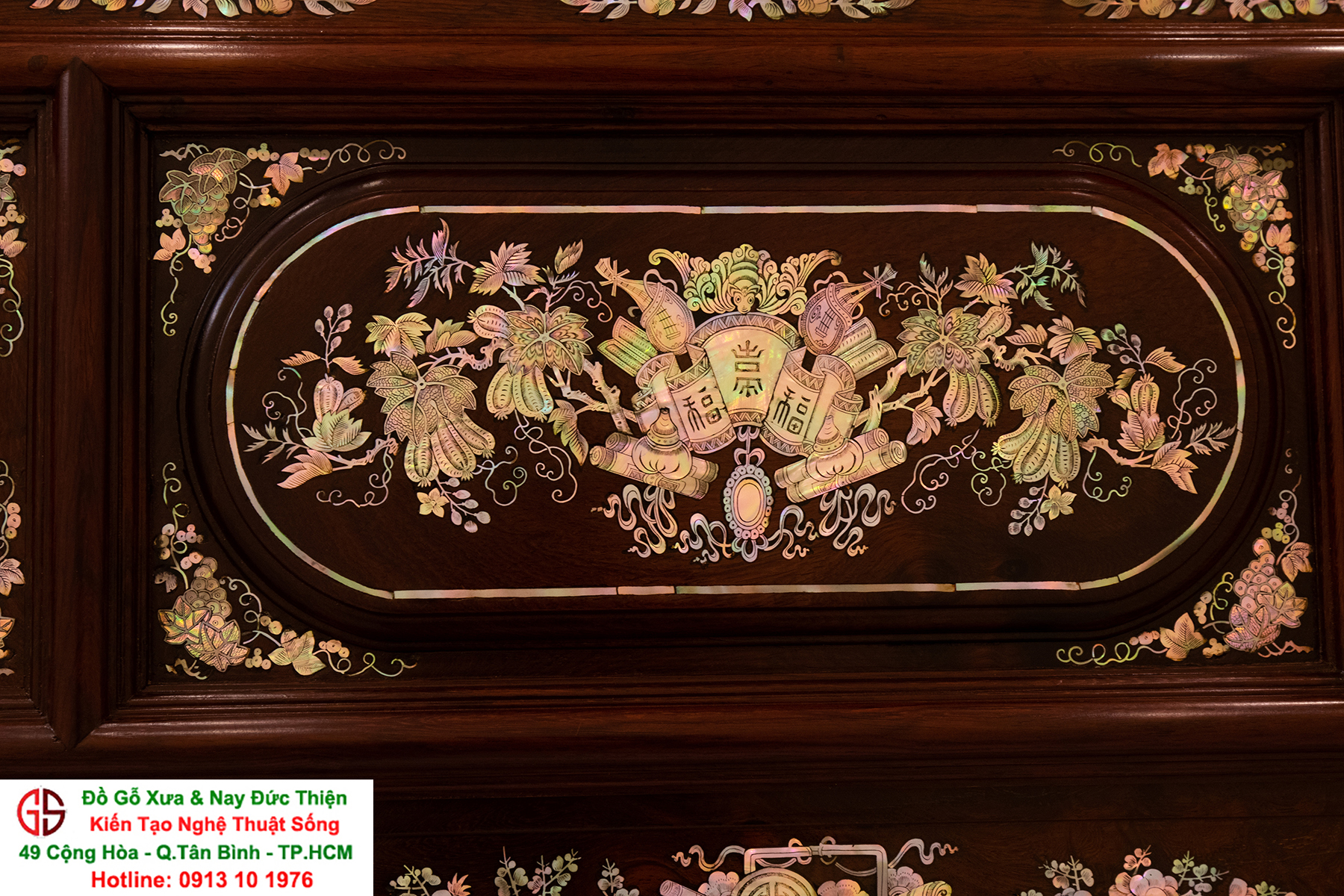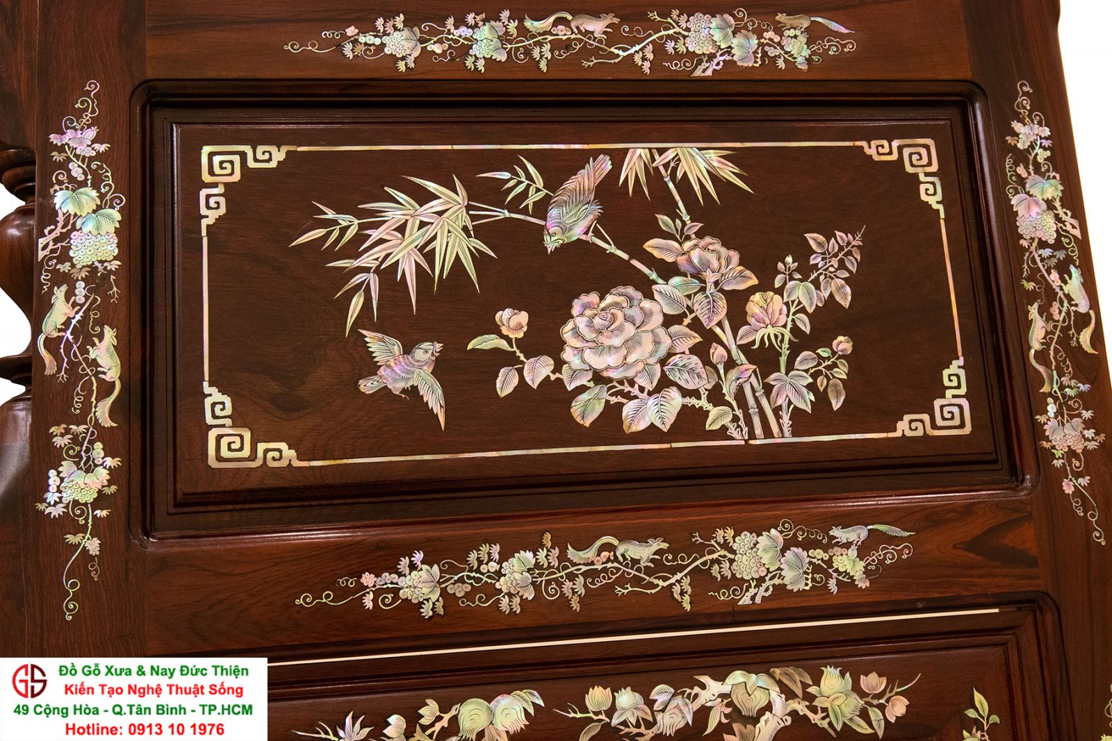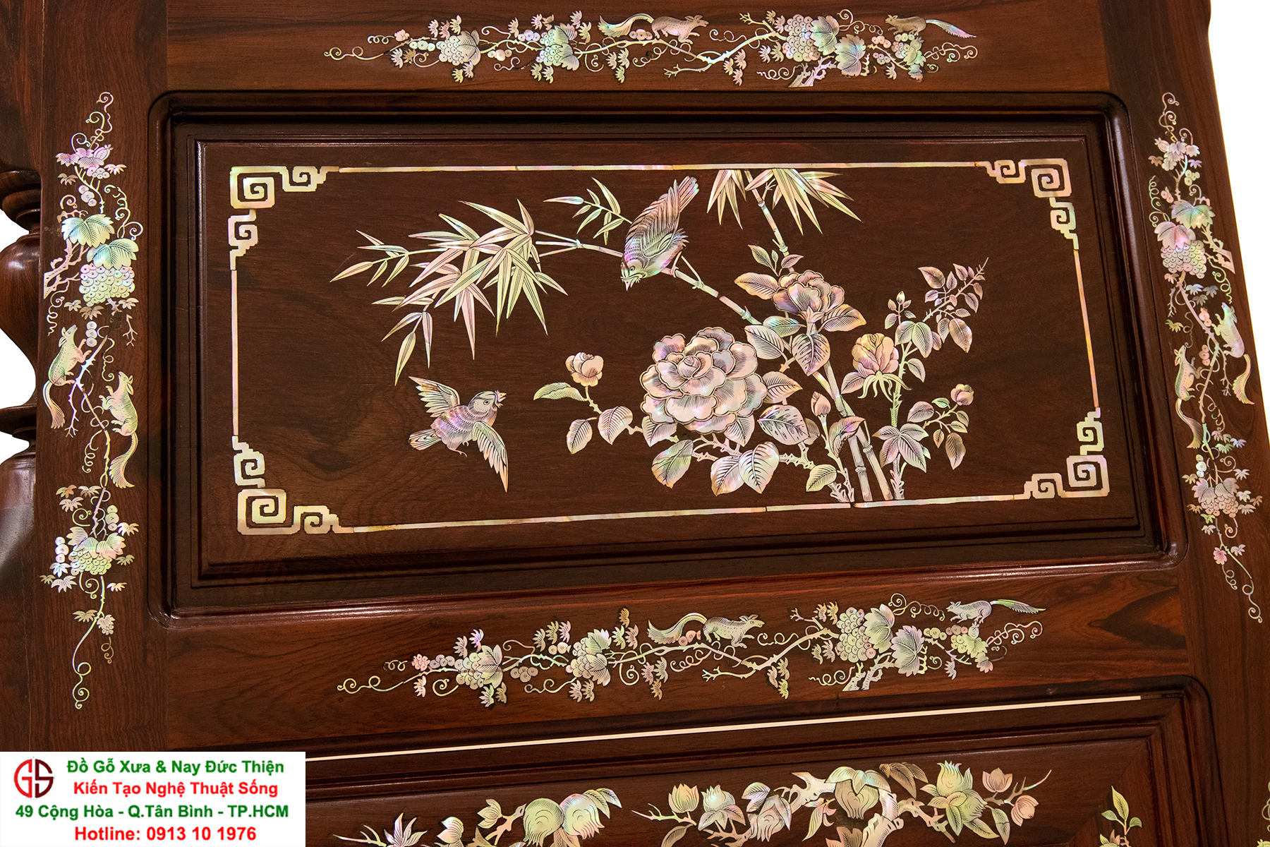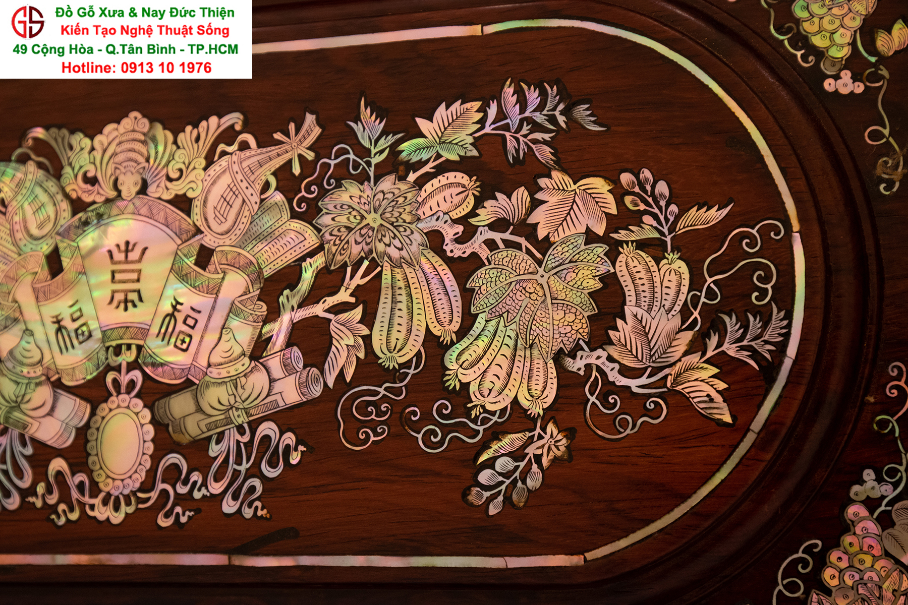 + Chất liệu: Gỗ Cẩm Lai + ốc Xà Cừ xịn