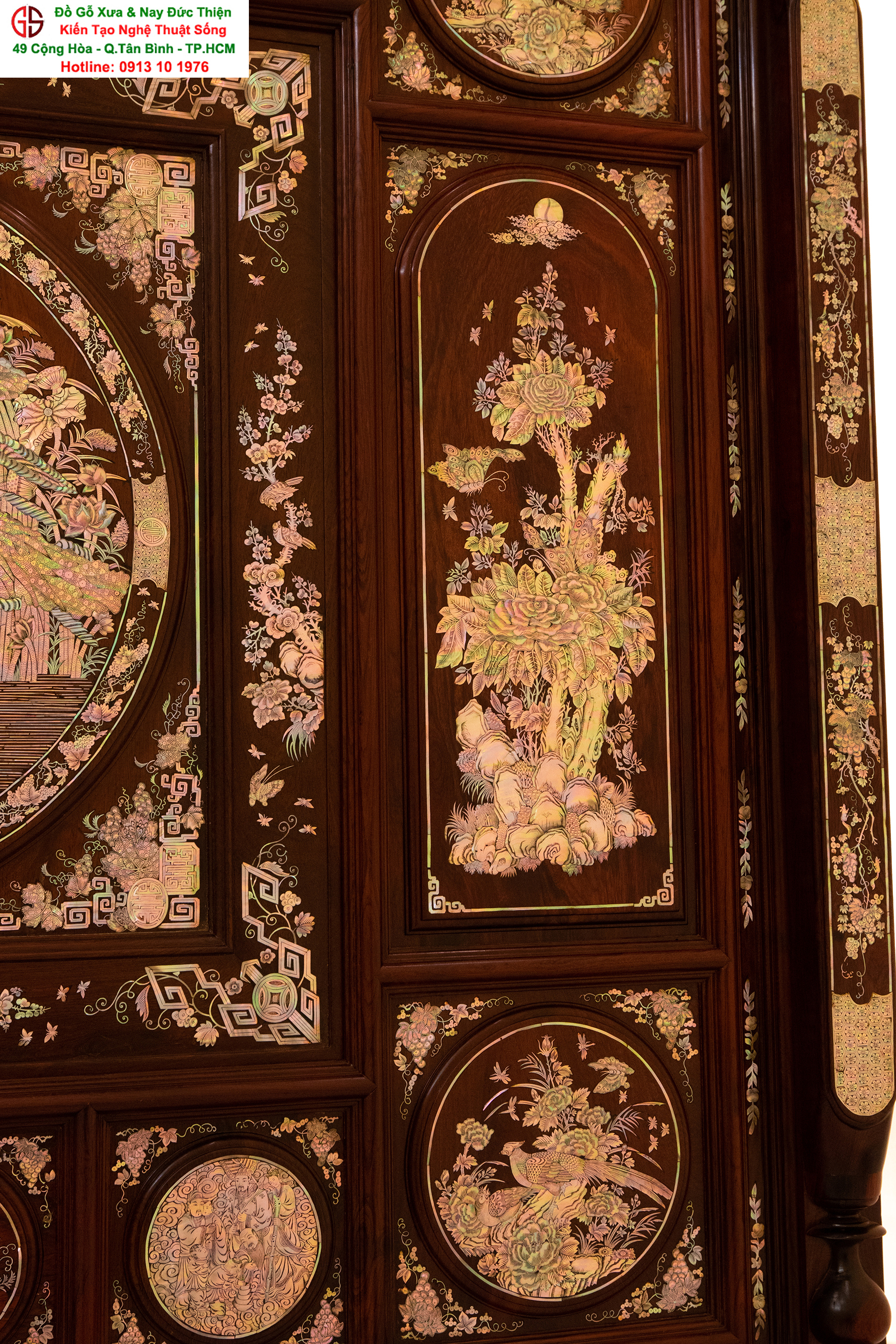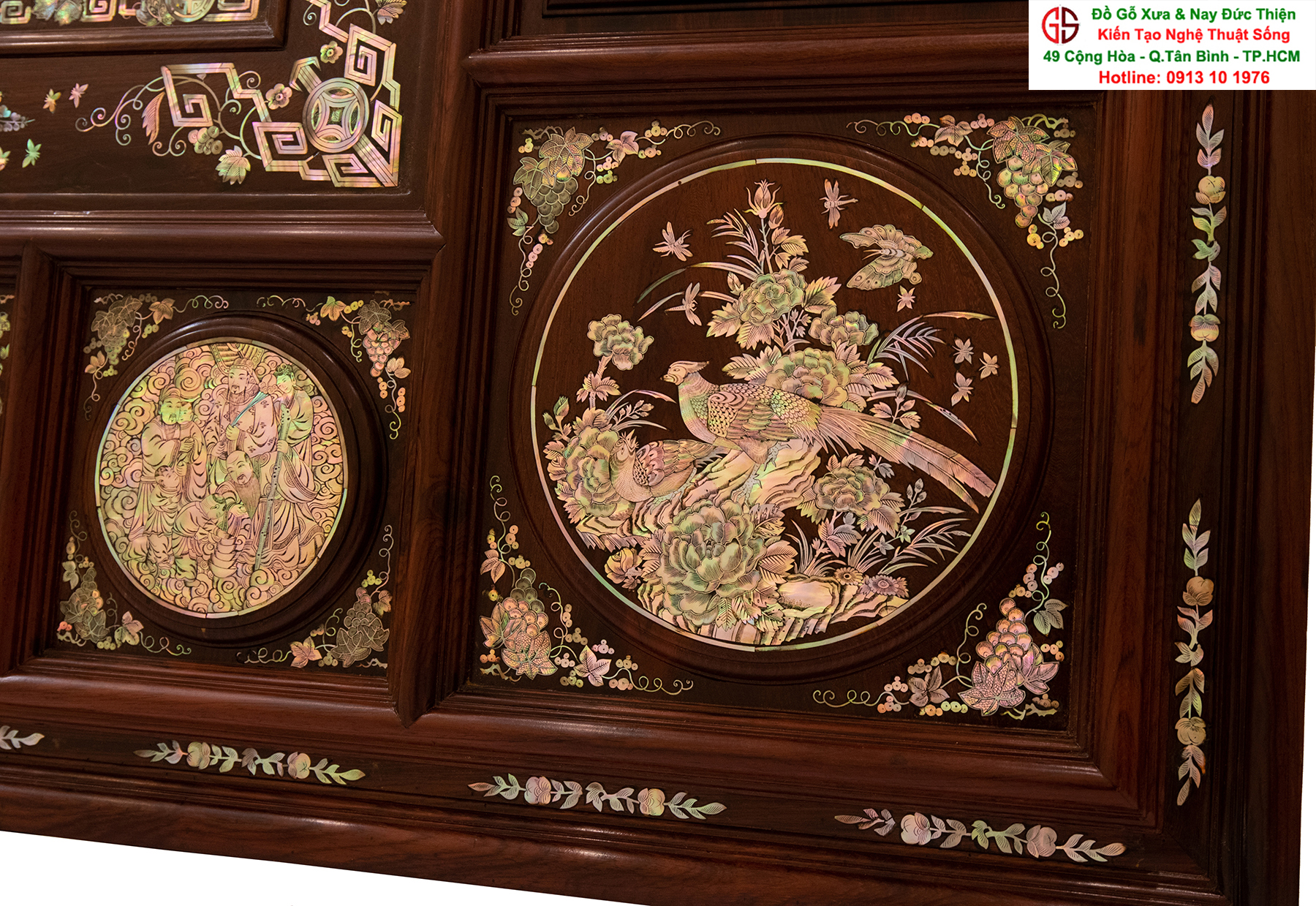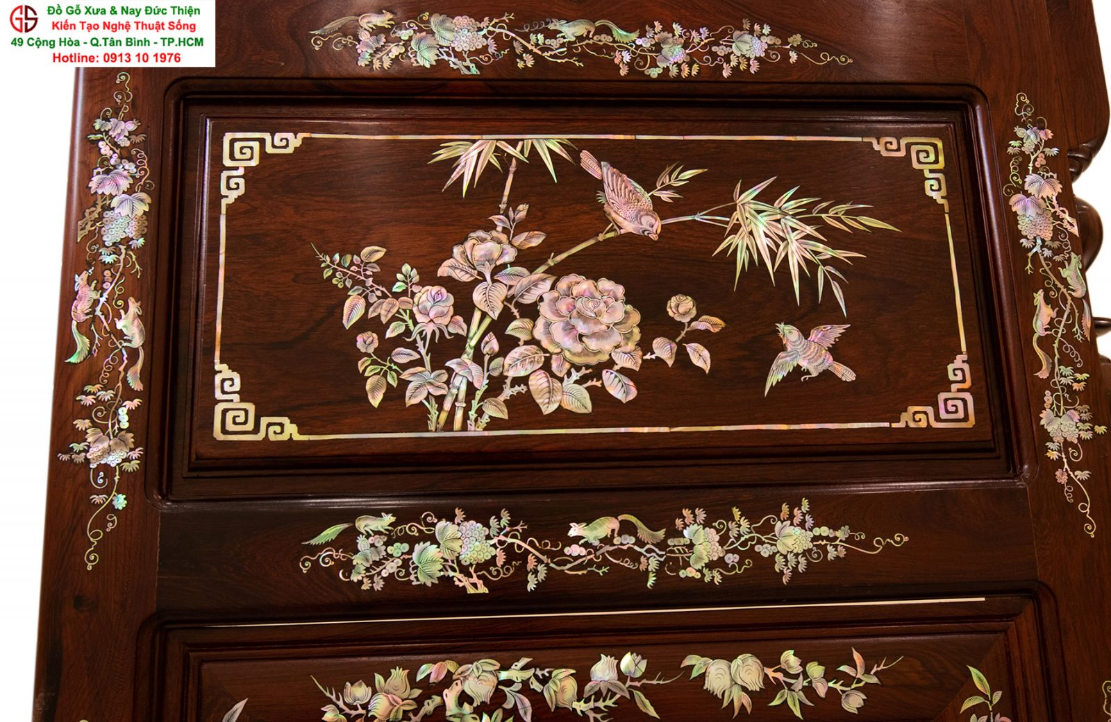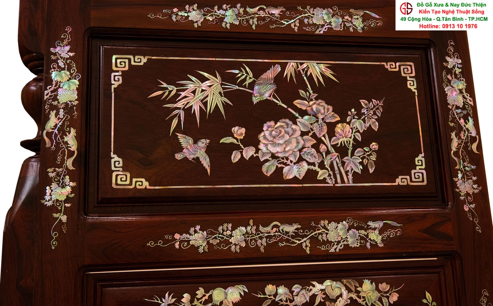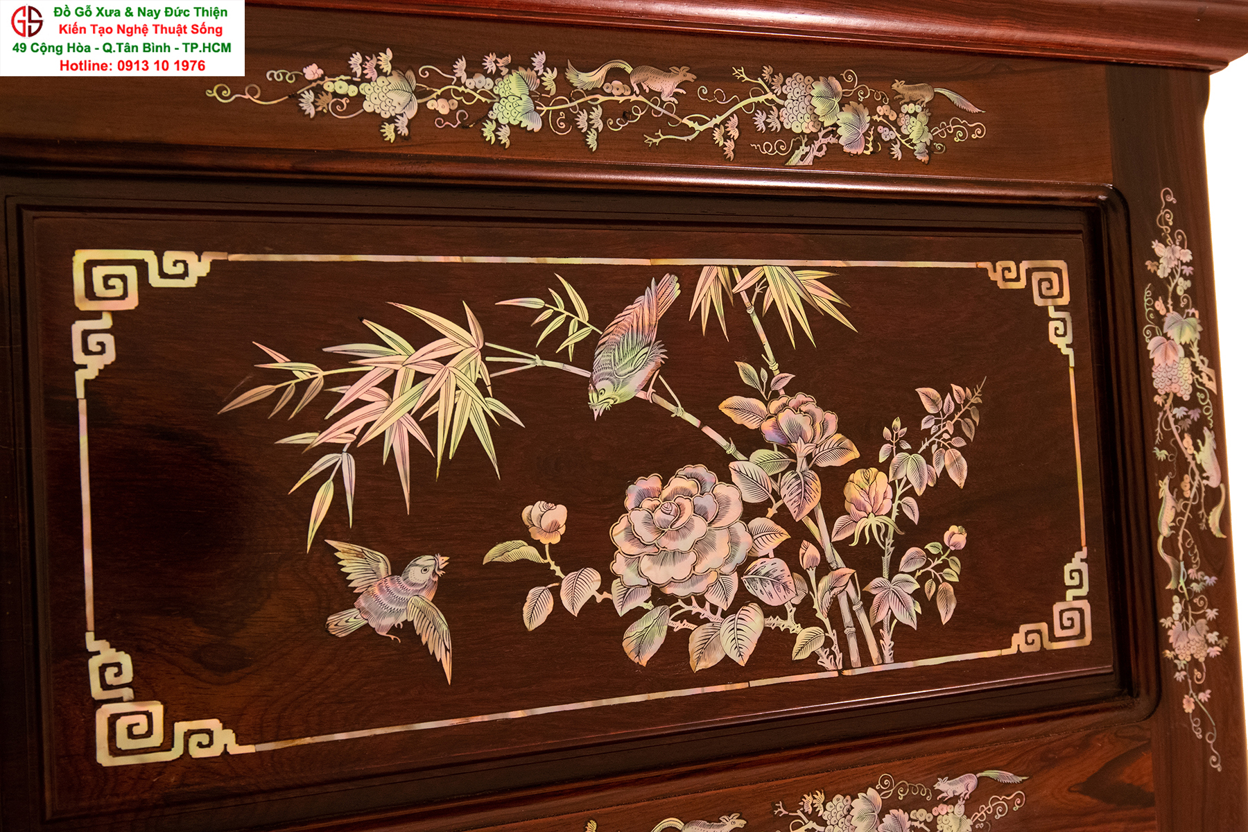 + Chất liệu: Gỗ Cẩm Lai + ốc Xà Cừ xịn