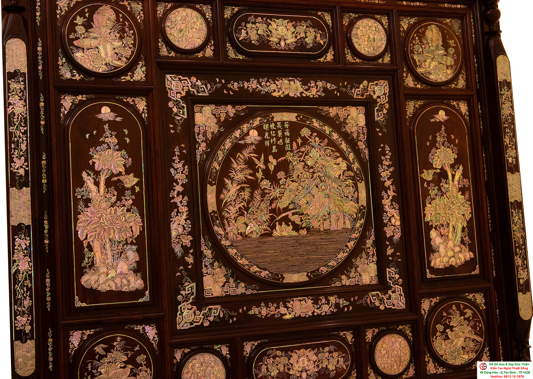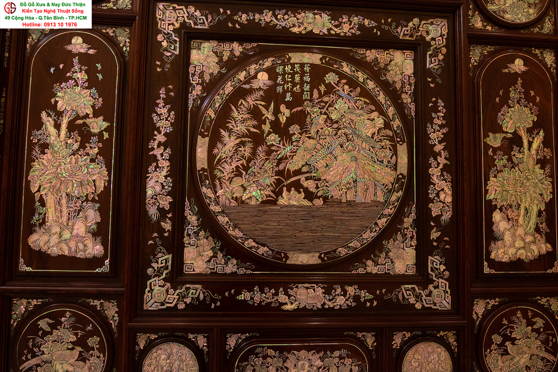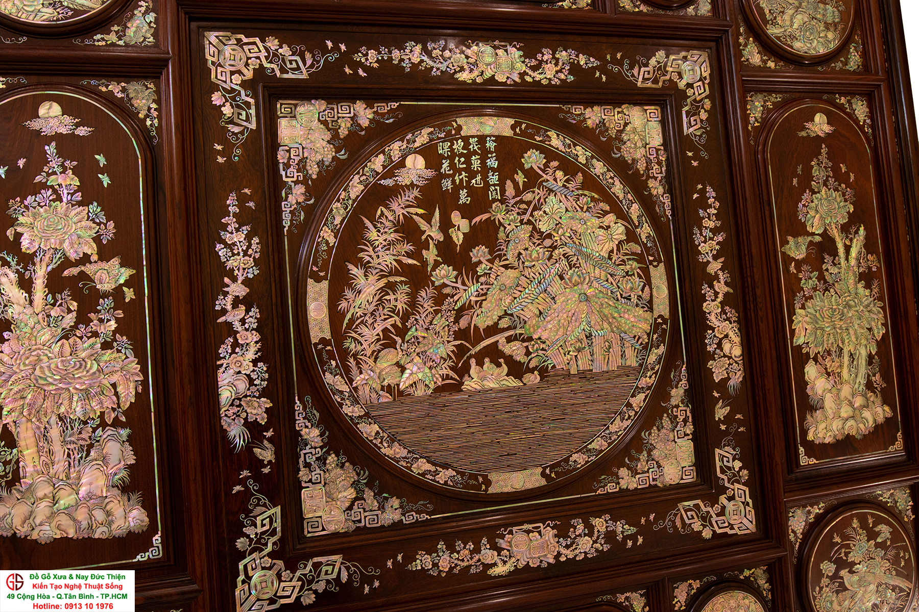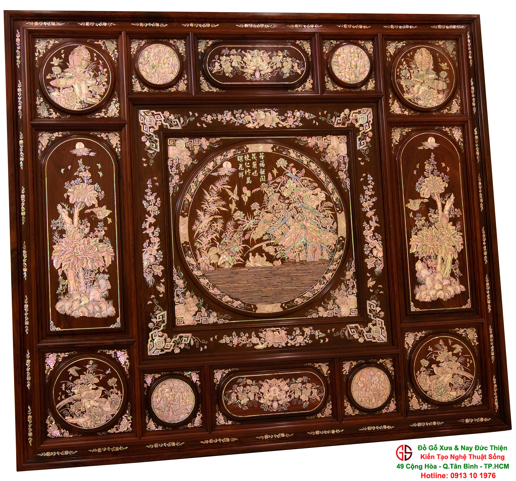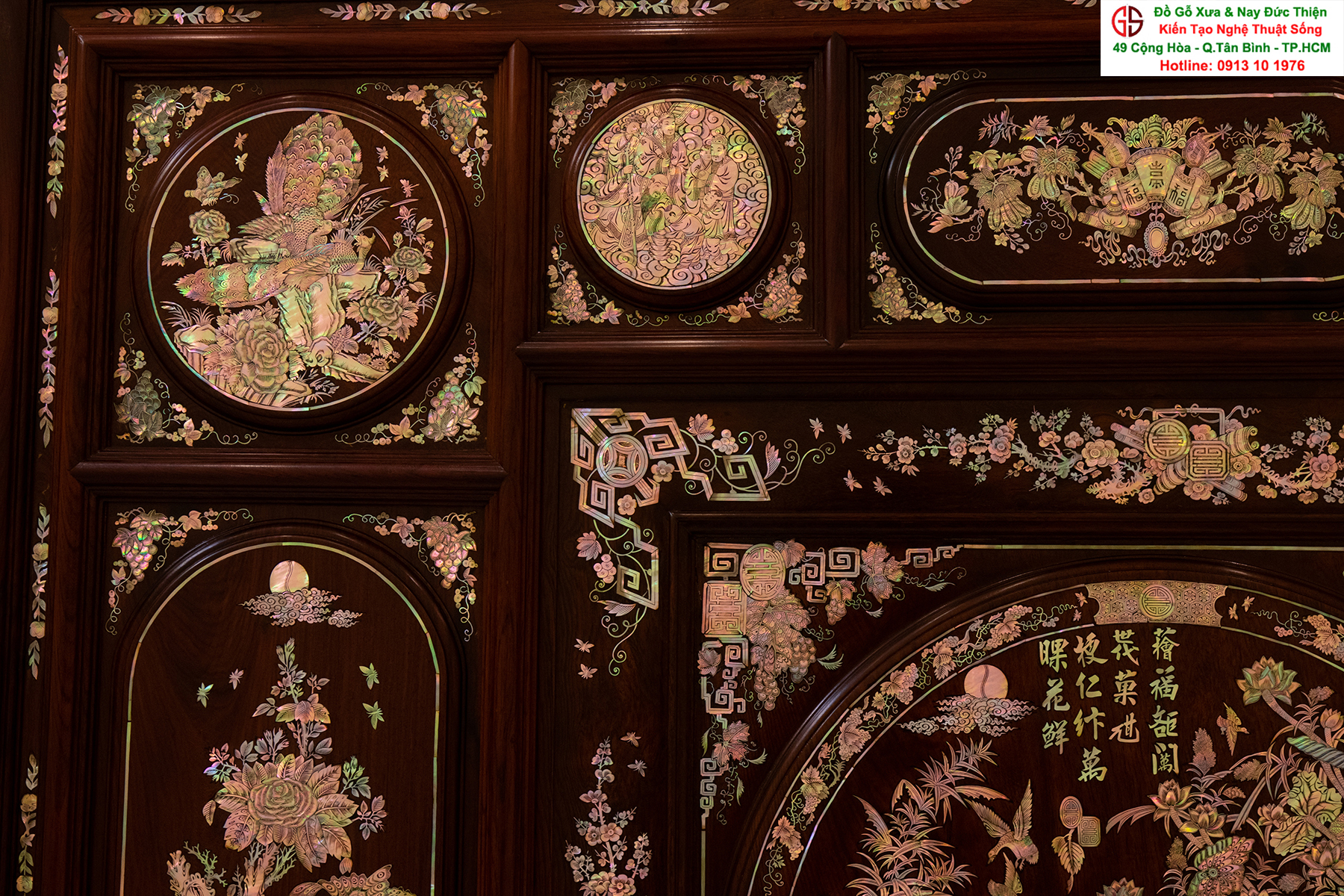 + Chất liệu: Gỗ Cẩm Lai + ốc Xà Cừ xịn