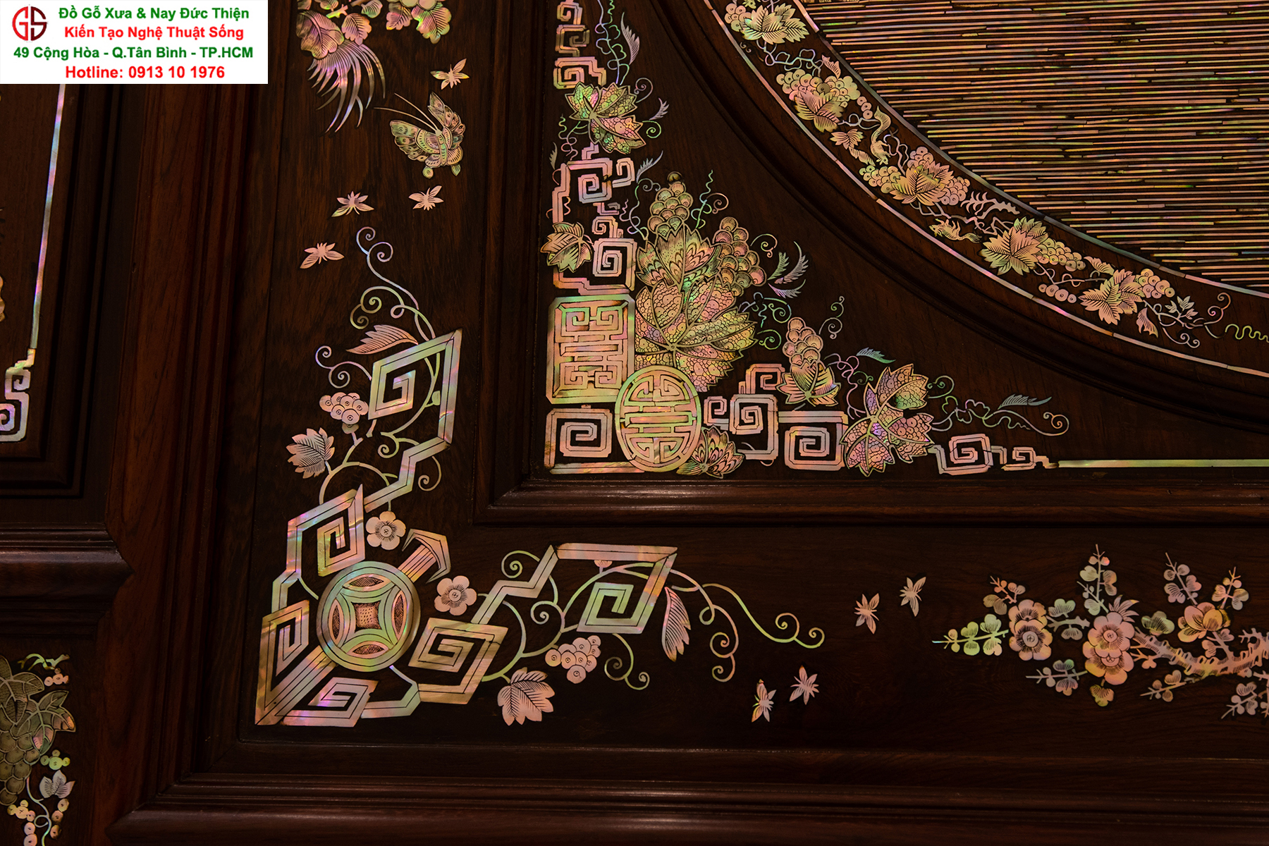 - Bàn ghế Louis, đôn trống gỗ trắc, bộ bàn ăn cẩn ốc, bàn ghế phương kỷ, bàn trung đường cẩn ốc xà cừ