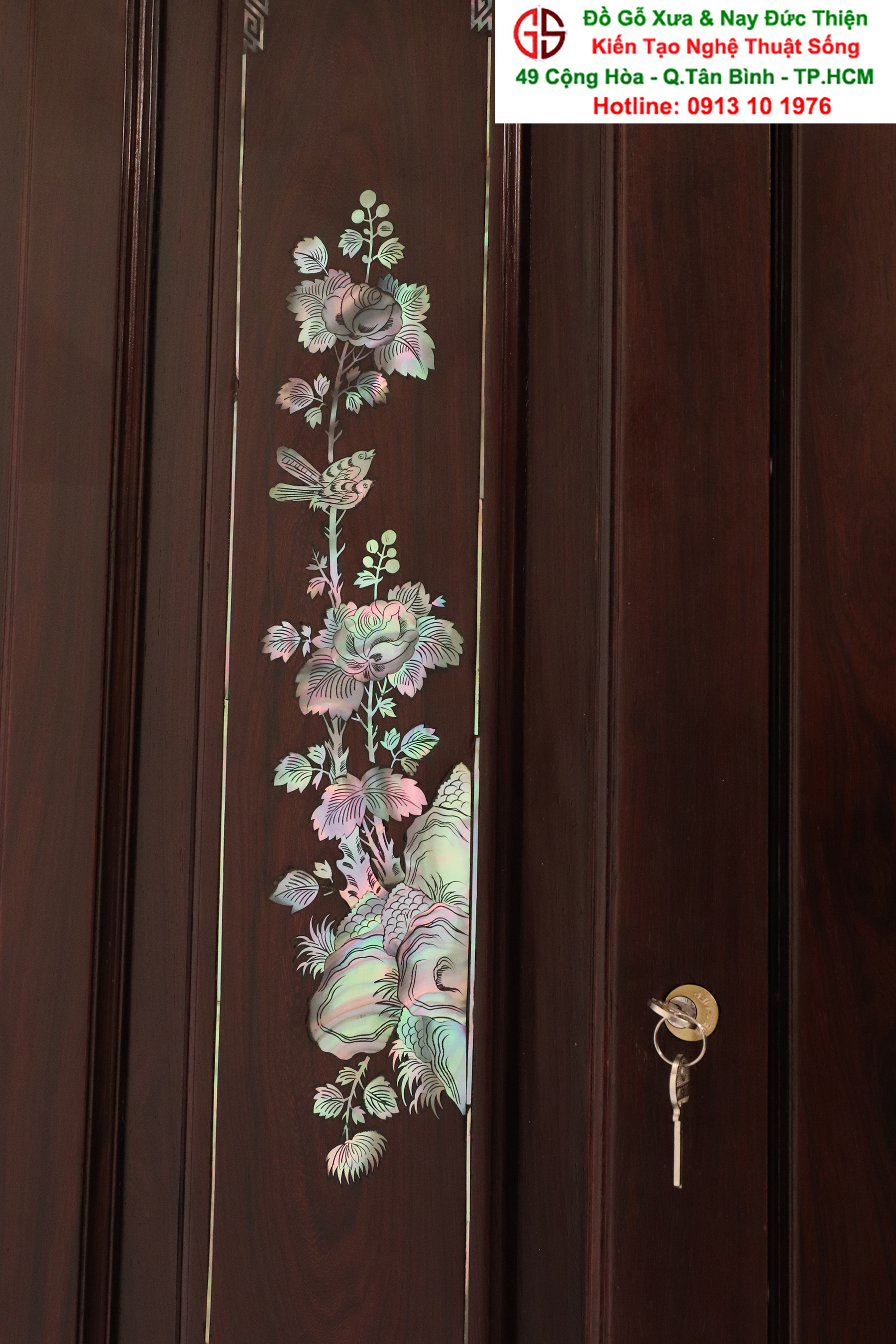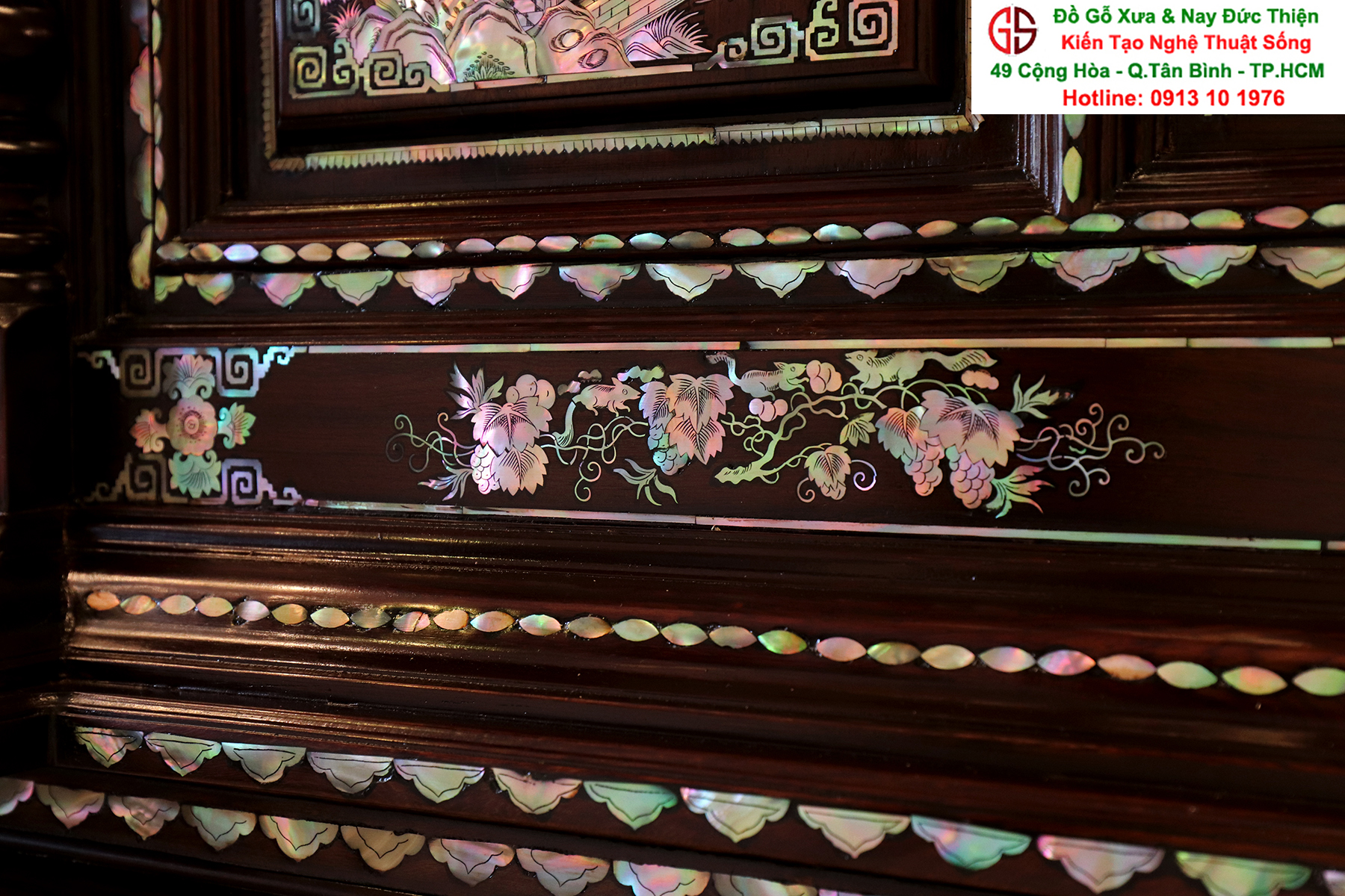 + Chất liệu: Gỗ Cẩm Lai Việt Nam + Khảm ốc Xà Cừ xịn
