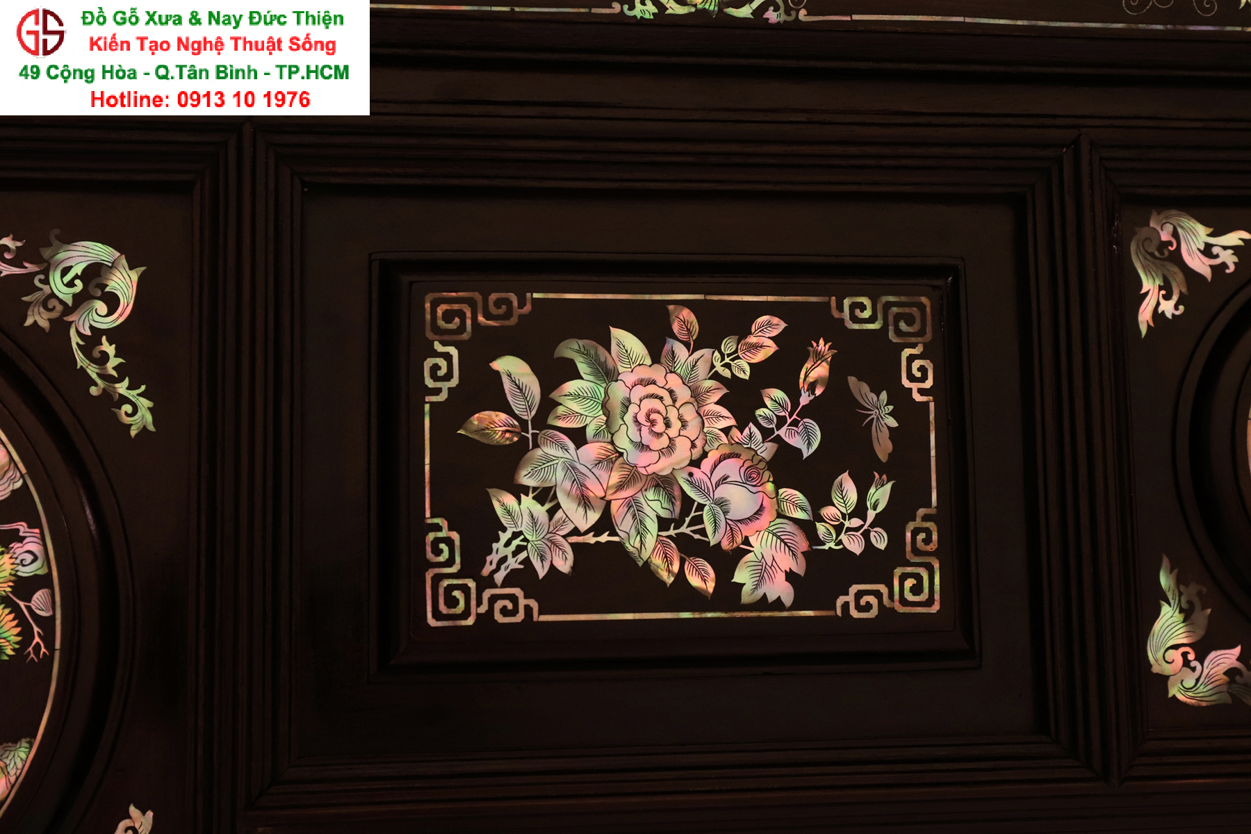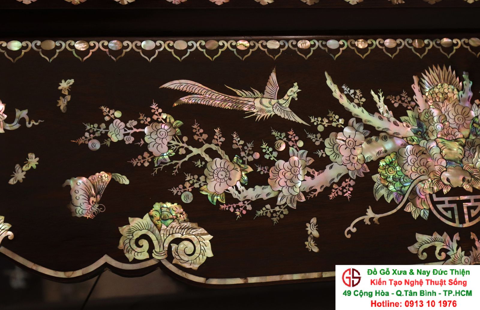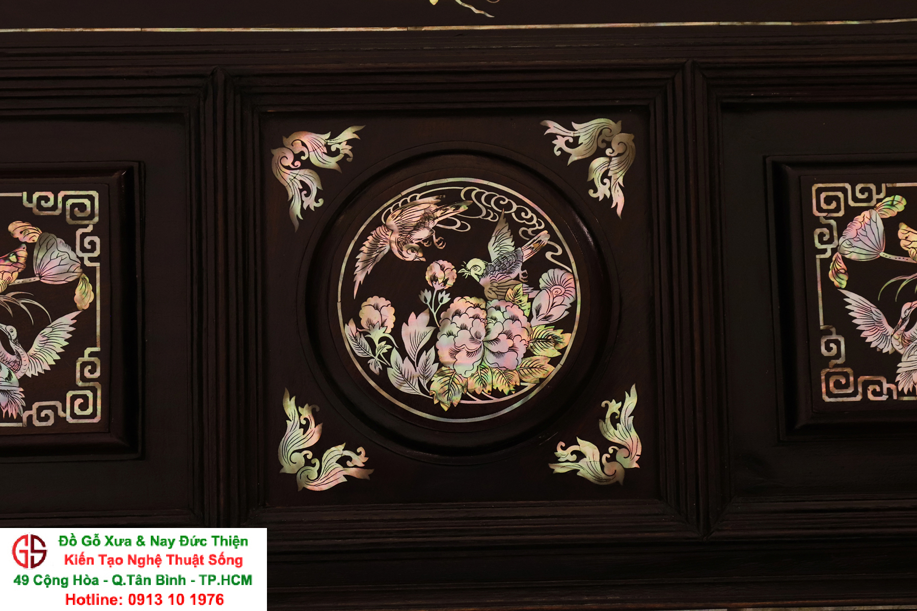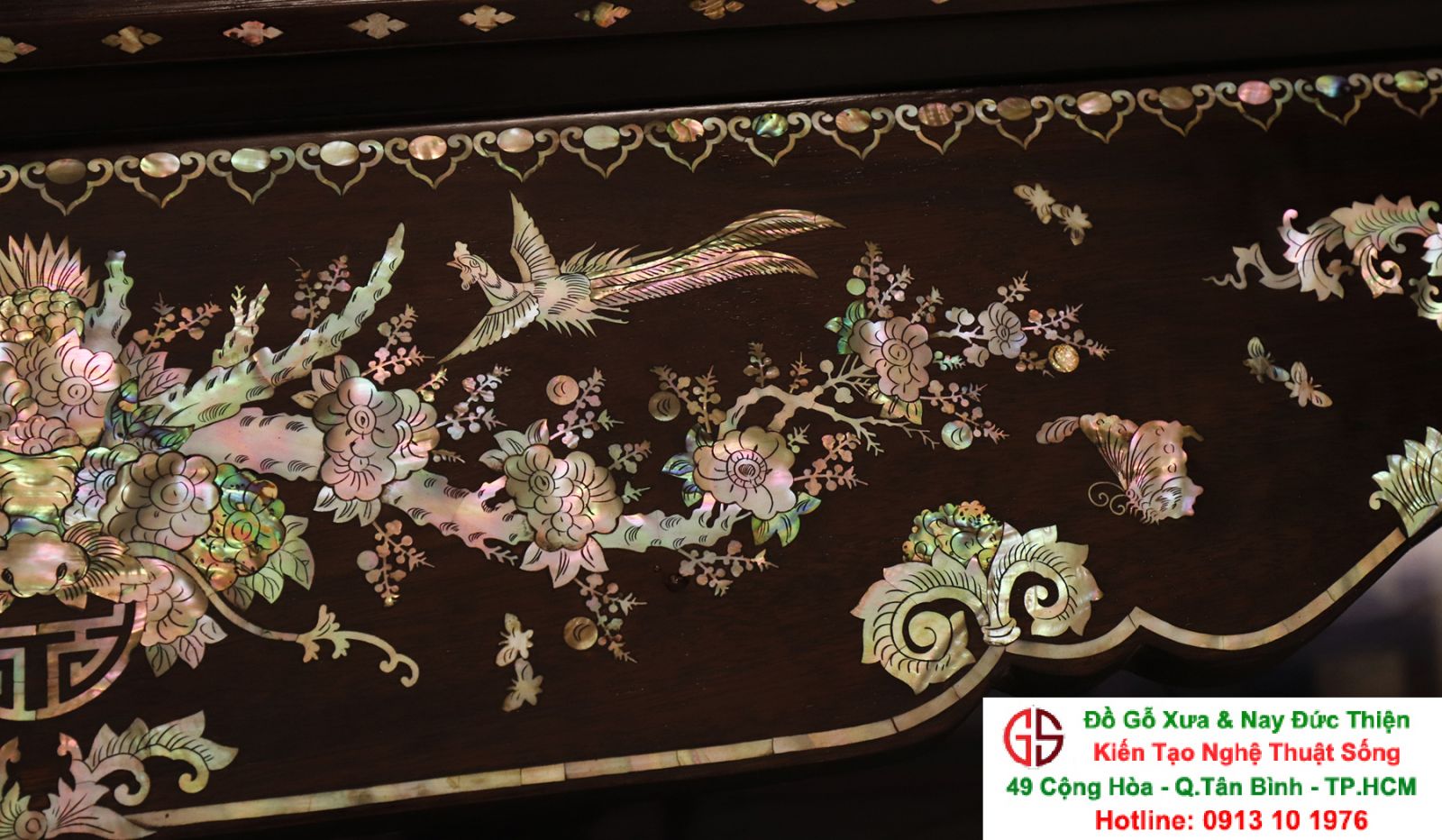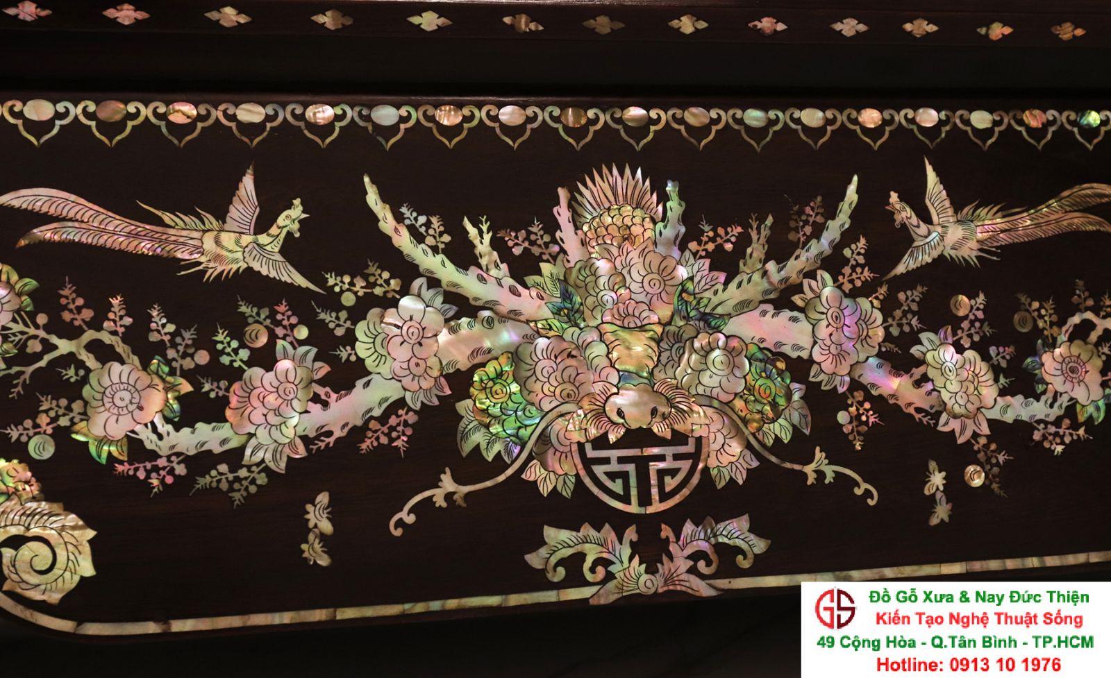 + Chất liệu: Gỗ Gụ + Khảm ốc Xà Cừ xịn