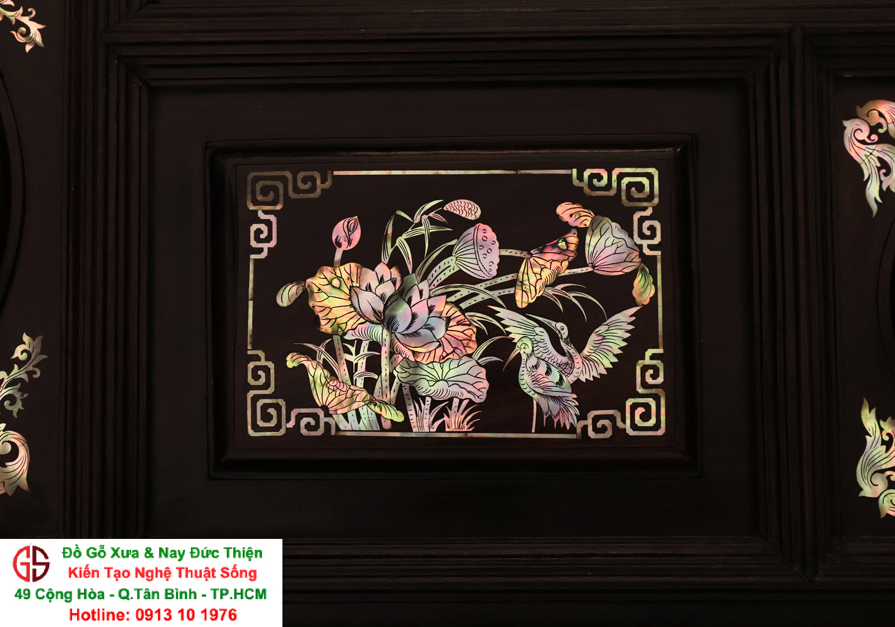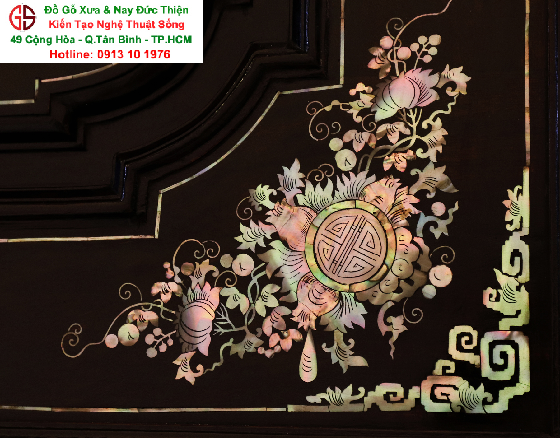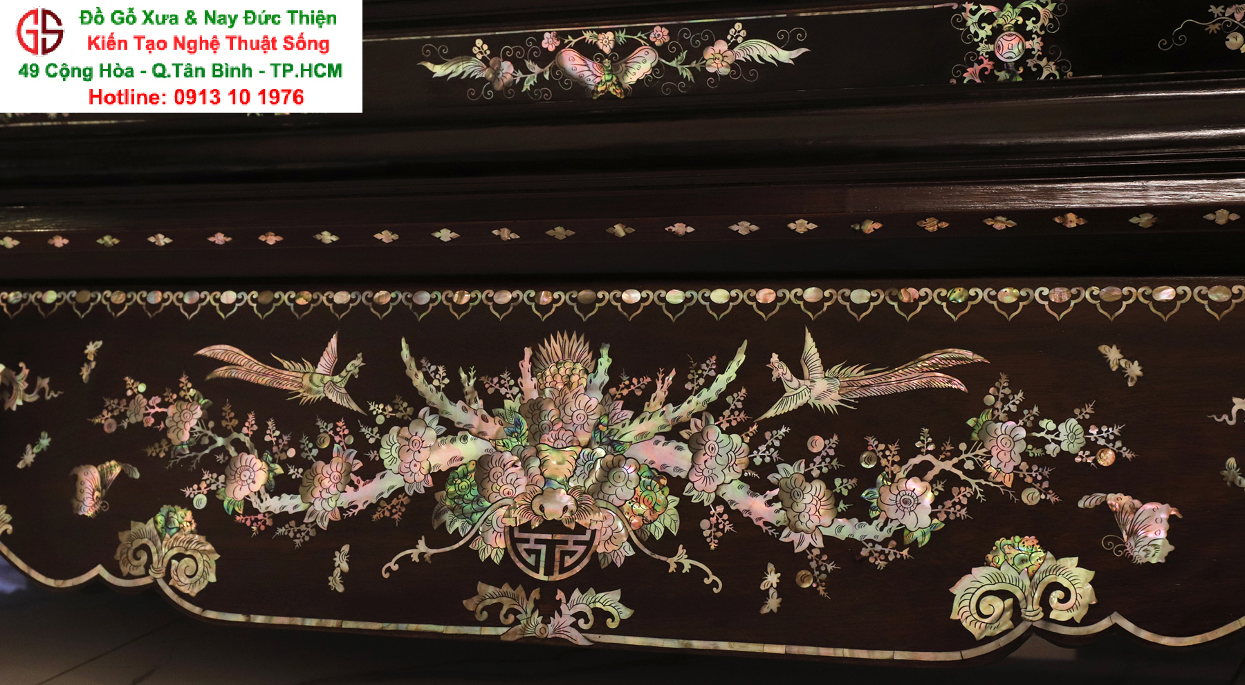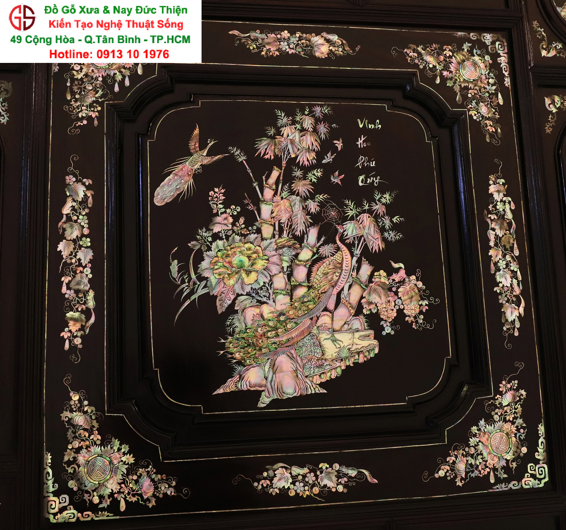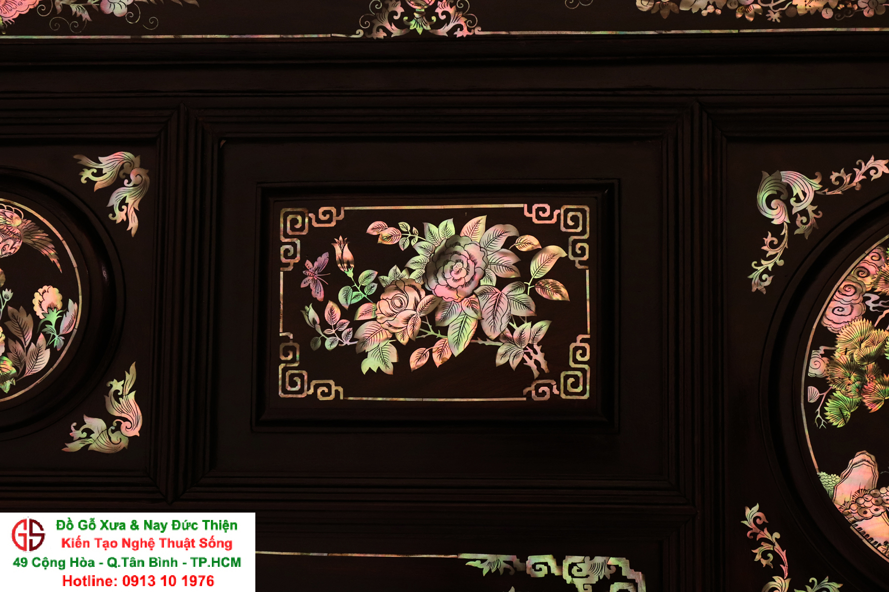+ Chất liệu: Gỗ Gụ + Khảm ốc Xà Cừ xịn