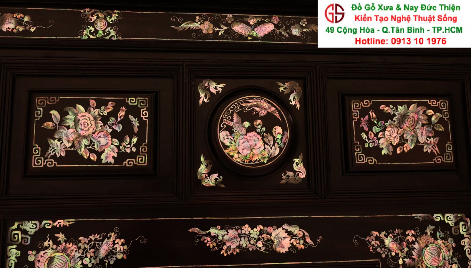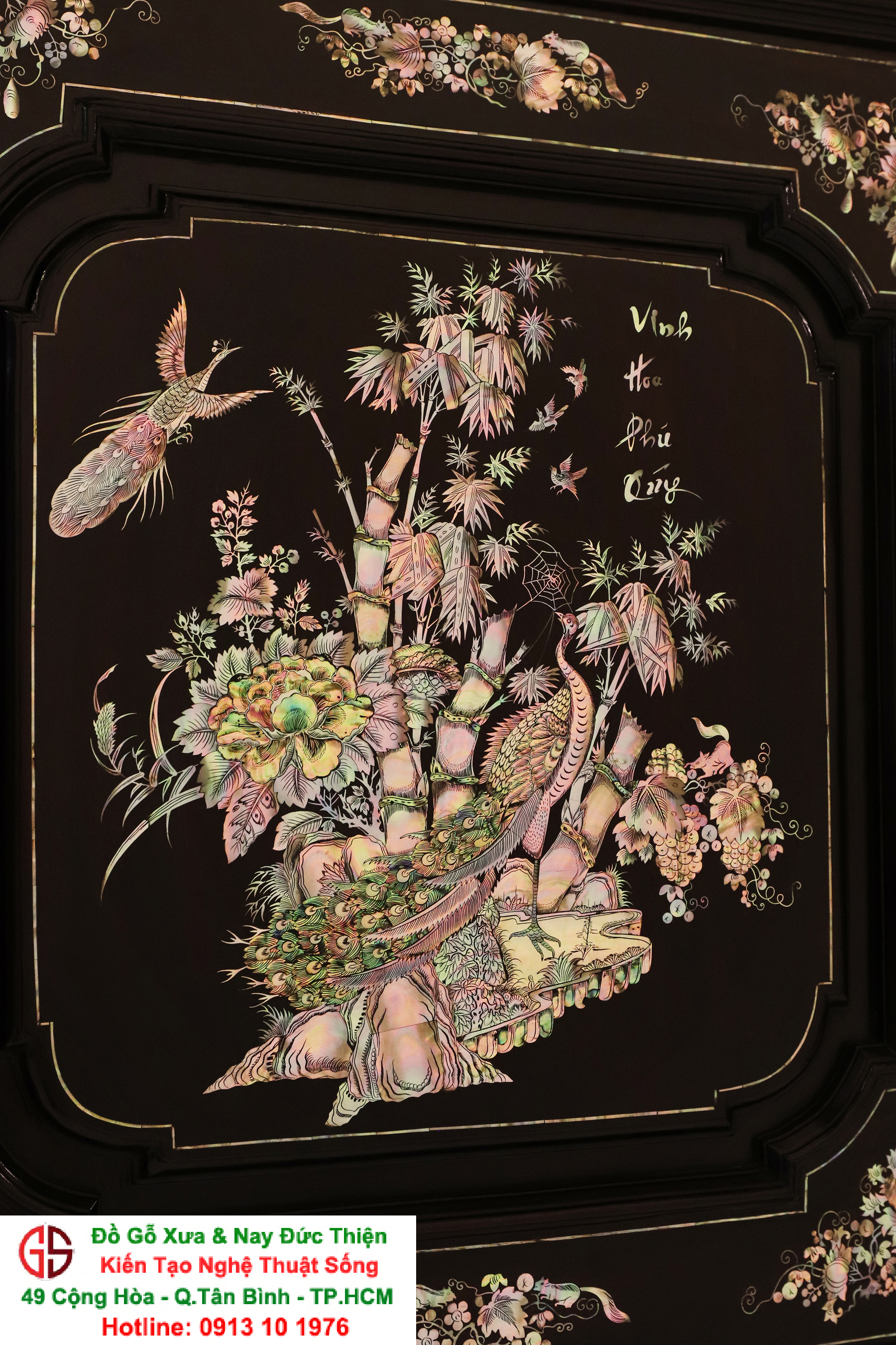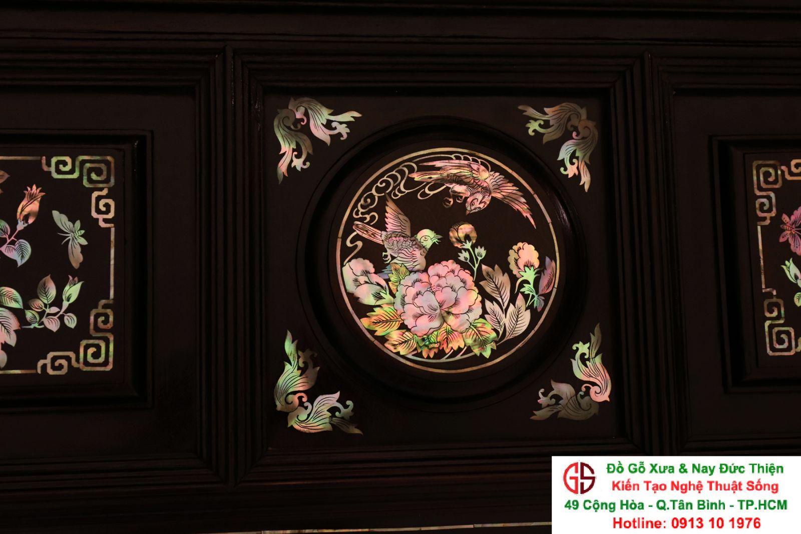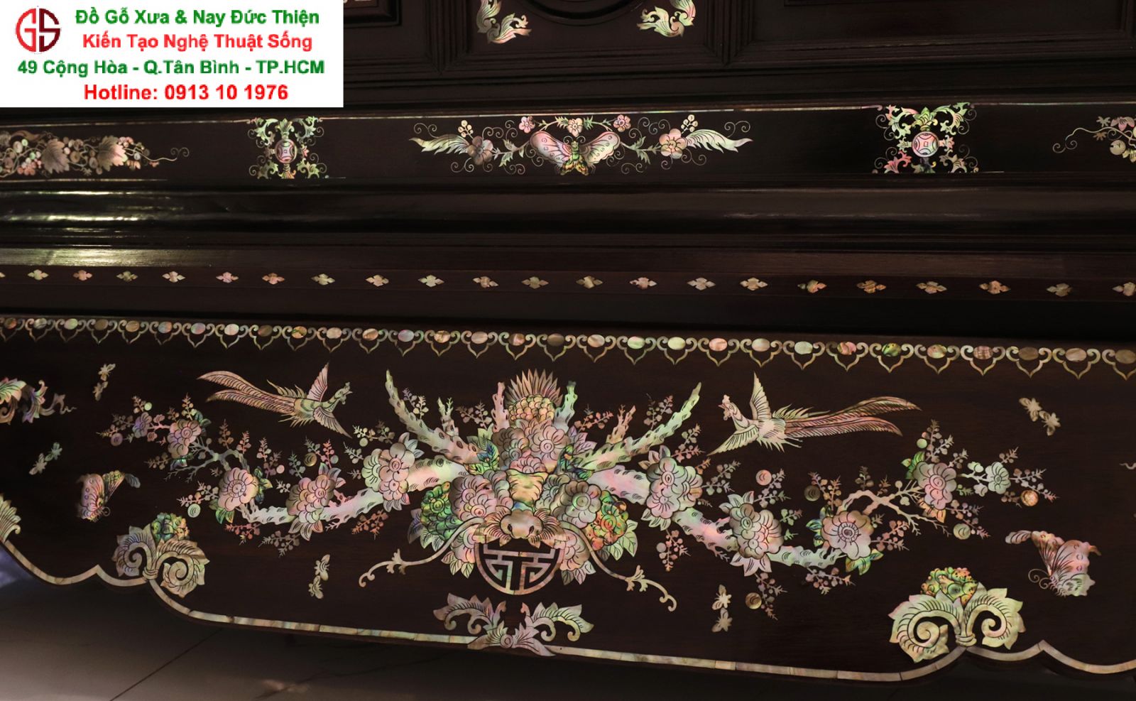 + Chất liệu: Gỗ Gụ + Khảm ốc Xà Cừ xịn
