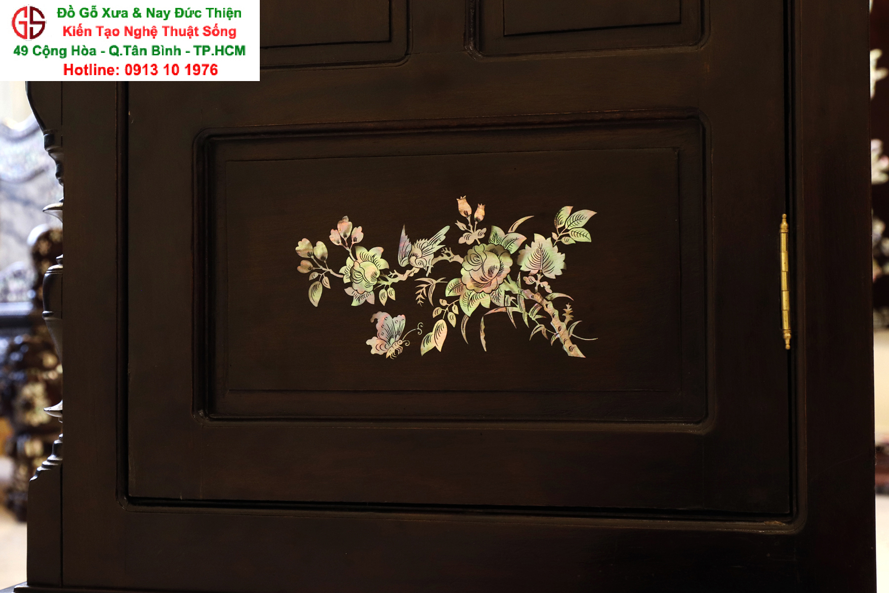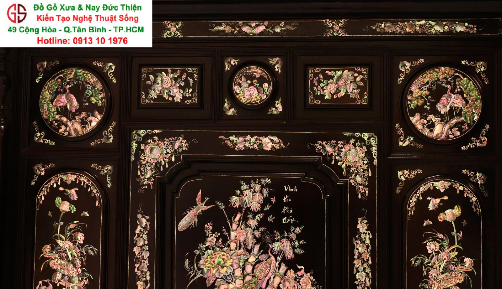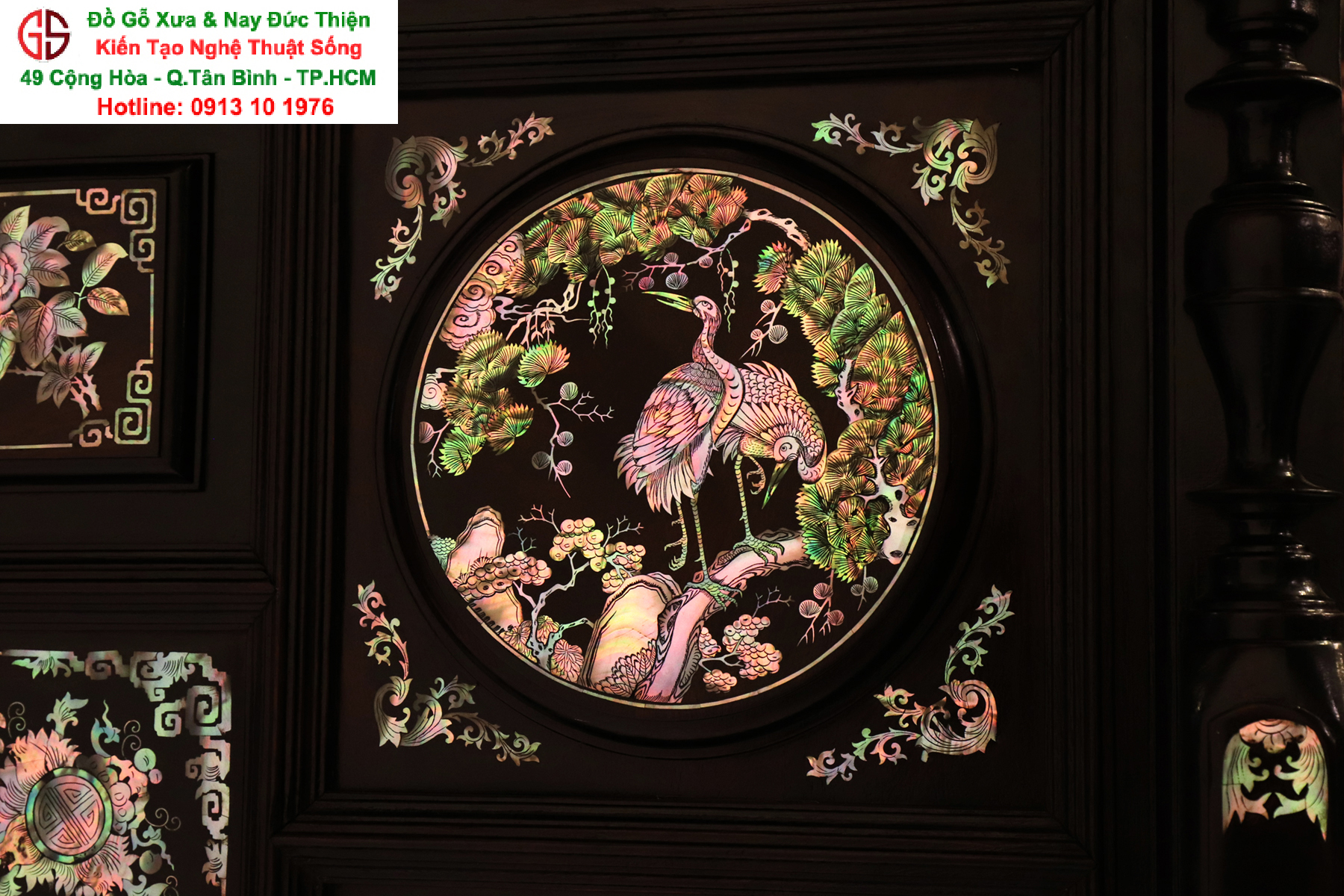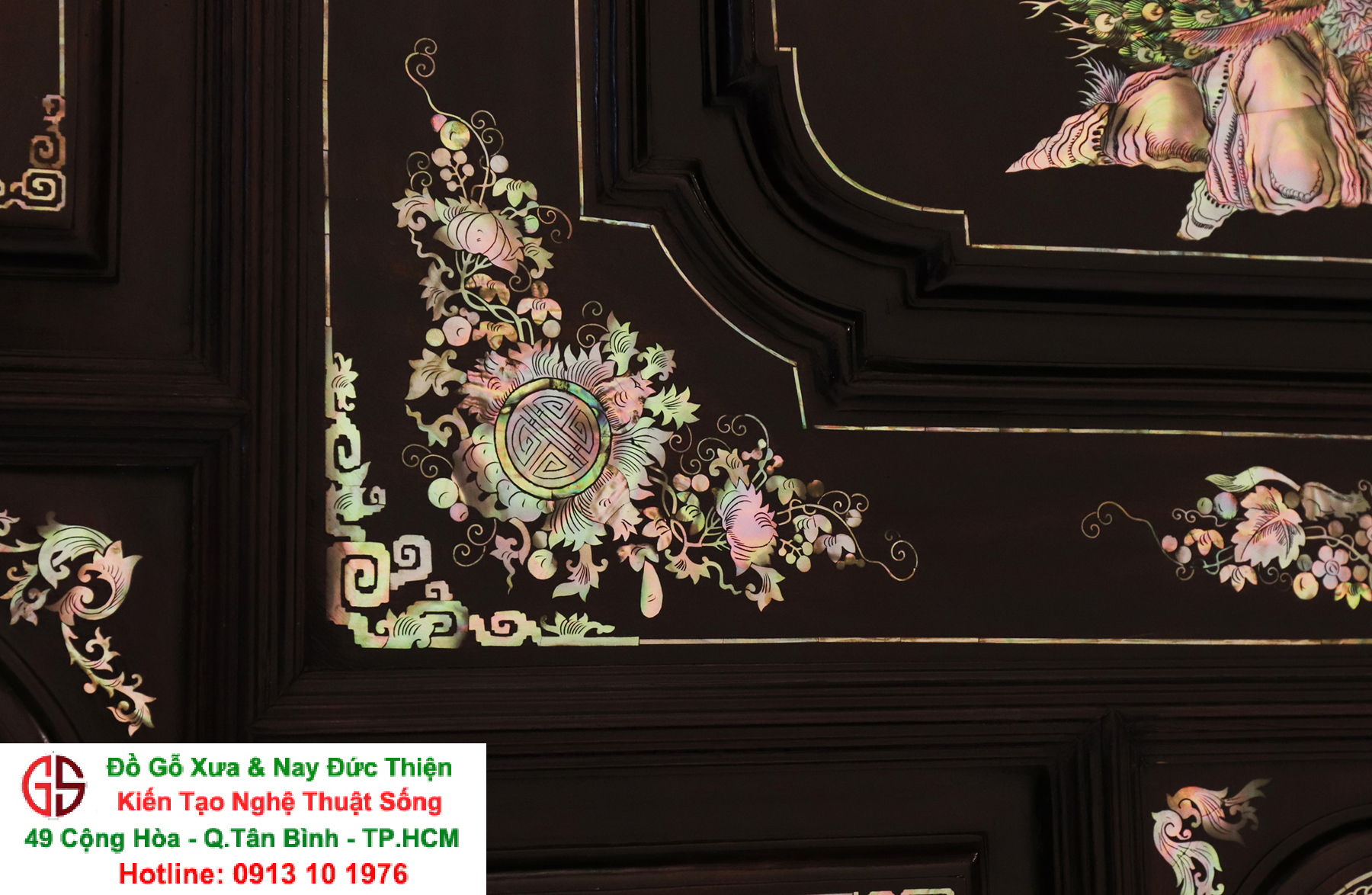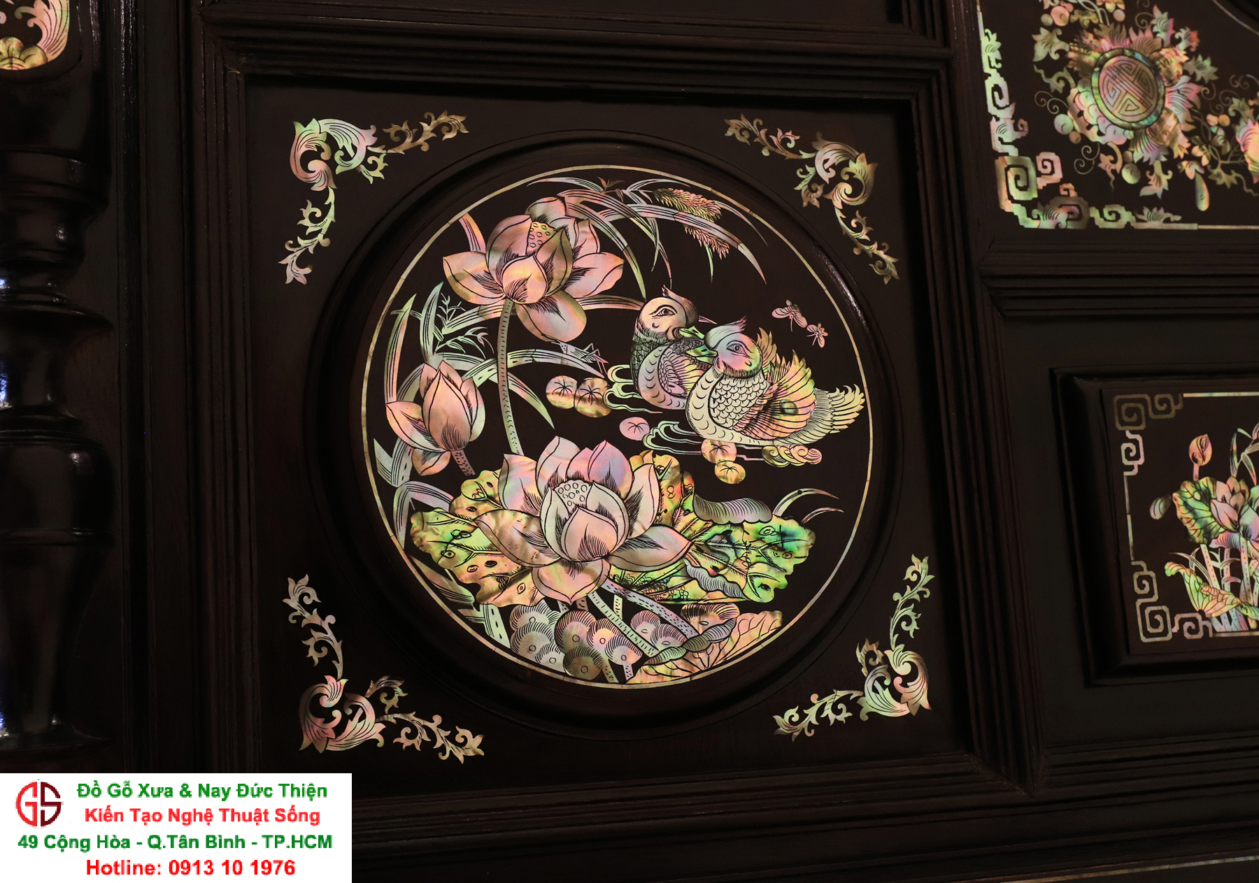 + Chất liệu: Gỗ Gụ + Khảm ốc Xà Cừ xịn