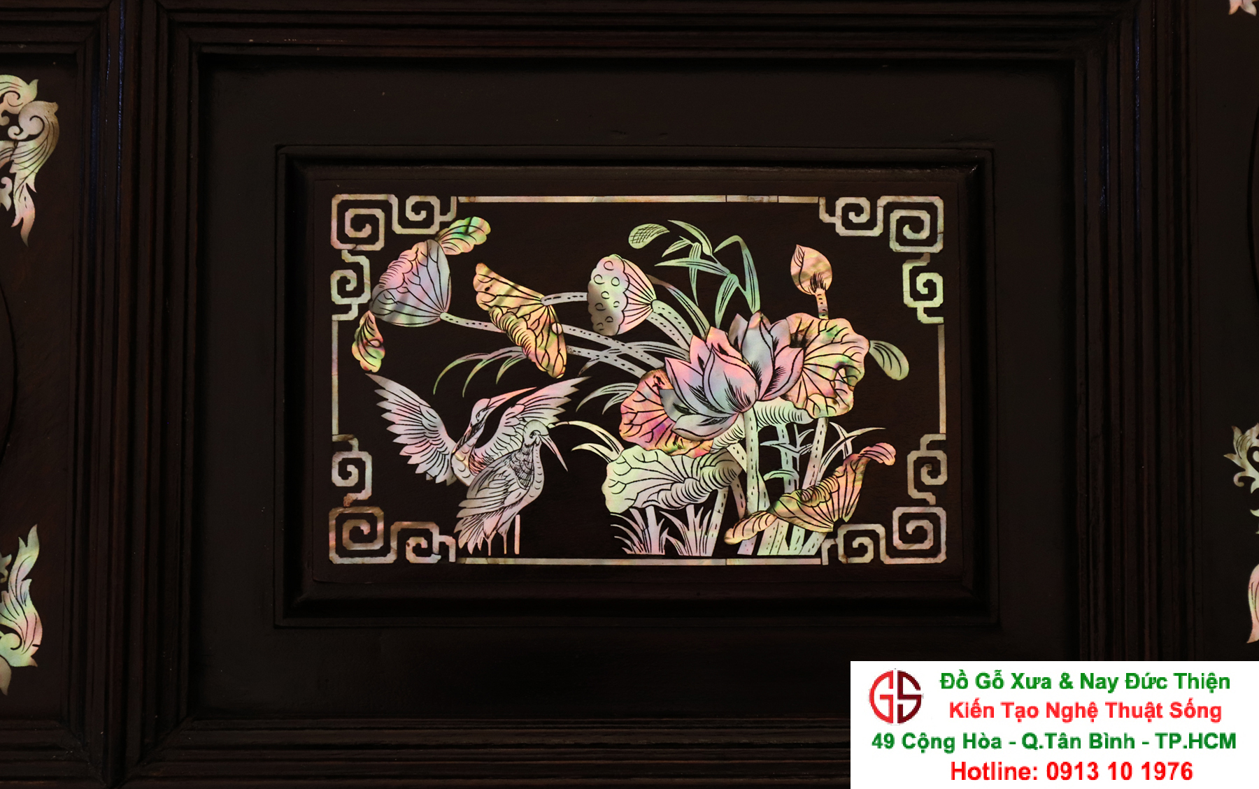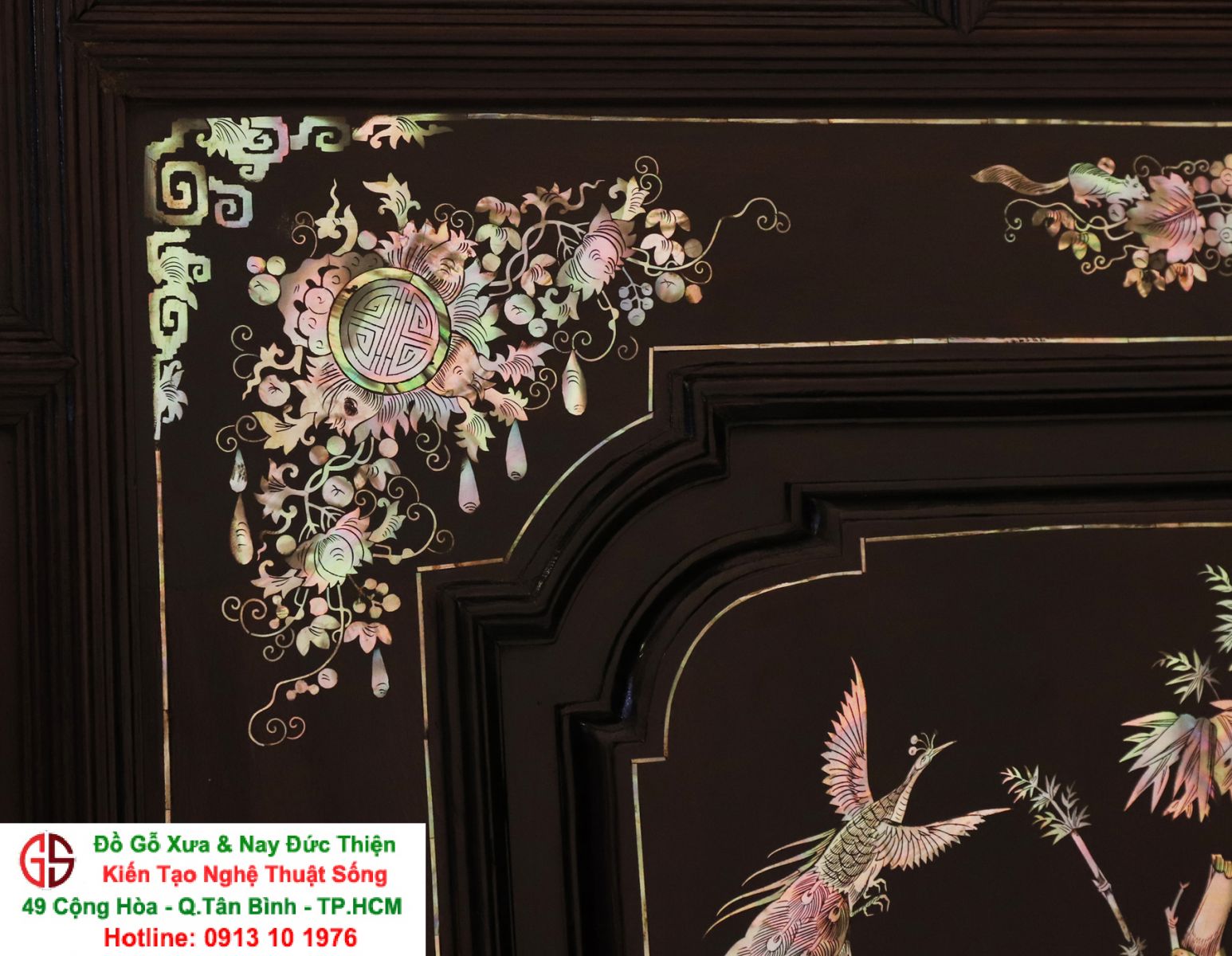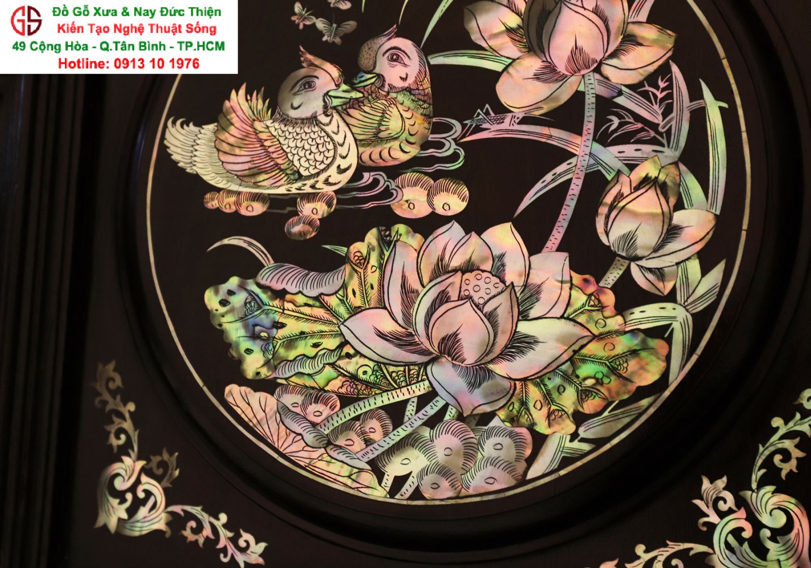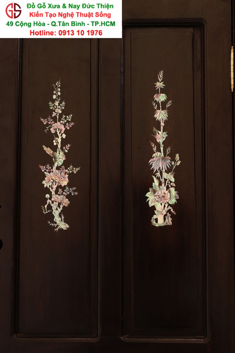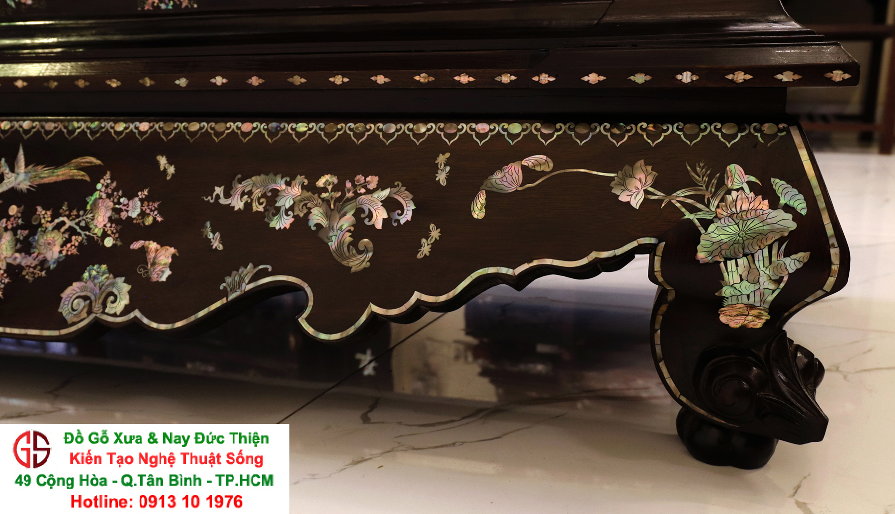 + Chất liệu: Gỗ Gụ + Khảm ốc Xà Cừ xịn