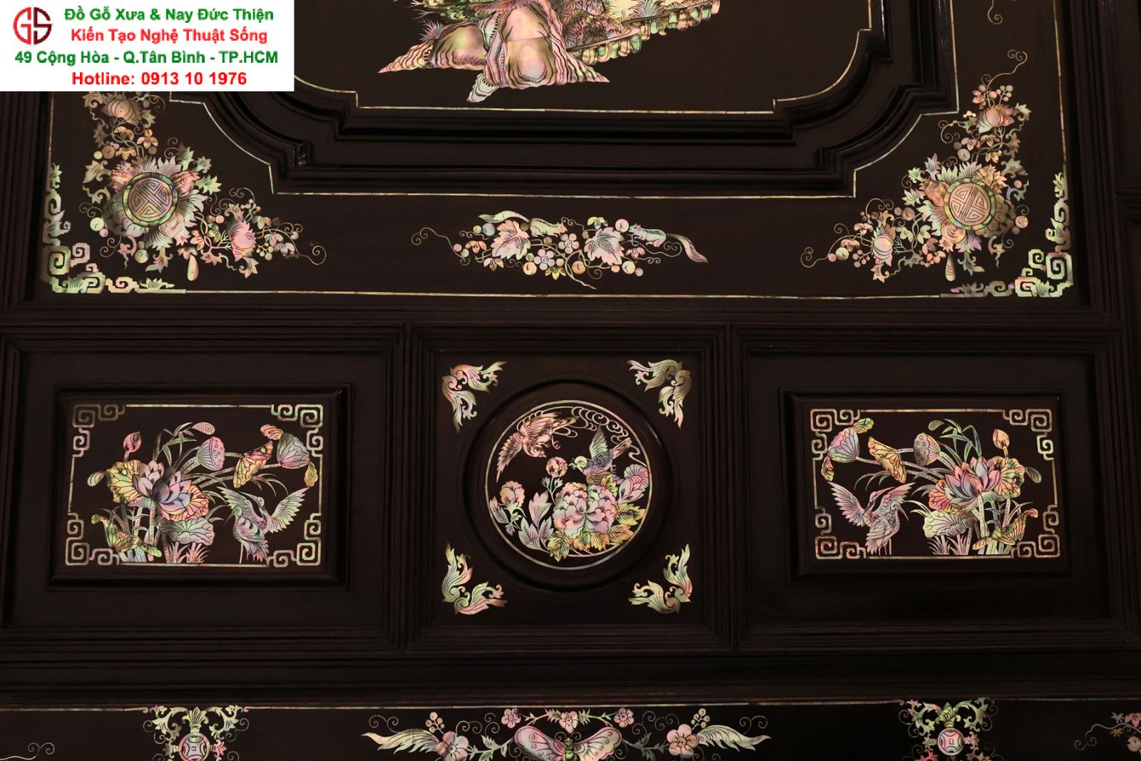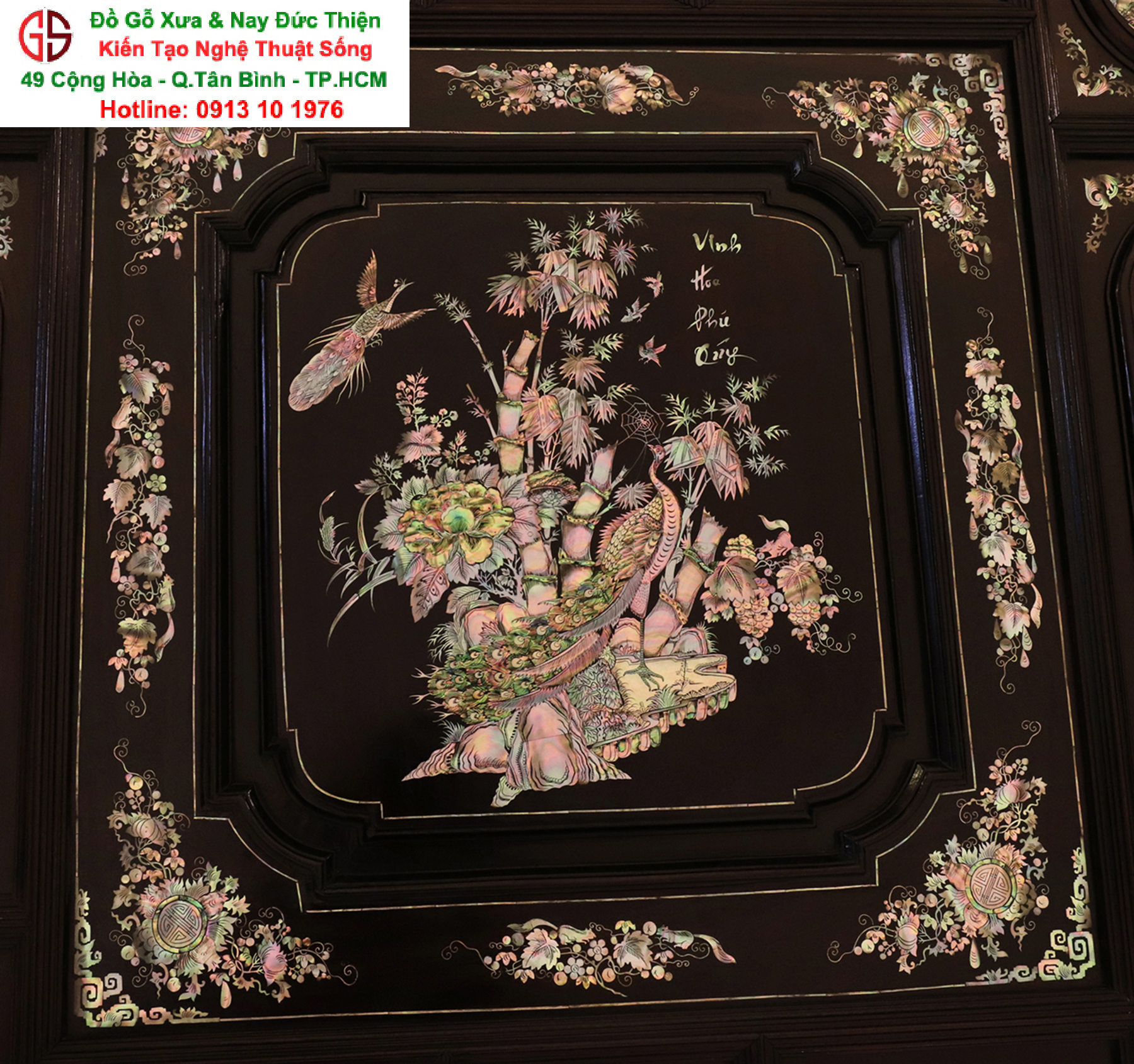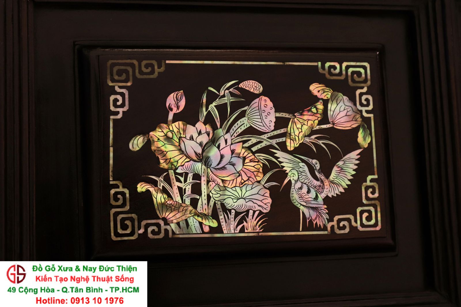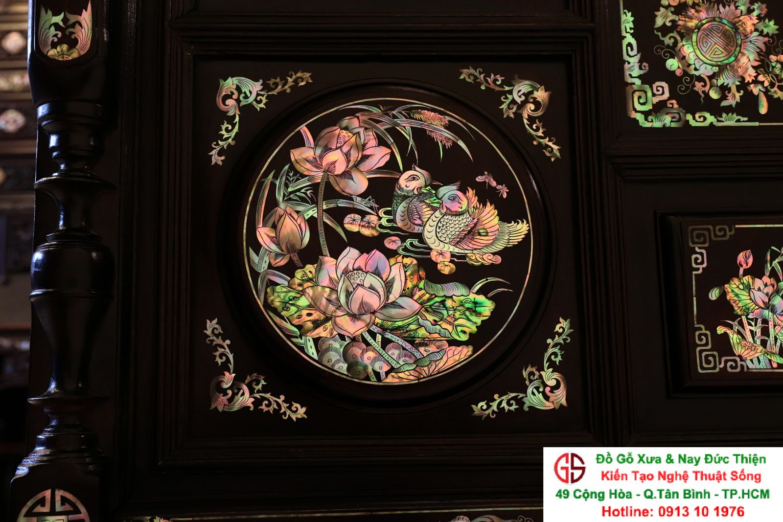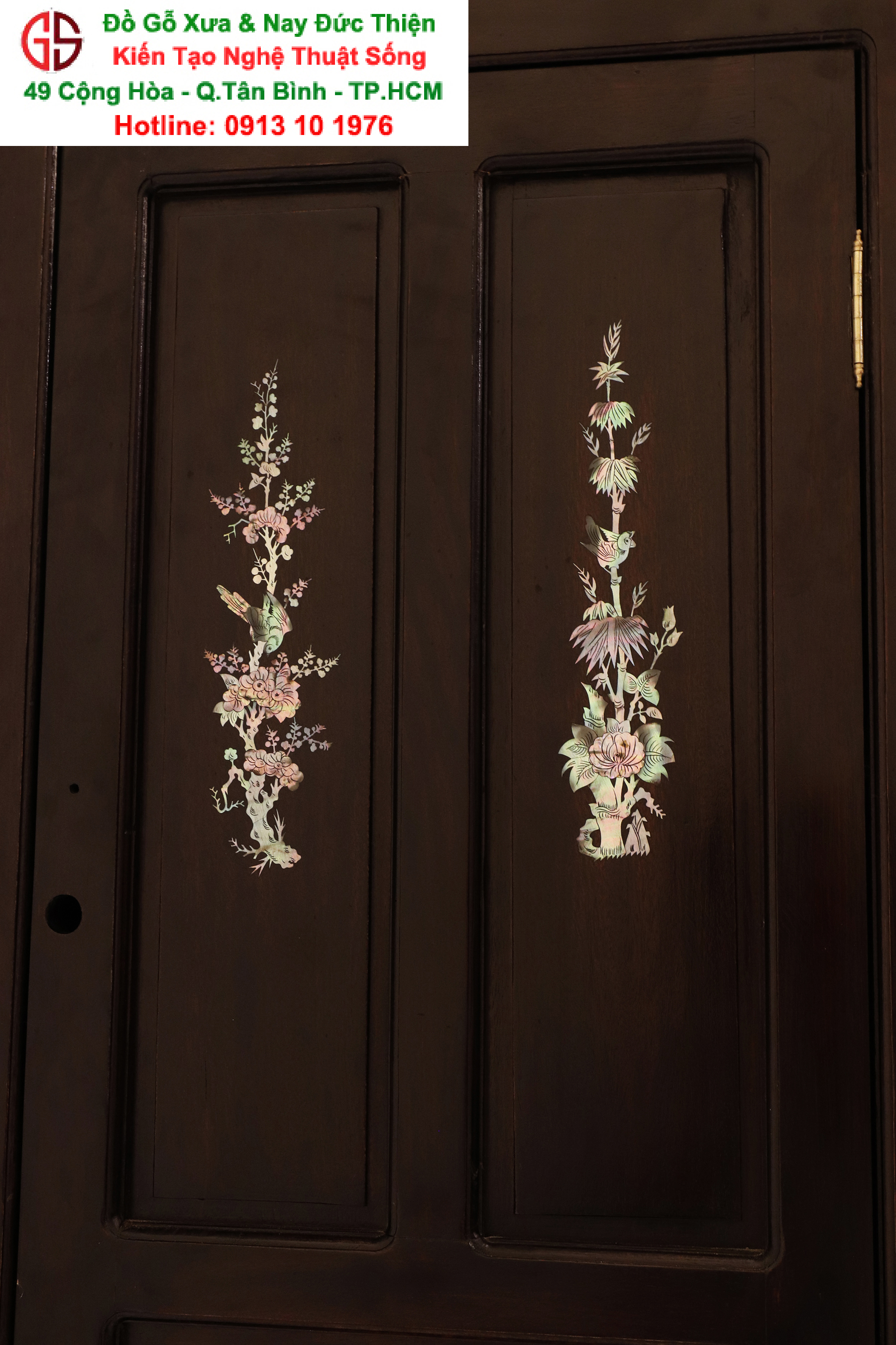 + Chất liệu: Gỗ Gụ + Khảm ốc Xà Cừ xịn