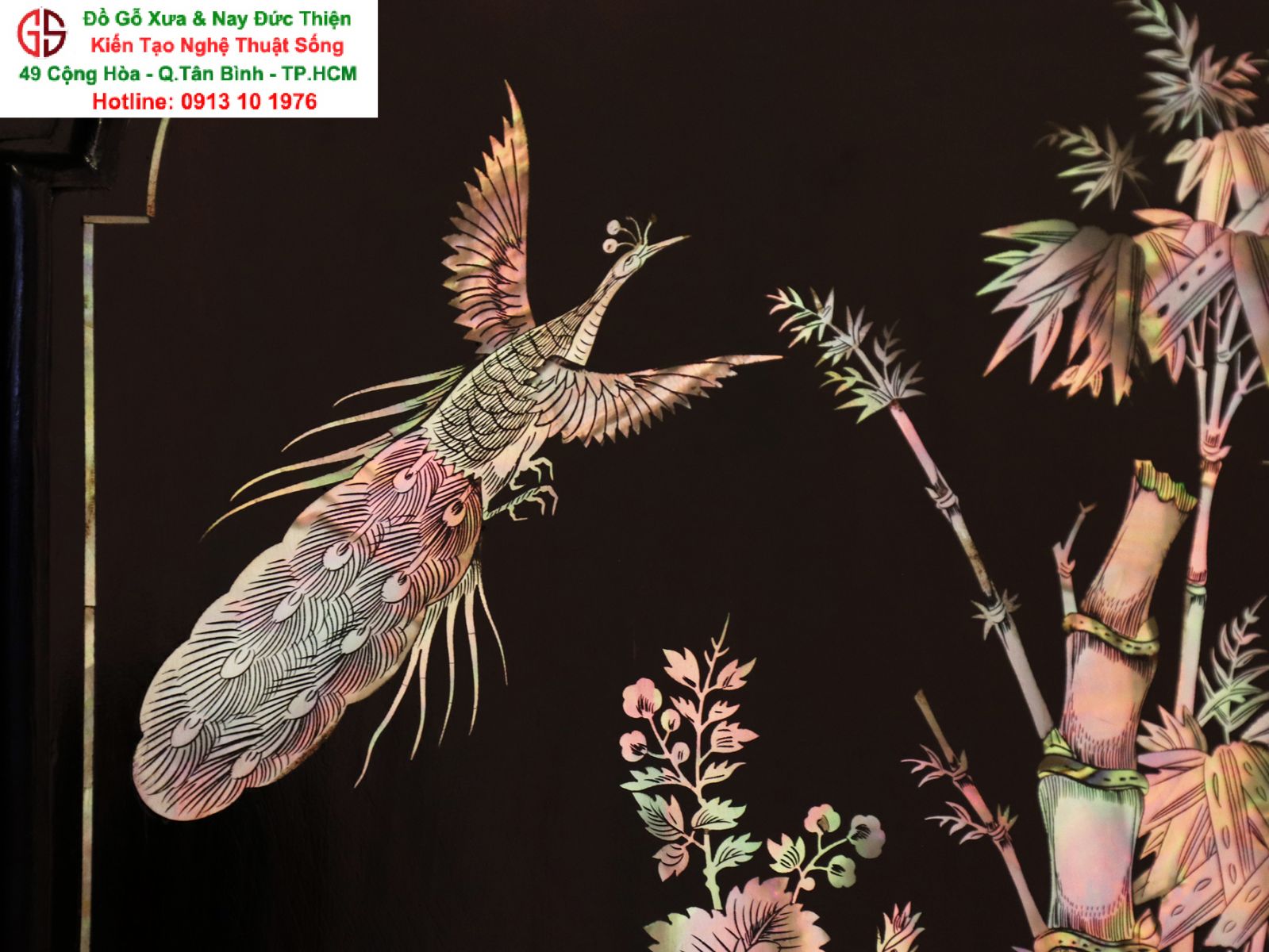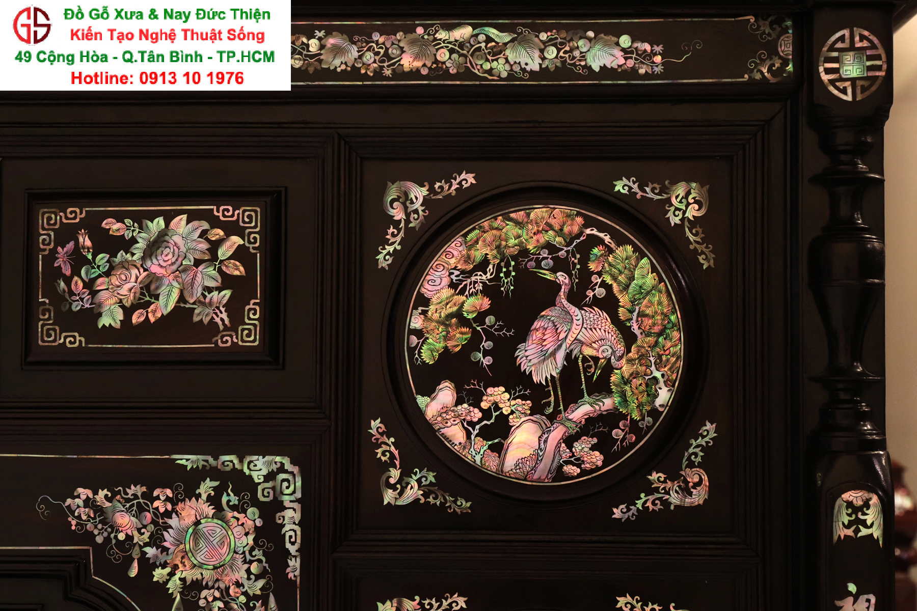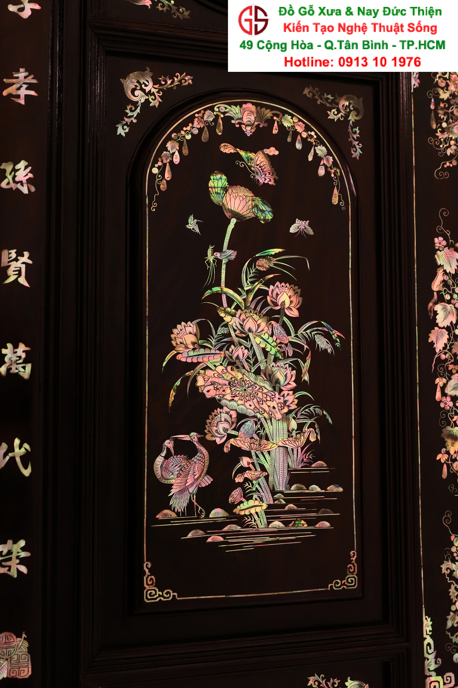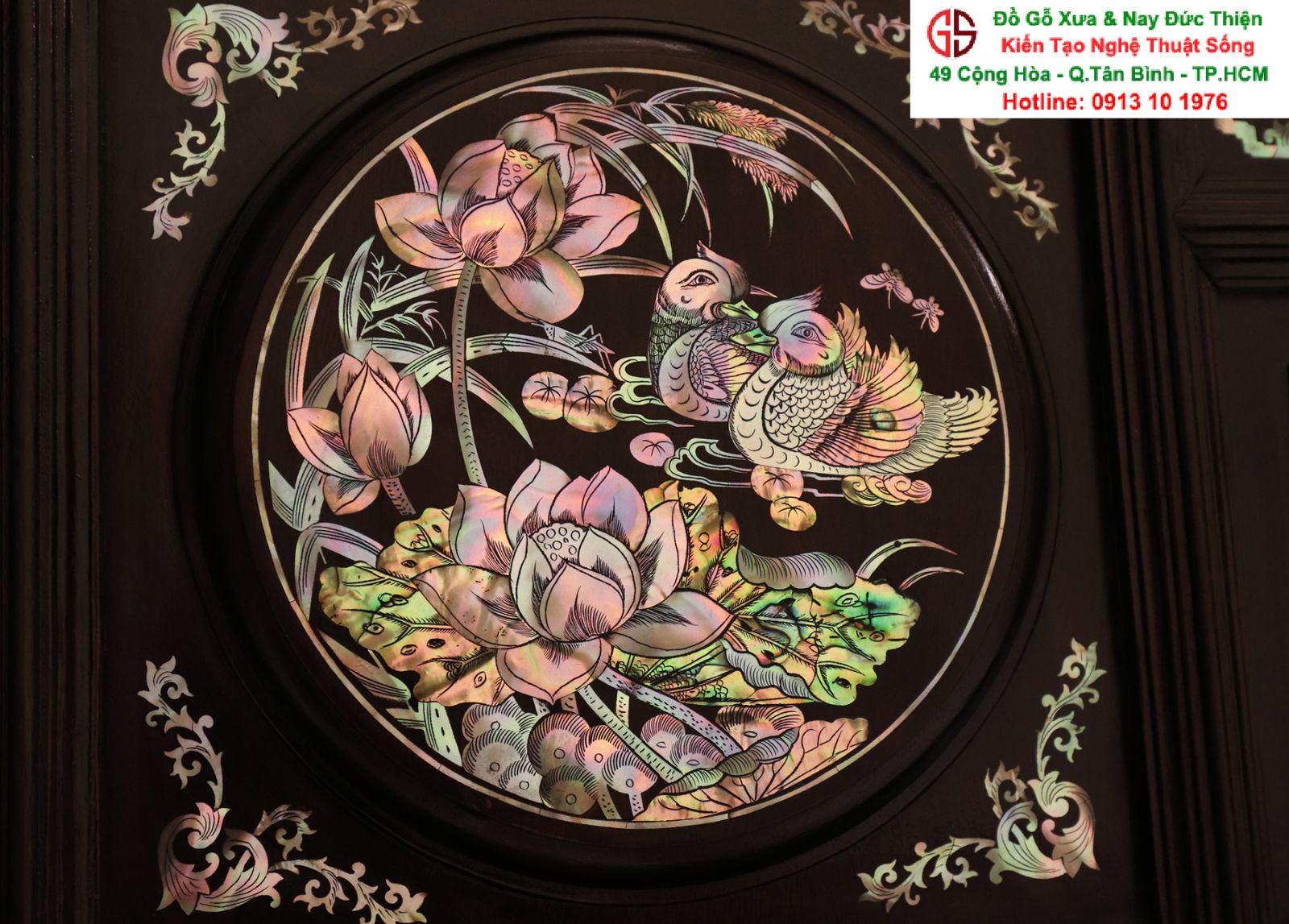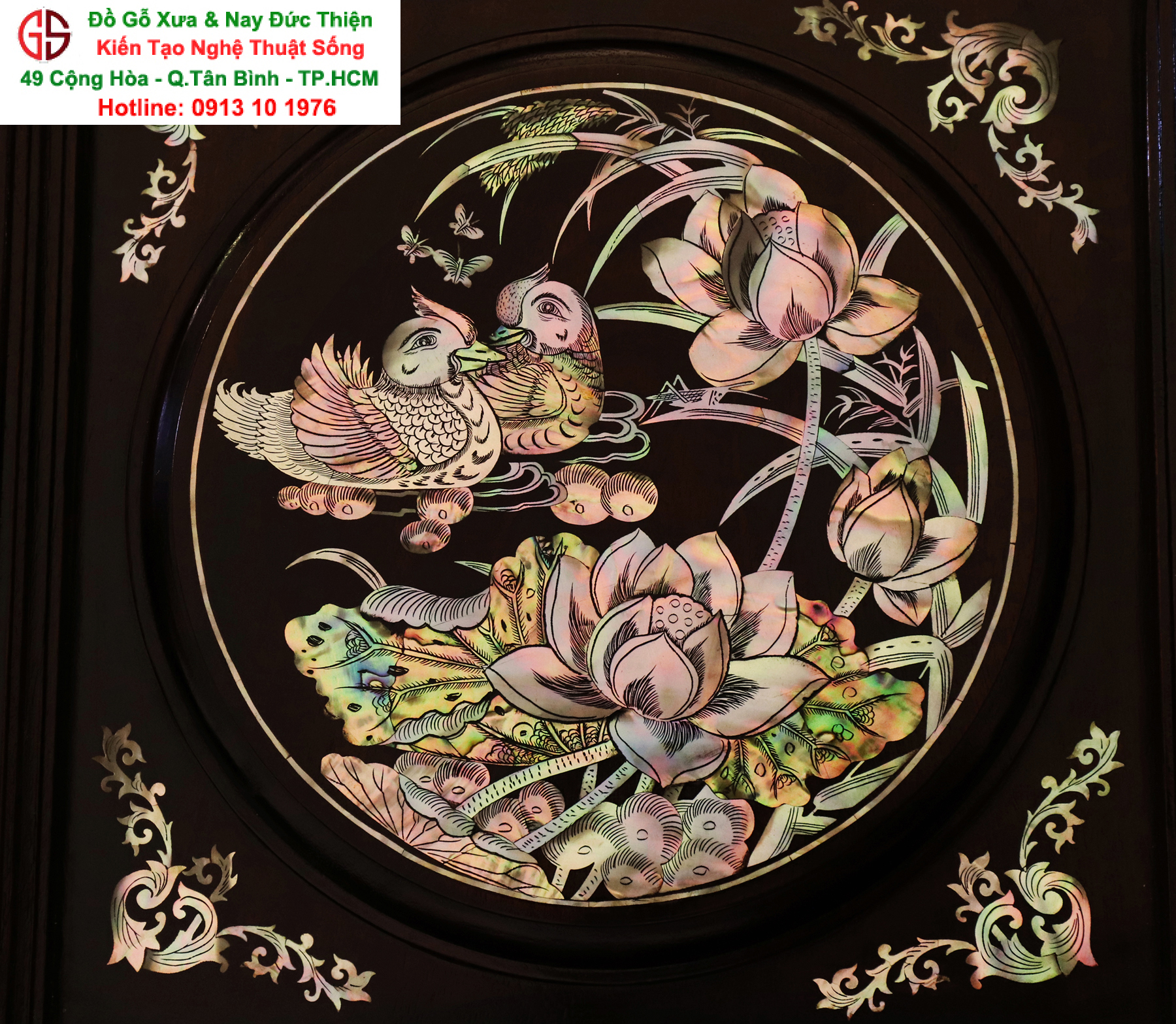 + Chất liệu: Gỗ Gụ + Khảm ốc Xà Cừ xịn