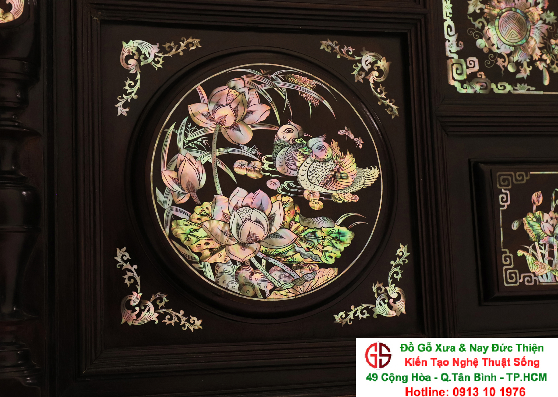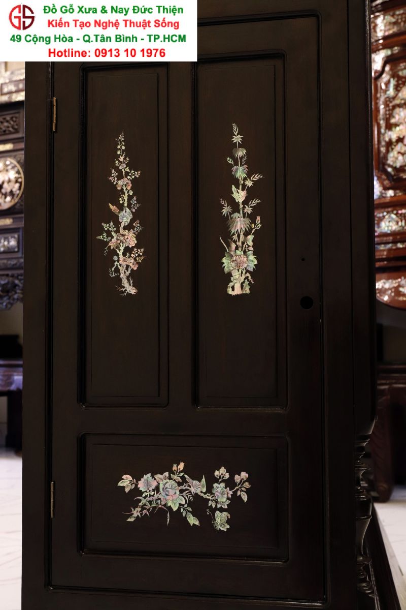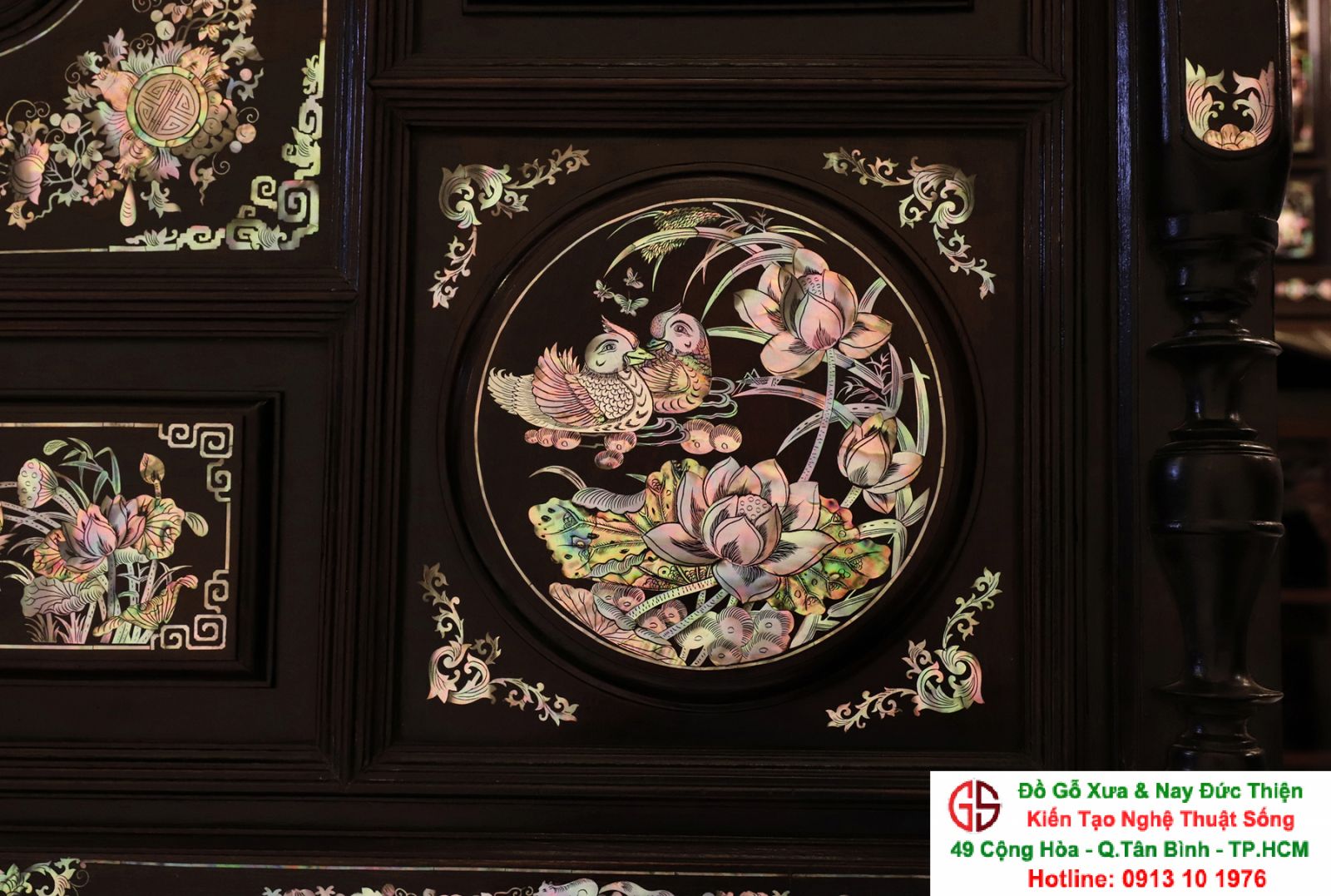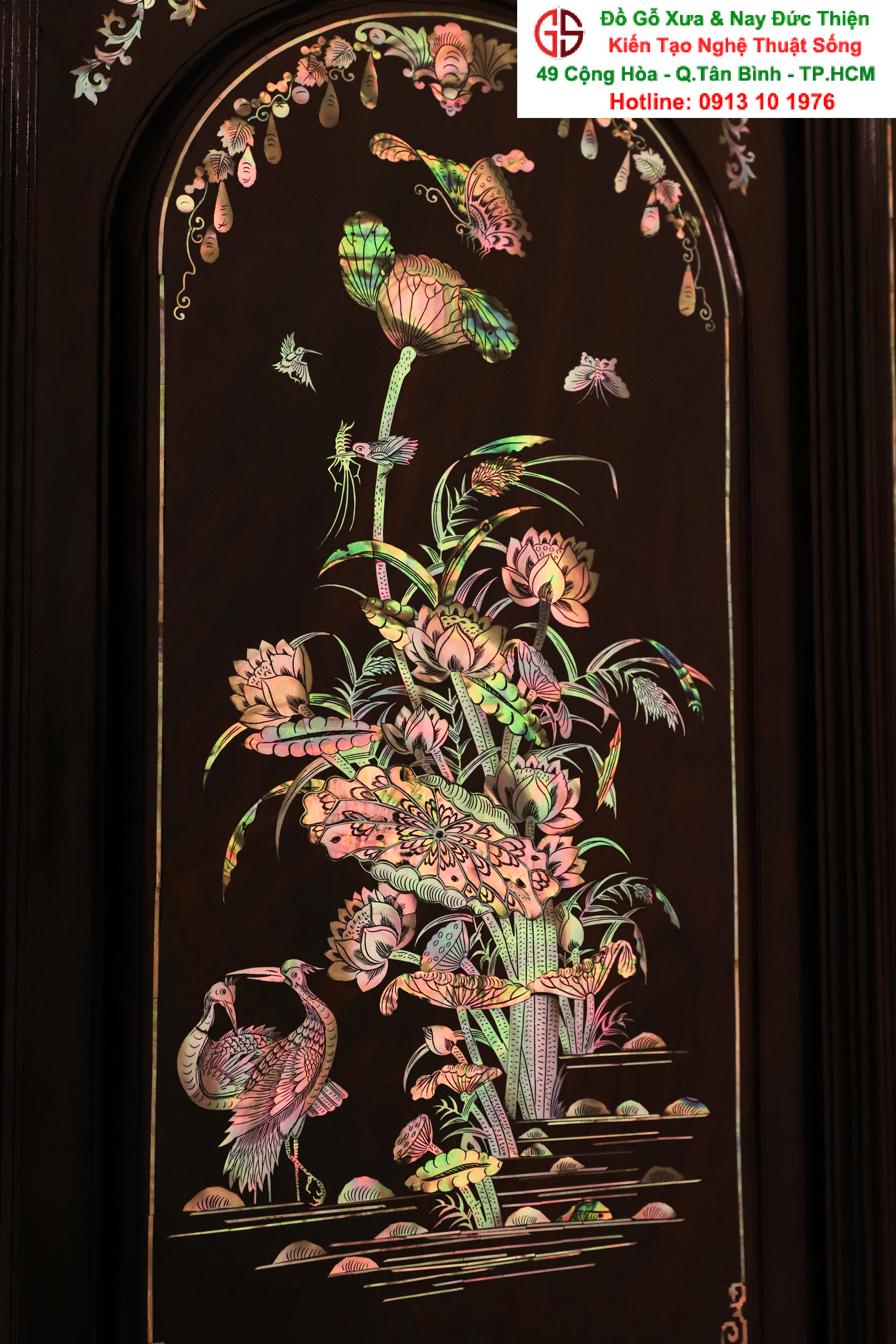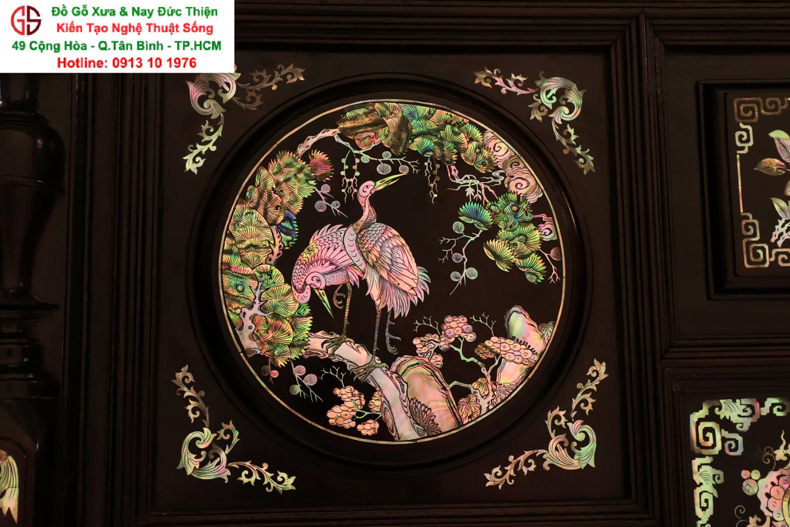 + Chất liệu: Gỗ Gụ + Khảm ốc Xà Cừ xịn