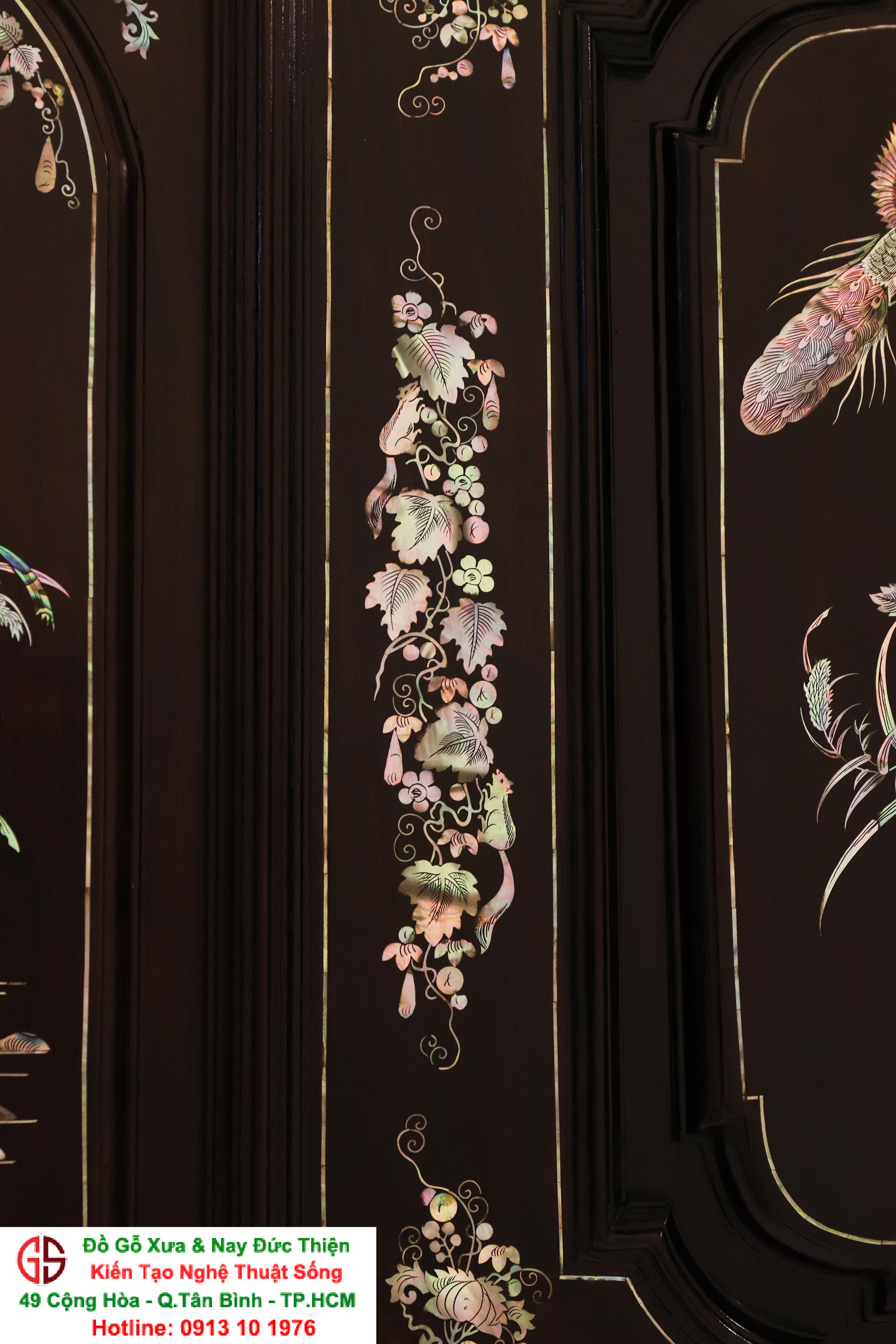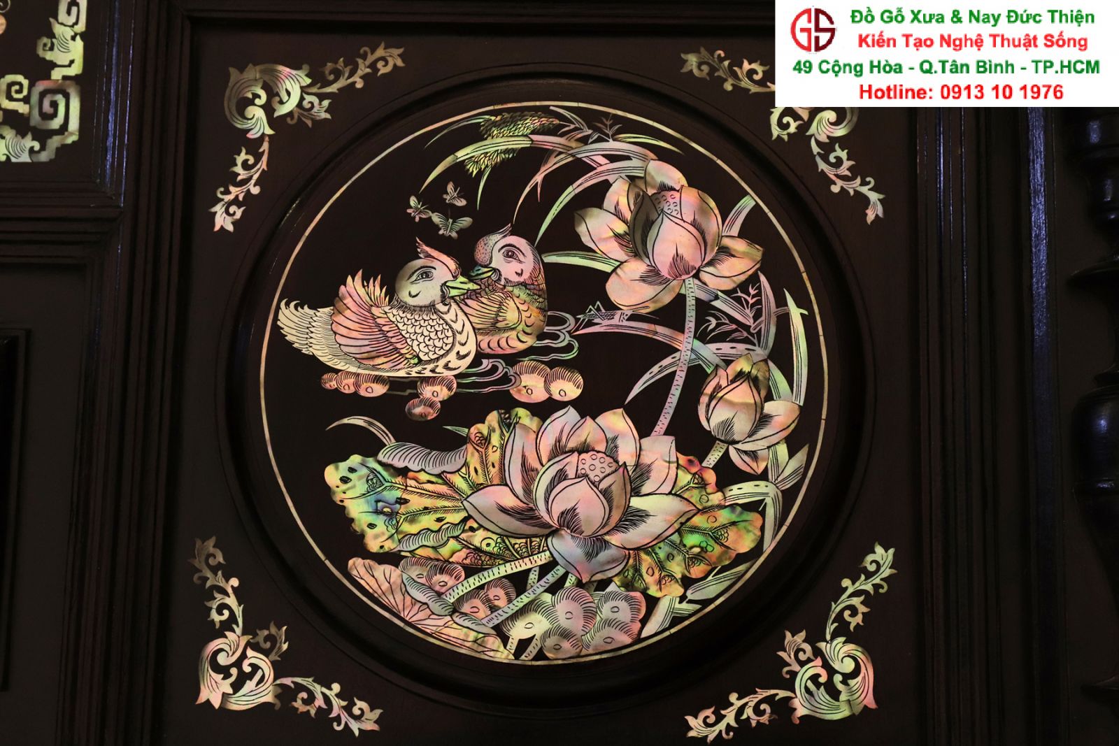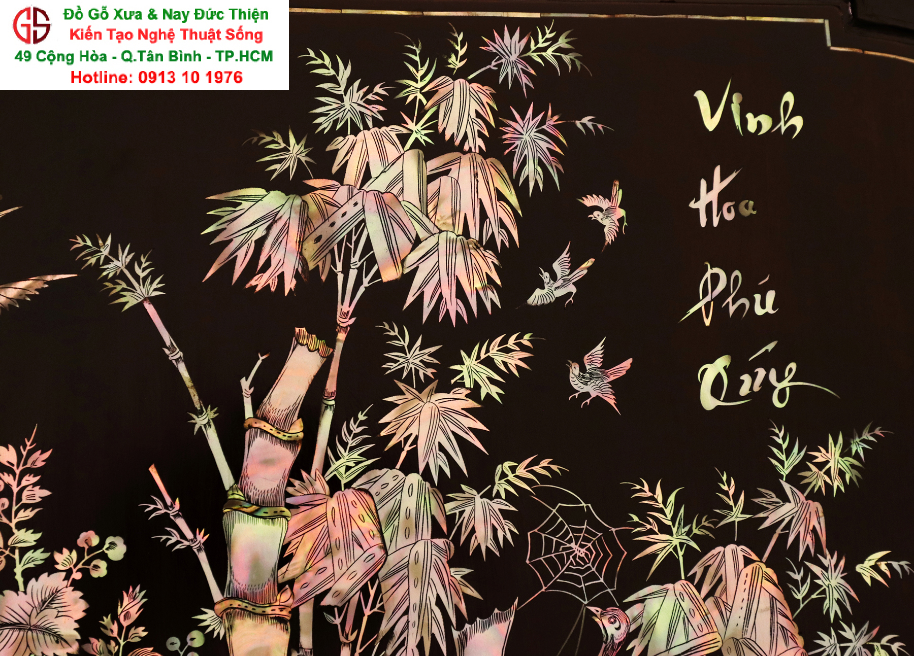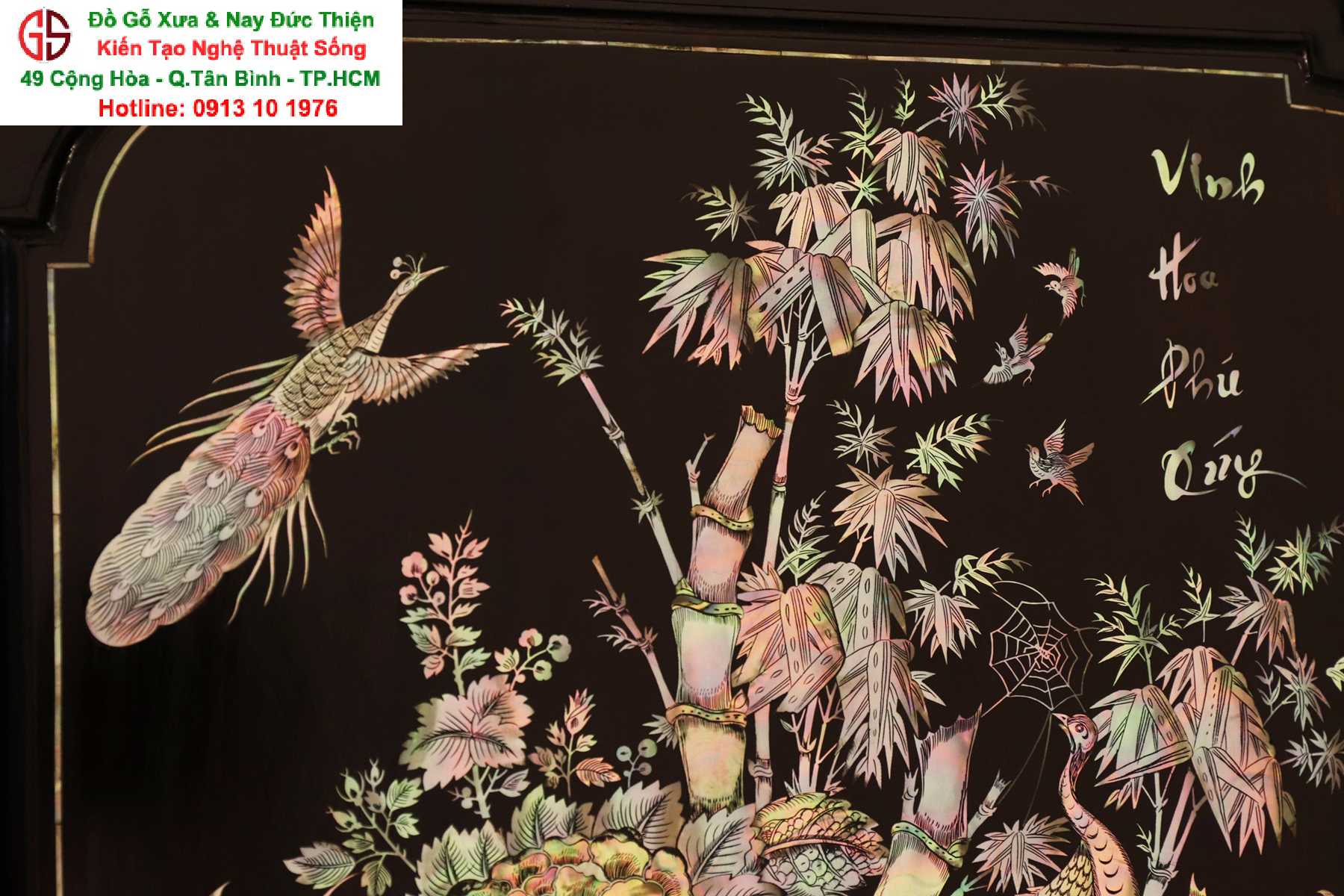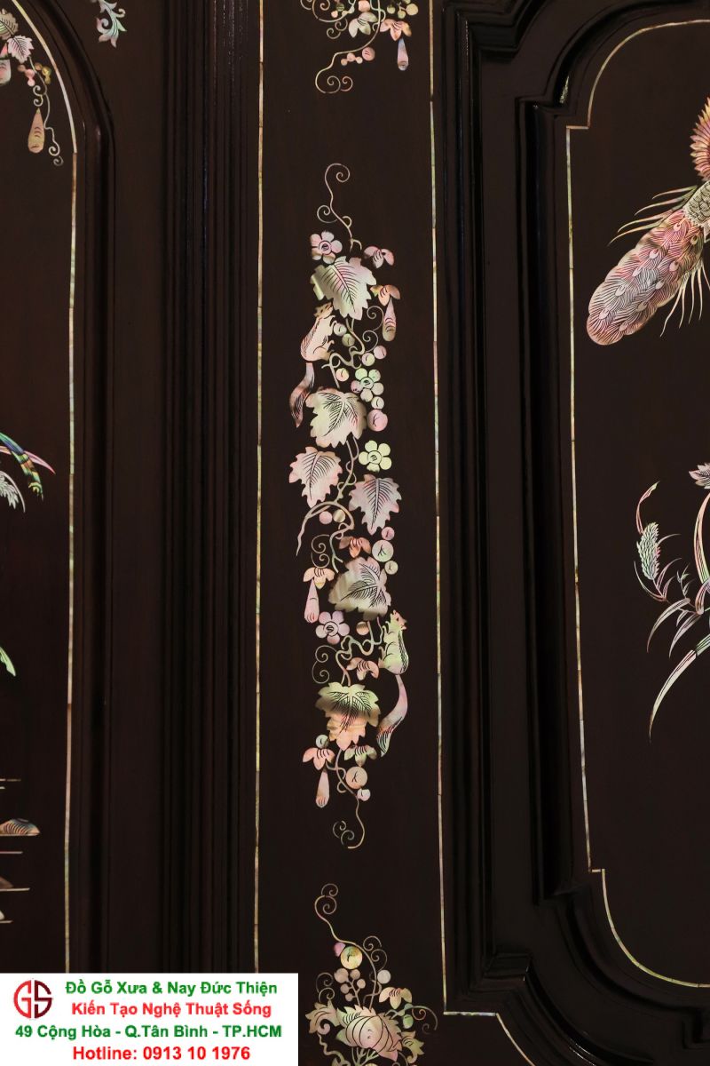 + Chất liệu: Gỗ Gụ + Khảm ốc Xà Cừ xịn