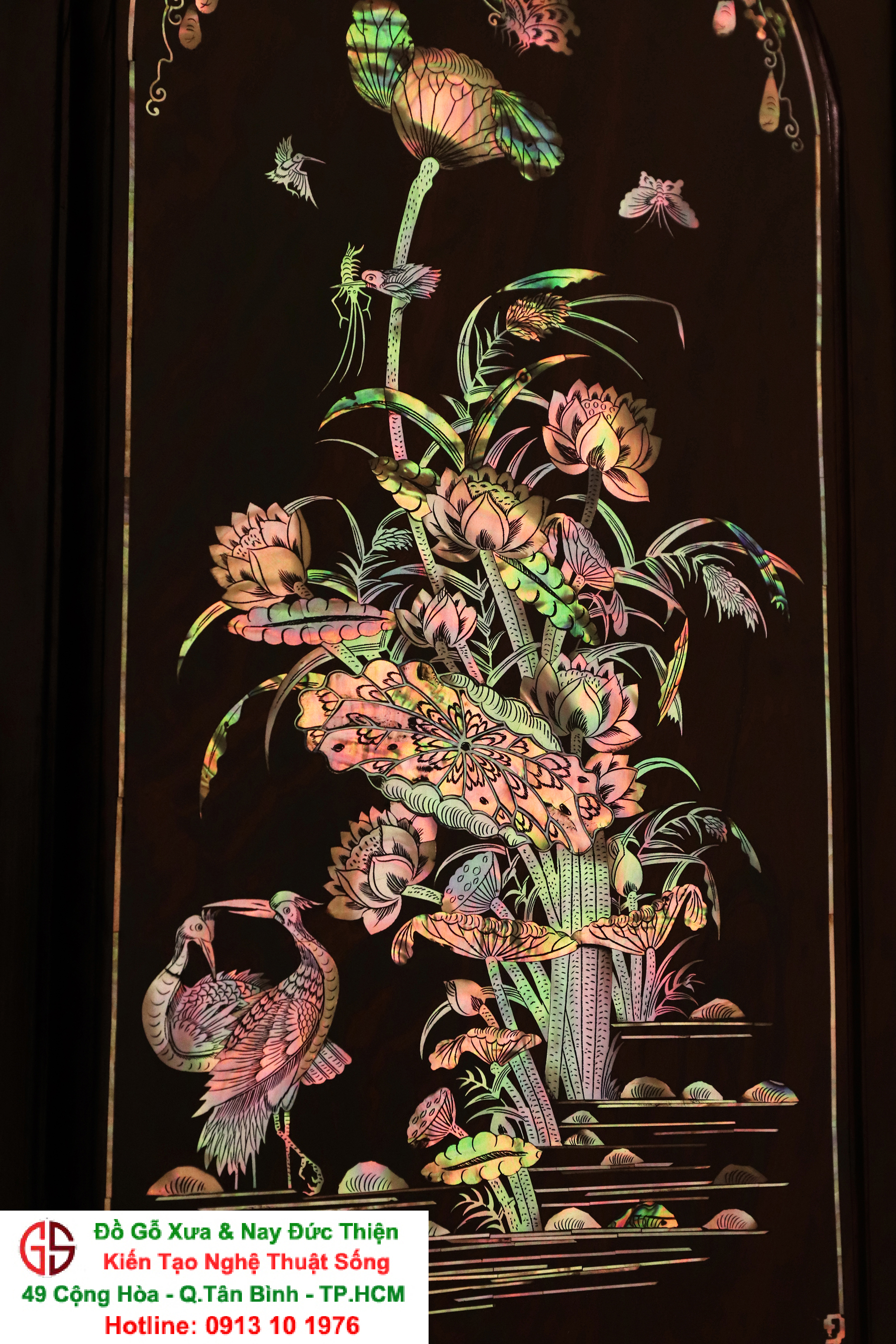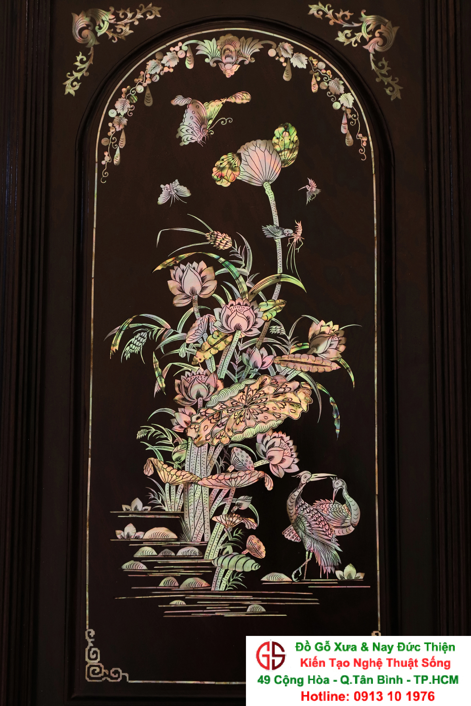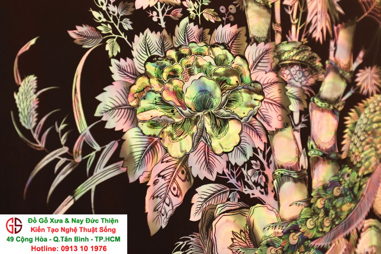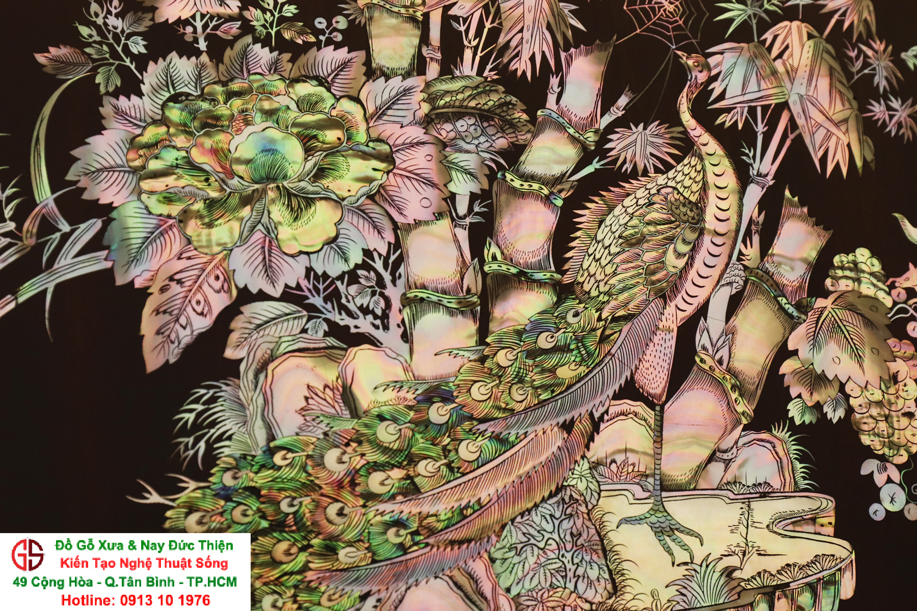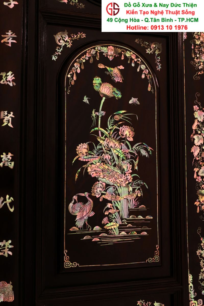 + Chất liệu: Gỗ Gụ + Khảm ốc Xà Cừ xịn