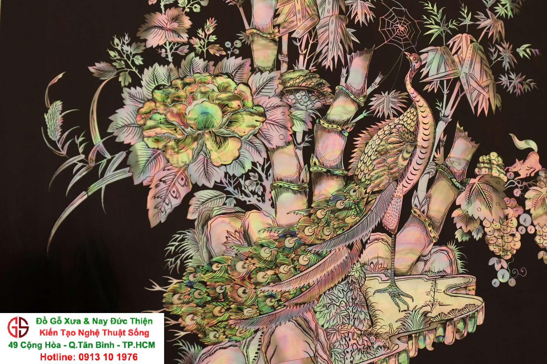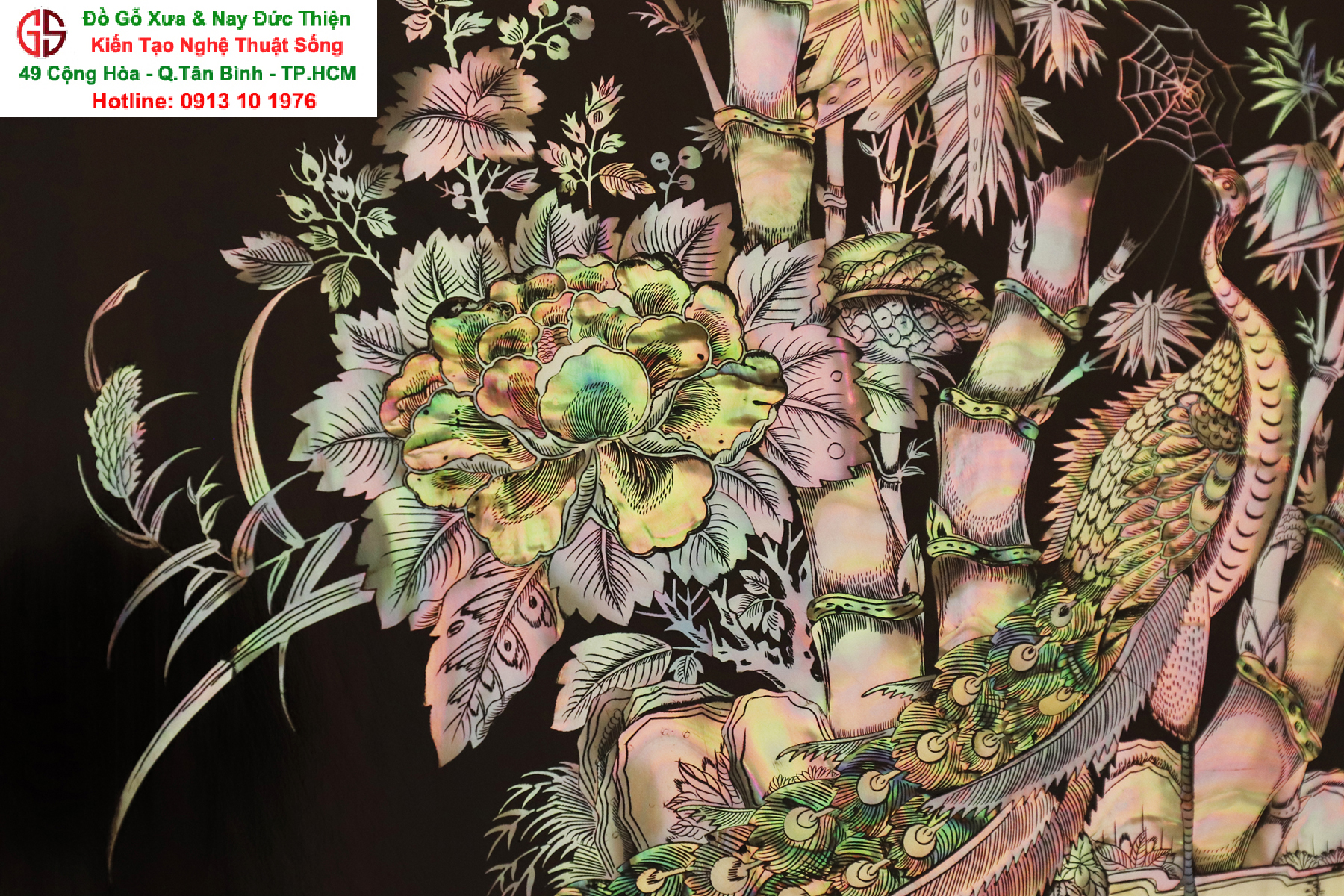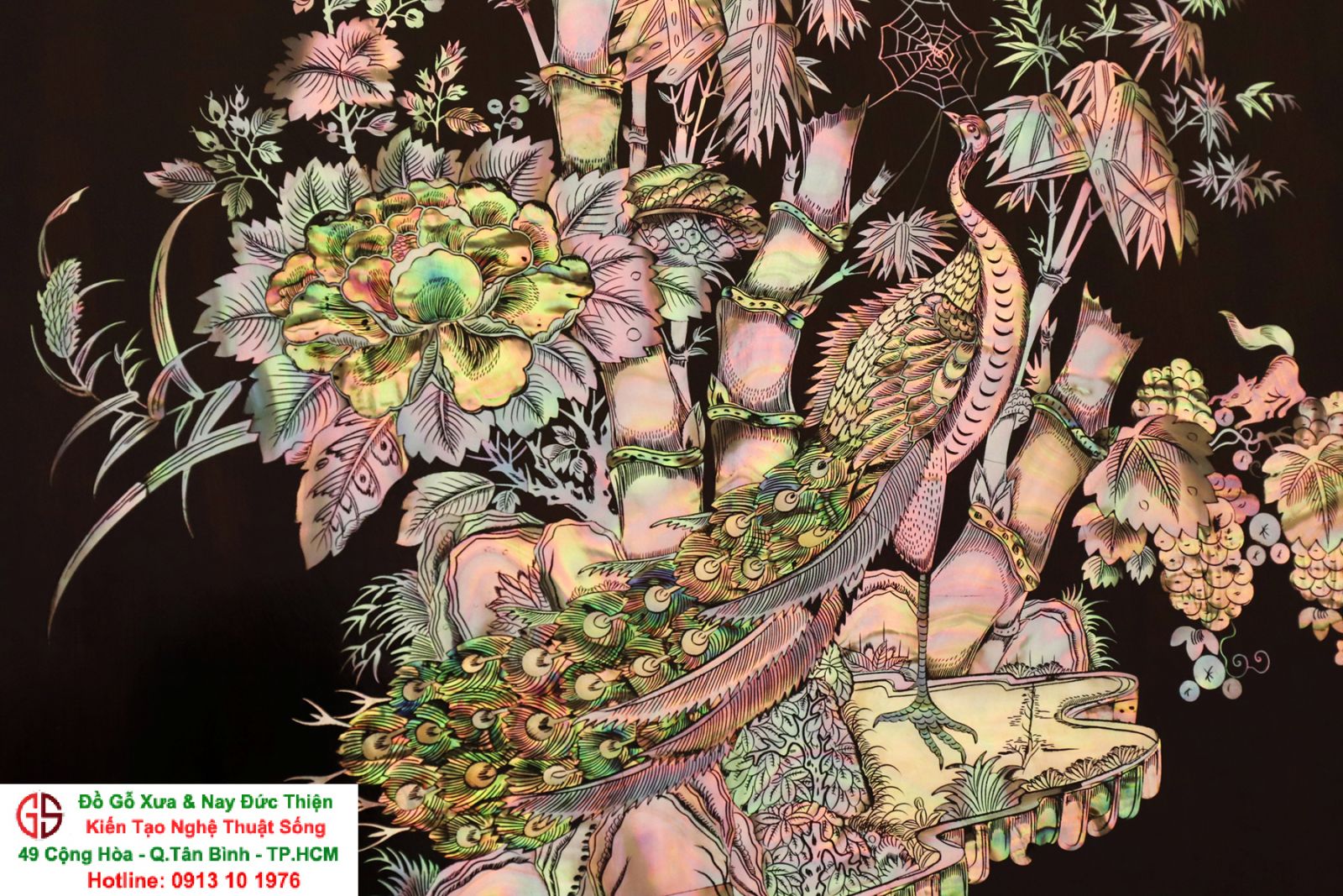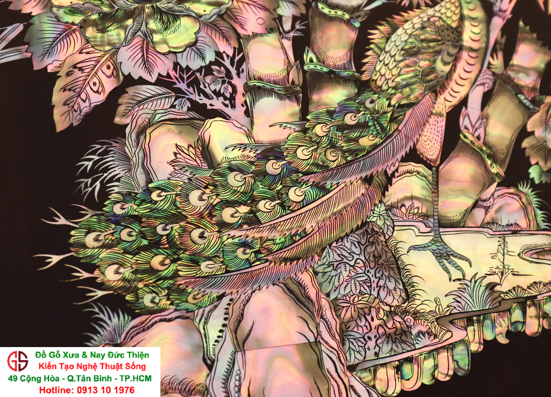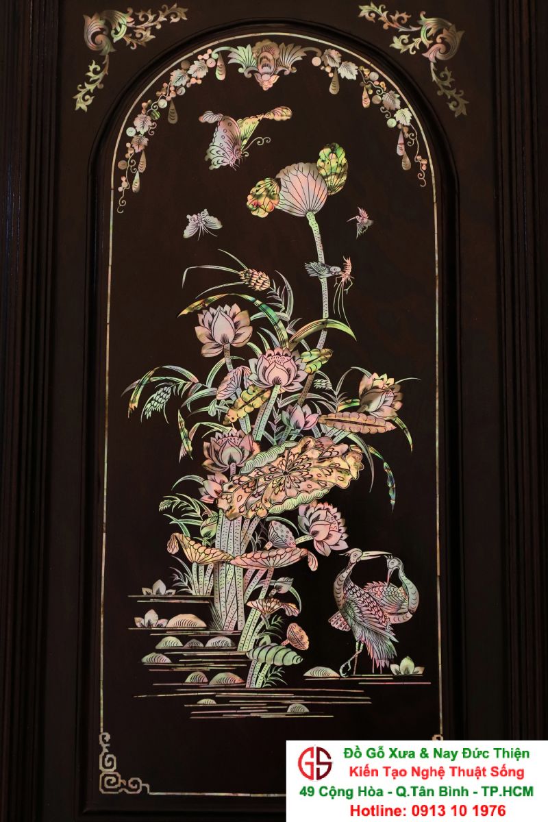 + Chất liệu: Gỗ Gụ + Khảm ốc Xà Cừ xịn