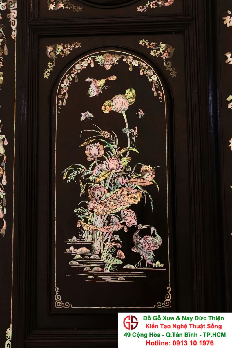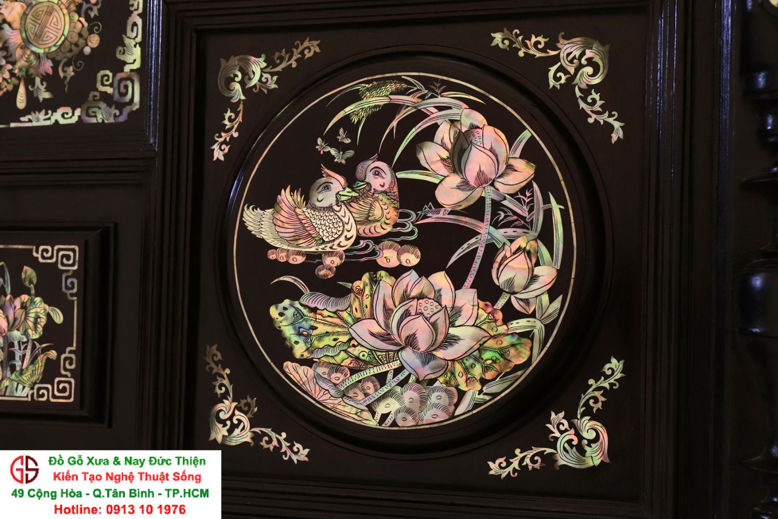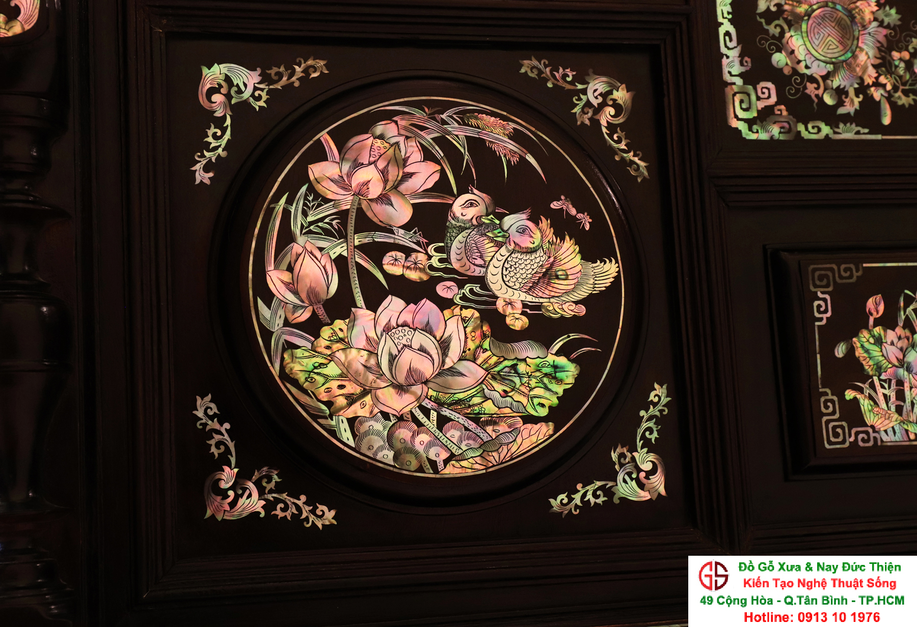 - Sập cẩn ốc xà cừ: sập cẩn ốc sen vịt, sập sen vịt tùng hạc.