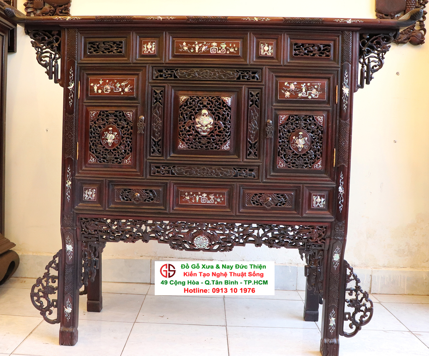 - Đồ Thờ: Bàn thờ, bàn tứ linh, nghi thờ, đại tự thờ, tủ thờ đẹp, tủ thờ cẩn xà cừ, tủ thờ cẩm lai, tủ thờ gò công, tủ thờ 13 chám, tủ thờ nhị thập tứ hiếu.