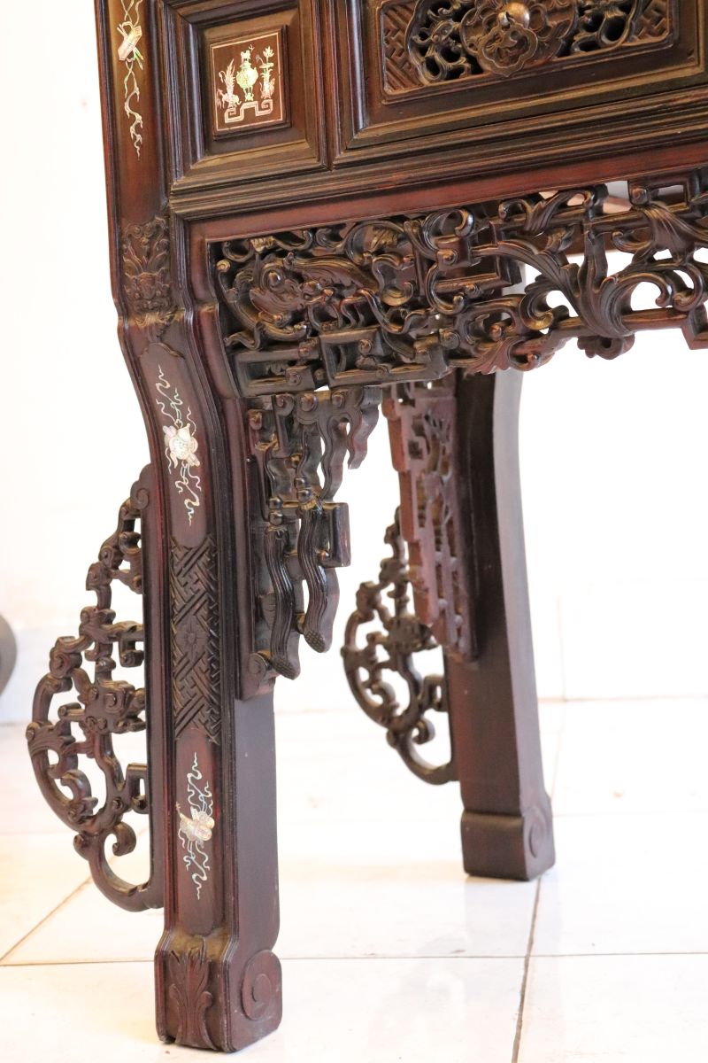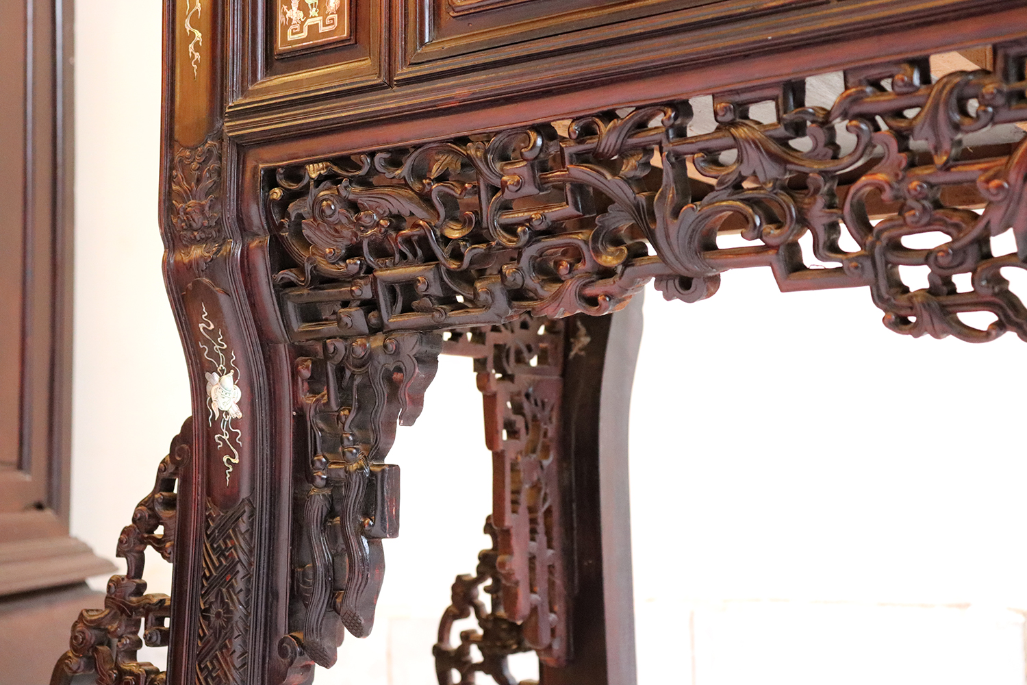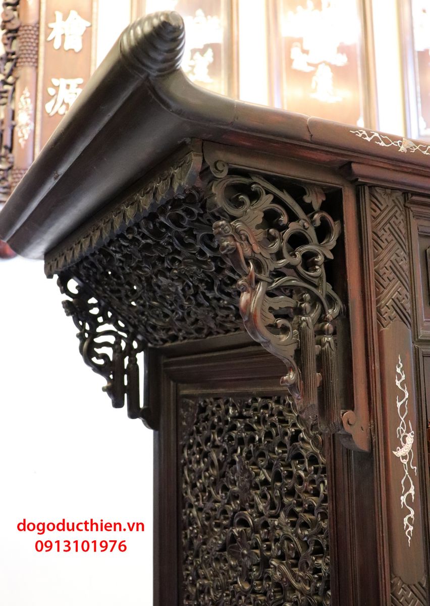 Một chiếc tủ thờ Huế xịn được chạm khắc hoàn toàn thủ công tay, mang đậm dấu ấn cung đình Huế với vẻ đẹp cổ kính, quý tộc, giàu sang, rất đáng sưu tầm và sở hữu