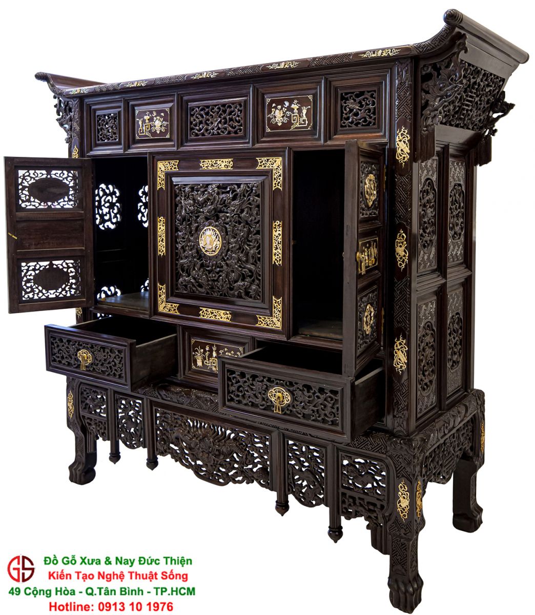 - Đồ Thờ: Bàn thờ, bàn tứ linh, nghi thờ, đại tự thờ, tủ thờ đẹp, tủ thờ cẩn xà cừ, tủ thờ cẩm lai, tủ thờ gò công, tủ thờ 13 chám, tủ thờ nhị thập tứ hiếu.