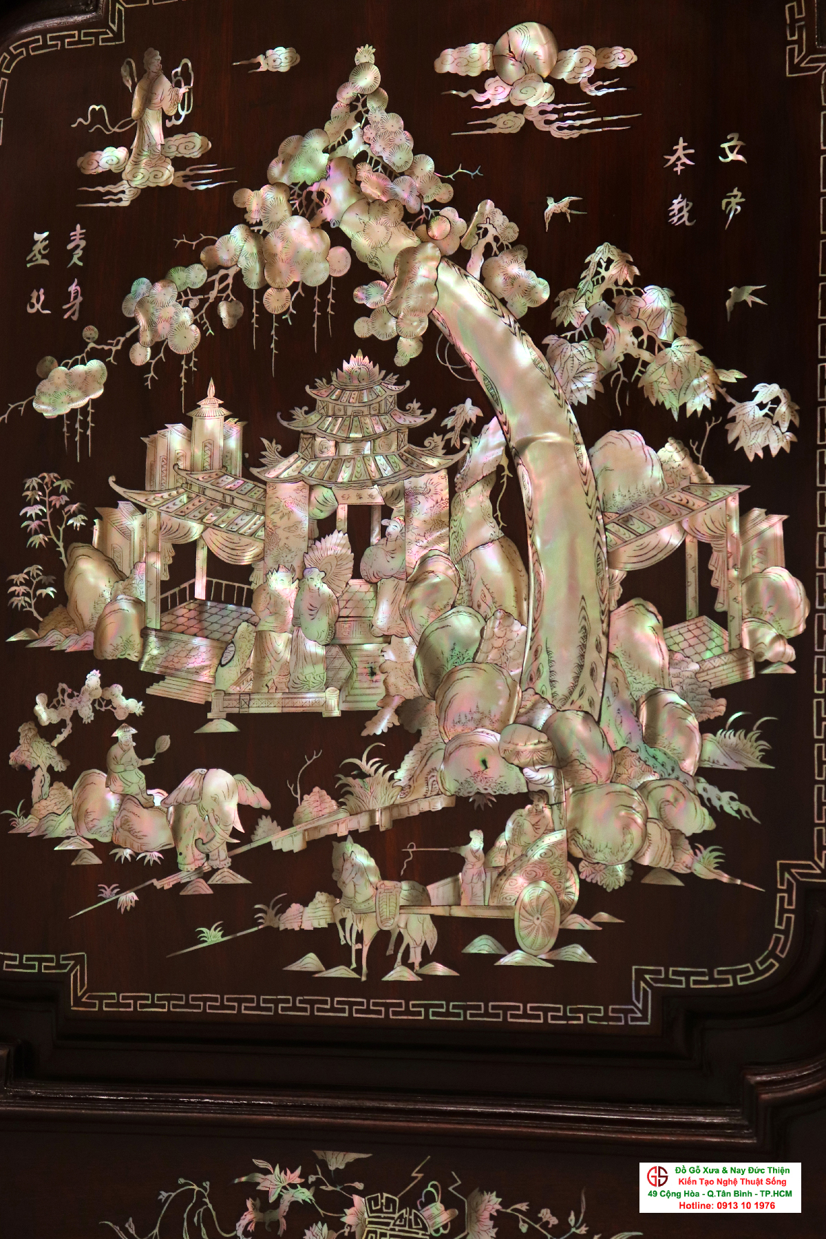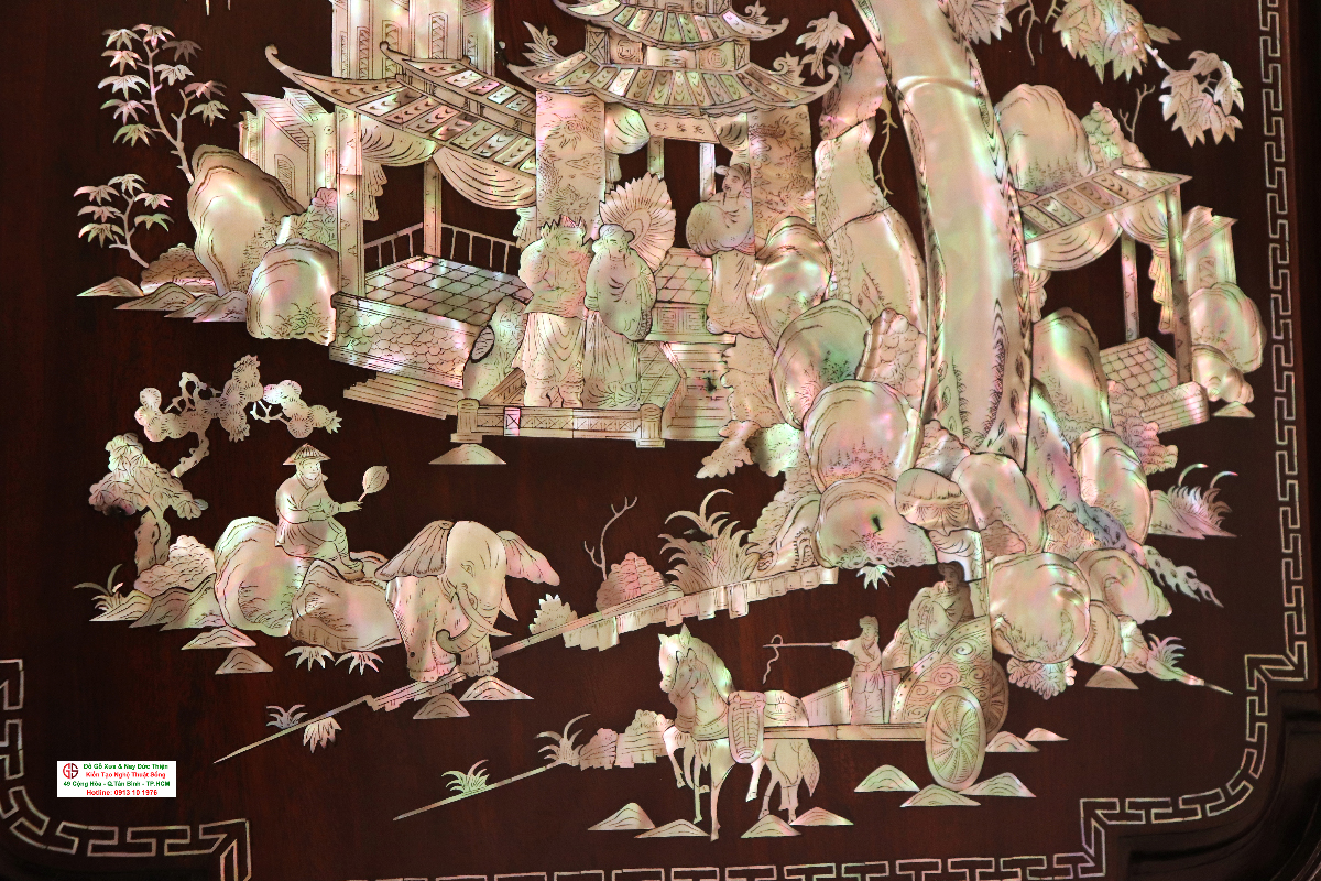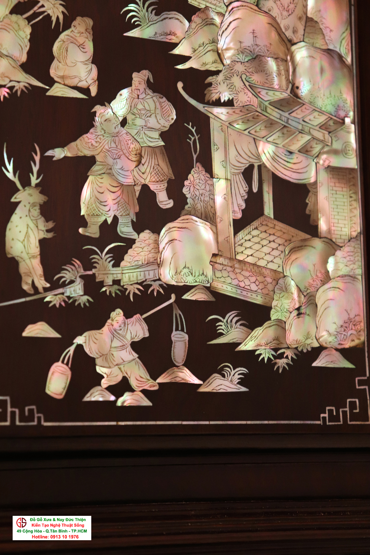 Chiếc tủ thờ khảm ốc 13 chám tích Nhị Thập Tứ Hiếu tôi sẽ giới thiệu sau đây là một thí dụ tiêu biểu cho dòng tủ thờ được hoàn thiện bởi những nghệ nhân xứ Huế, trên chất liệu hoàn toàn là gỗ gụ ta, khảm ốc xà cừ, cắt tỉa tỉ mỉ, nghệ thuật.