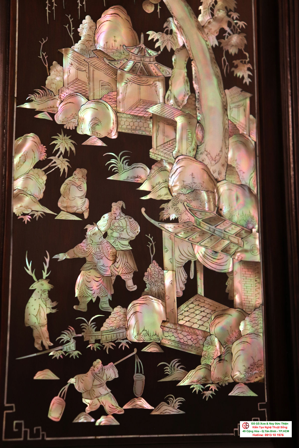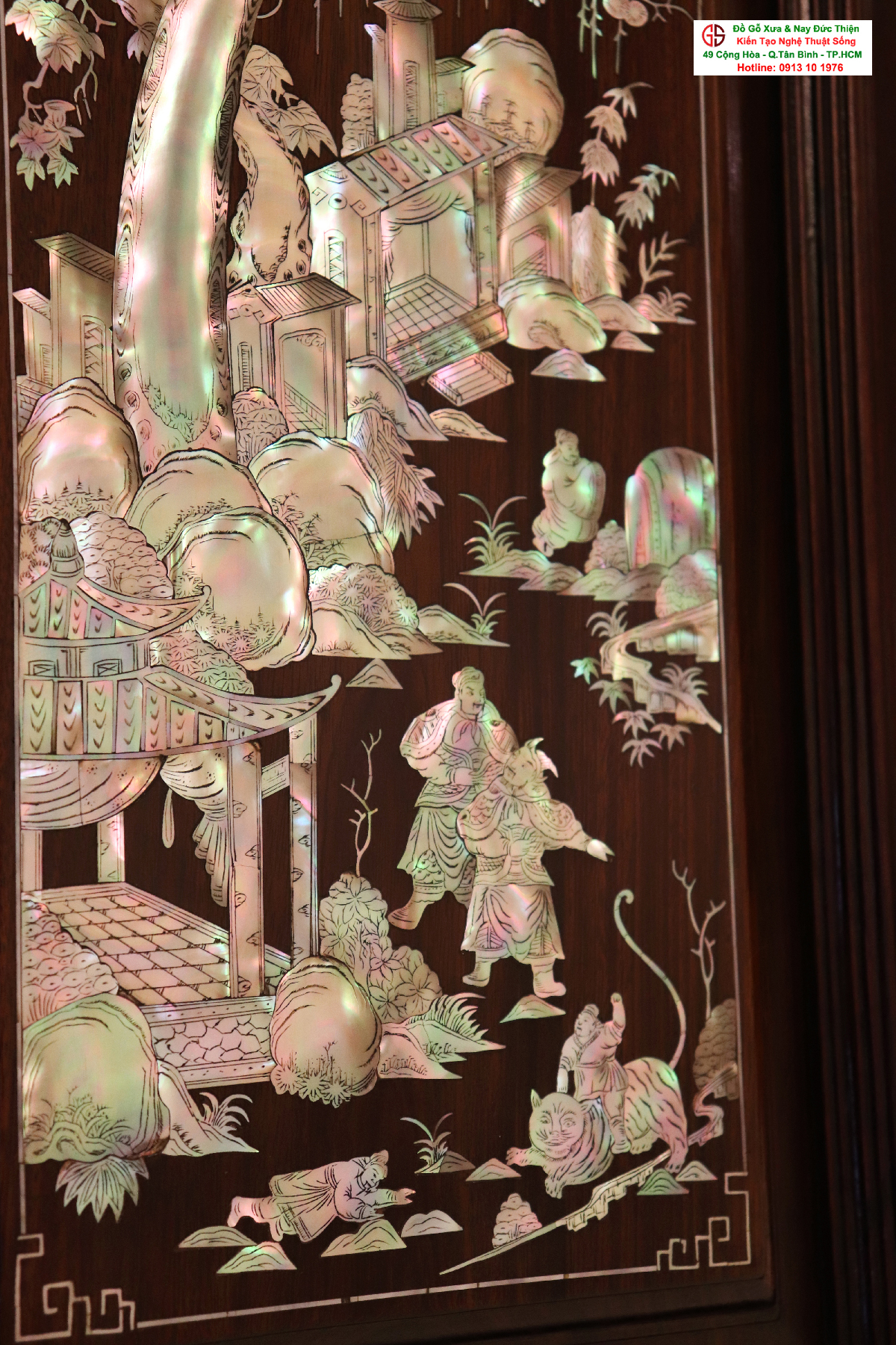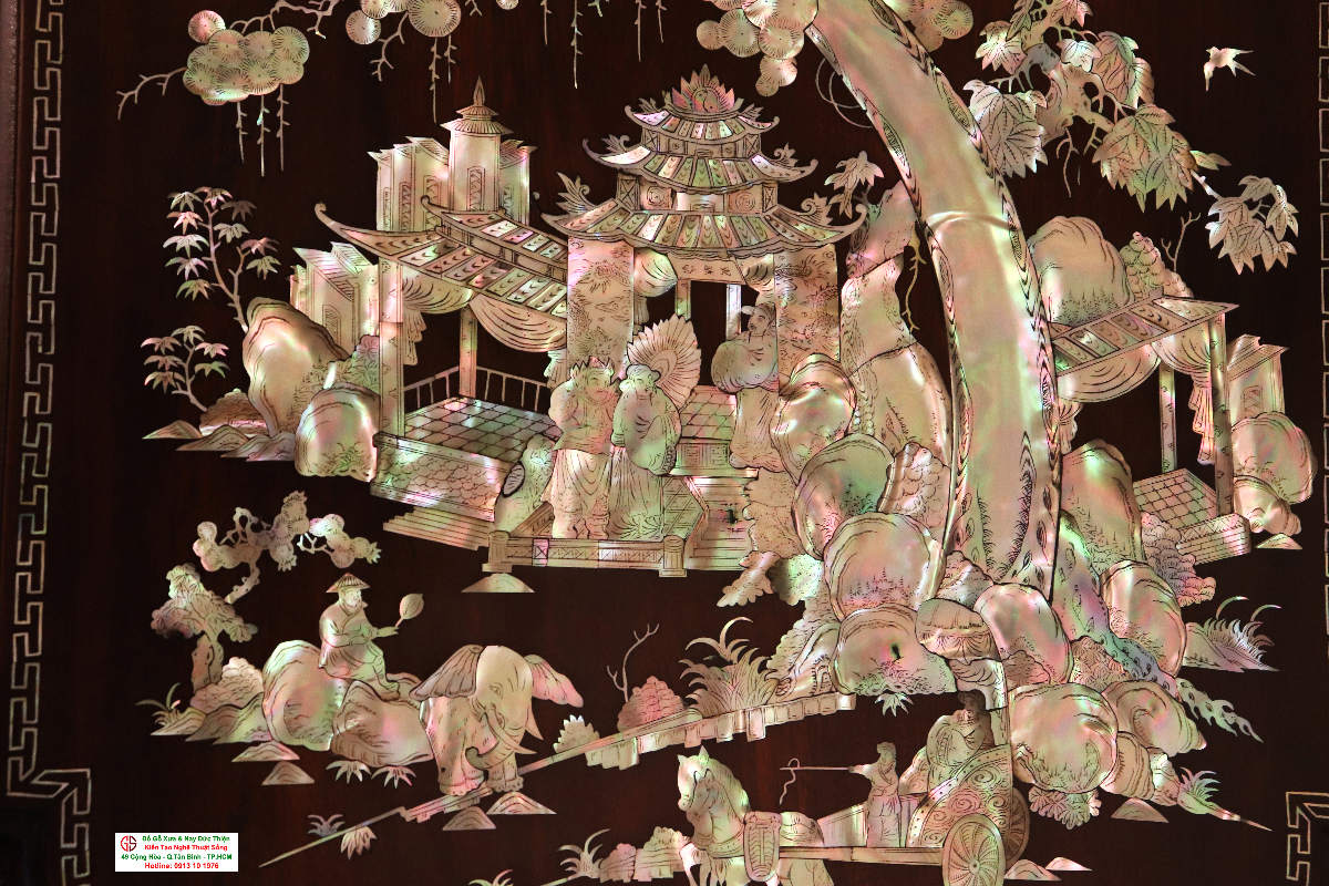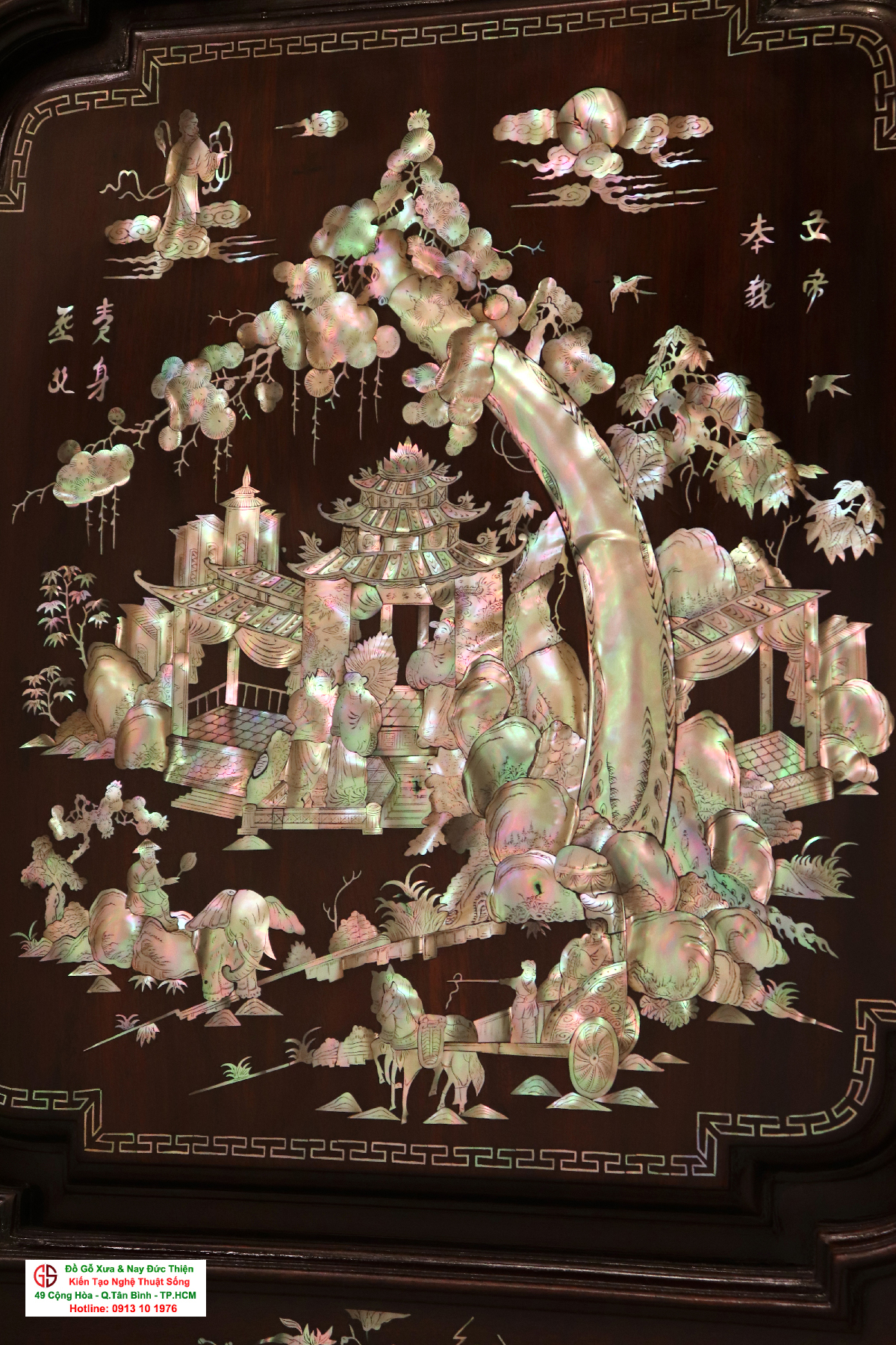 Chiếc tủ thờ khảm ốc 13 chám tích Nhị Thập Tứ Hiếu tôi sẽ giới thiệu sau đây là một thí dụ tiêu biểu cho dòng tủ thờ được hoàn thiện bởi những nghệ nhân xứ Huế, trên chất liệu hoàn toàn là gỗ gụ ta, khảm ốc xà cừ, cắt tỉa tỉ mỉ, nghệ thuật.