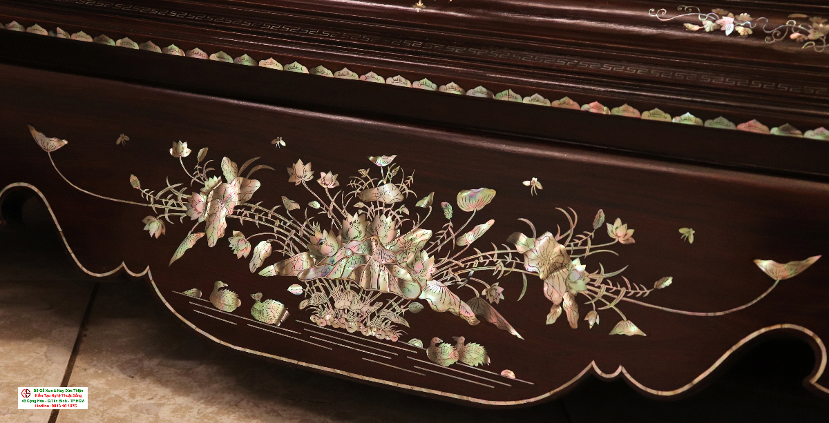 - Sập cẩn ốc xà cừ: sập cẩn ốc sen vịt, sập sen vịt tùng hạc.