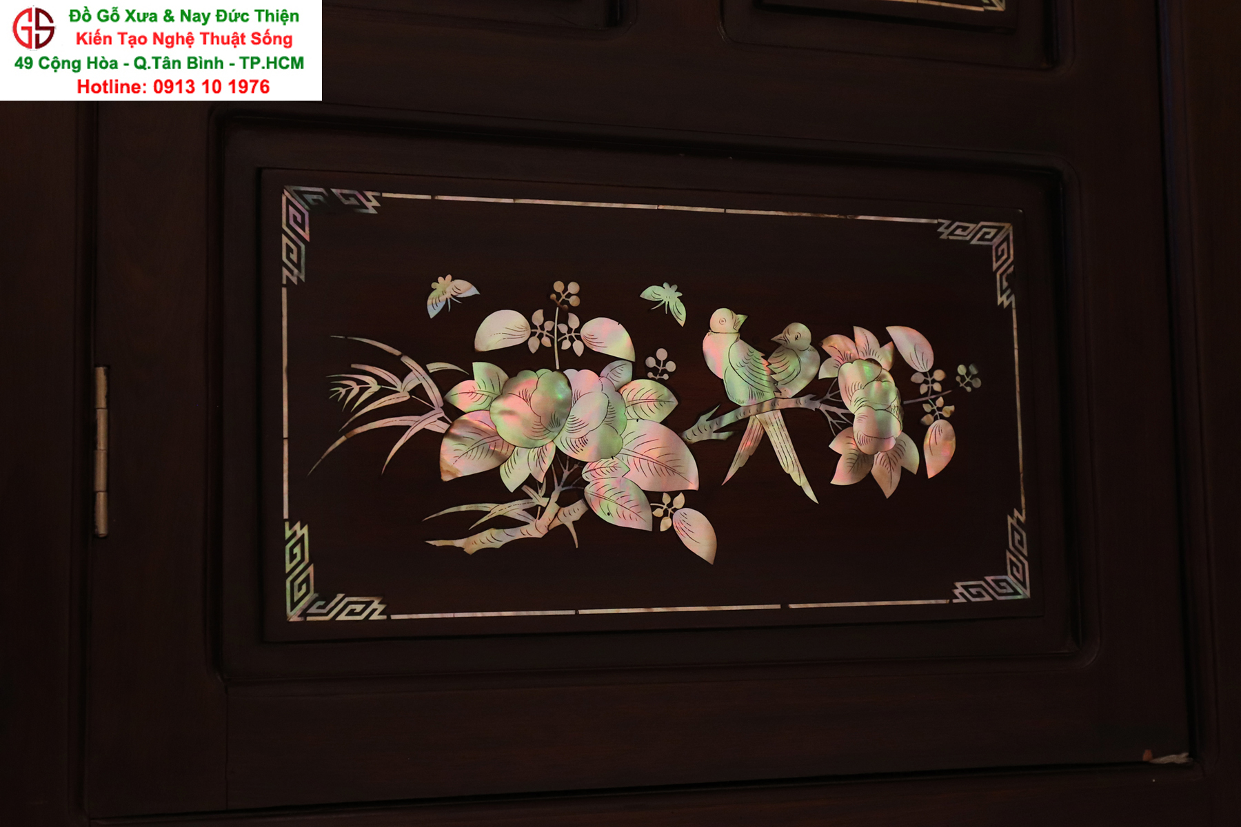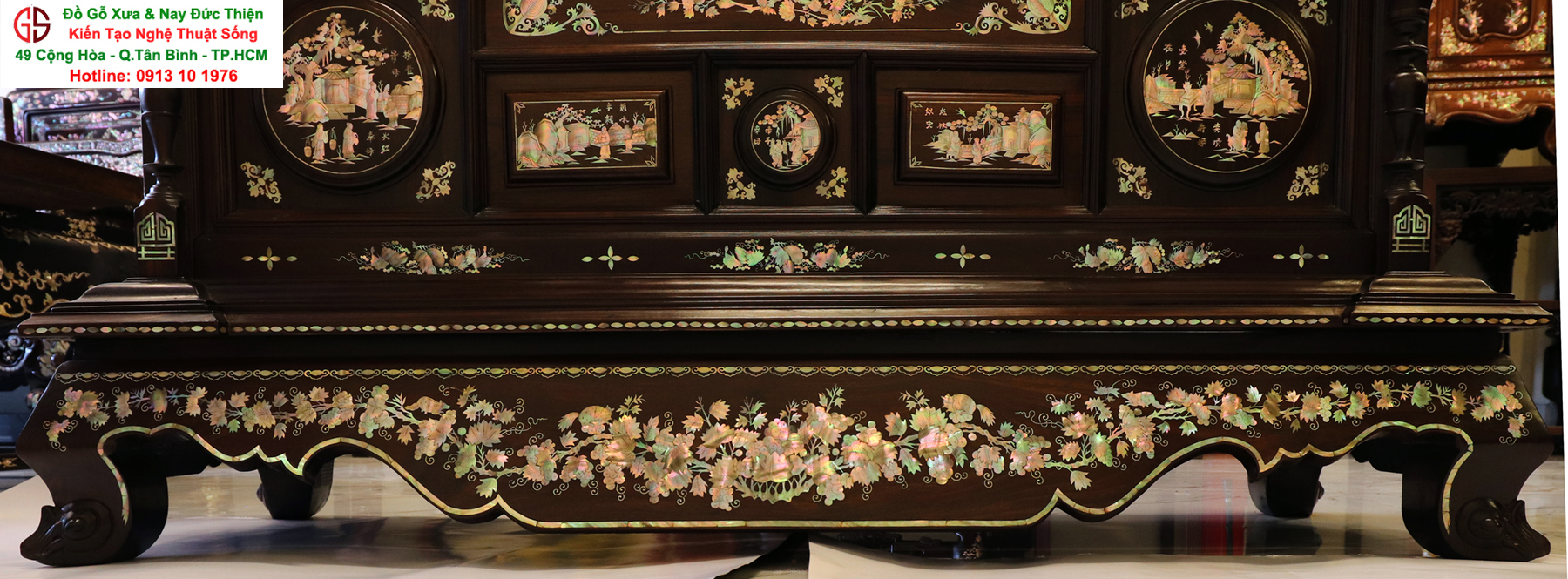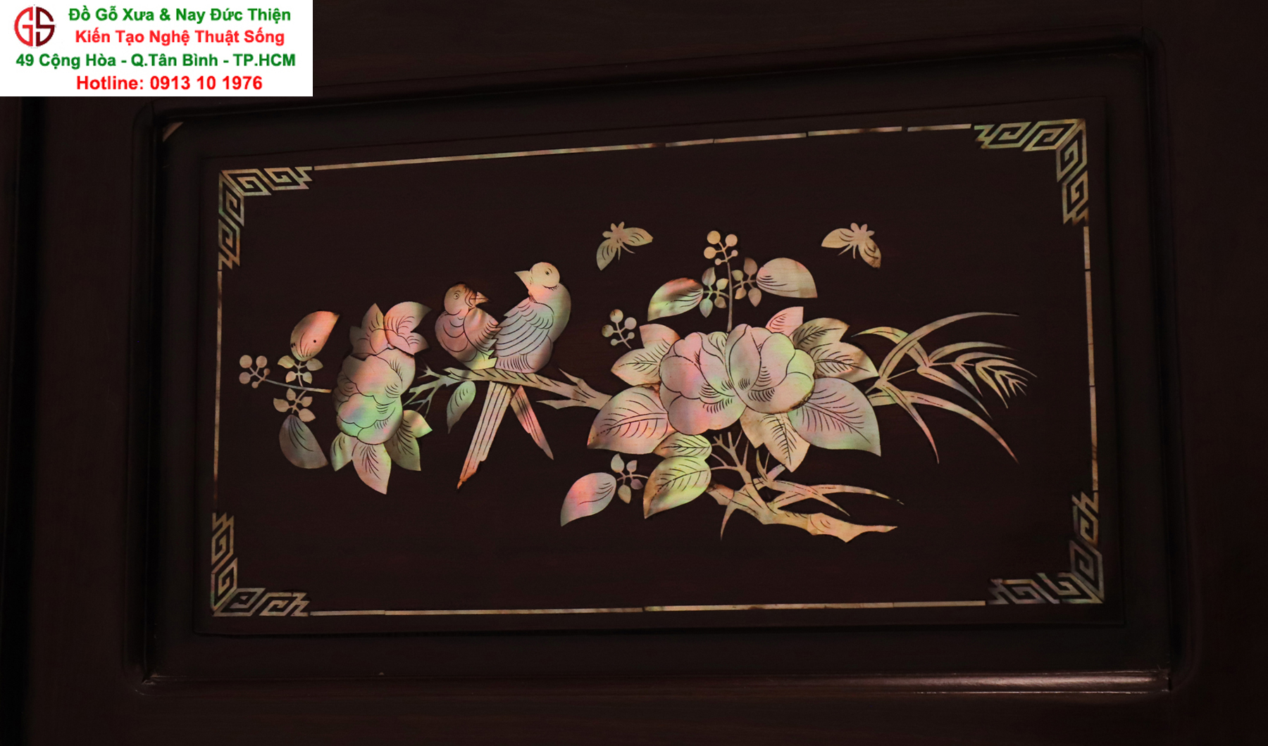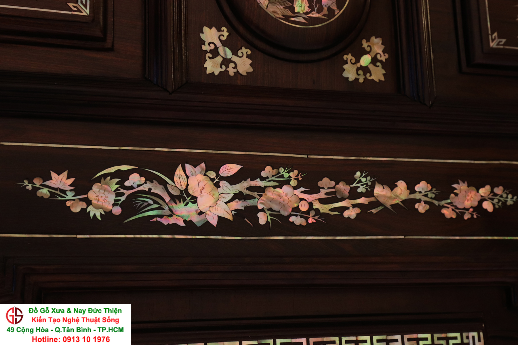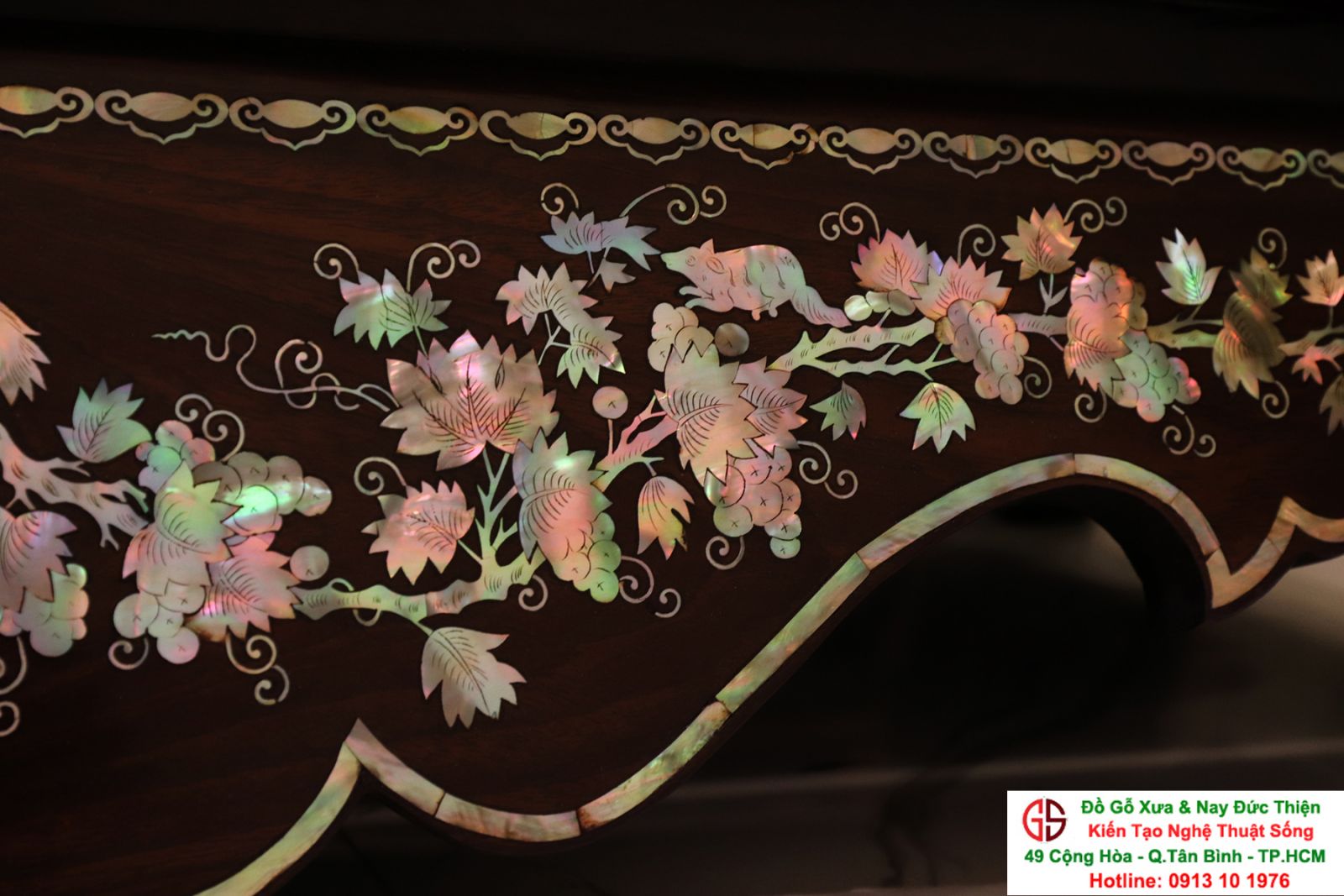 + Chất liệu: Gỗ Gụ + Khảm Ốc Xà Cừ