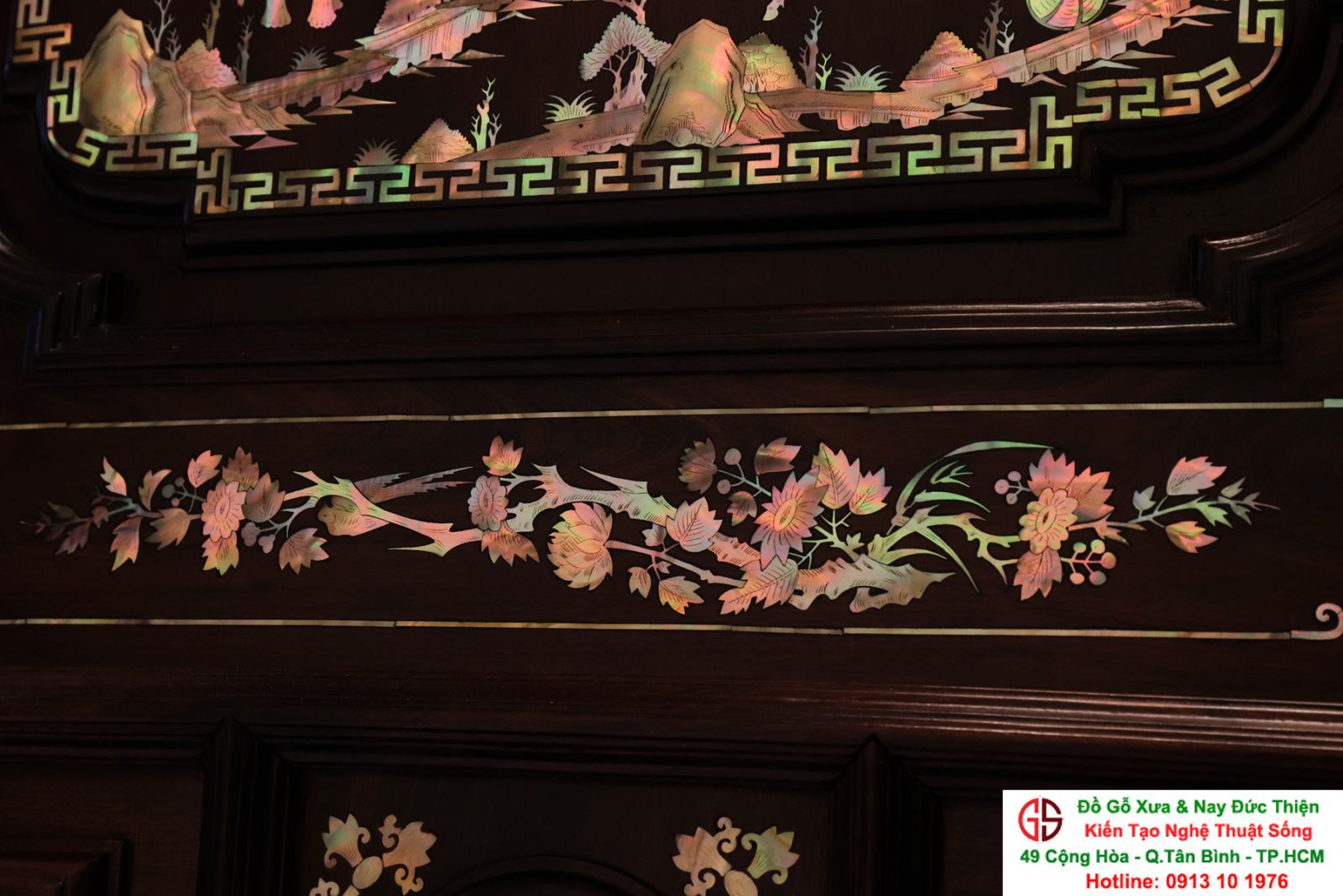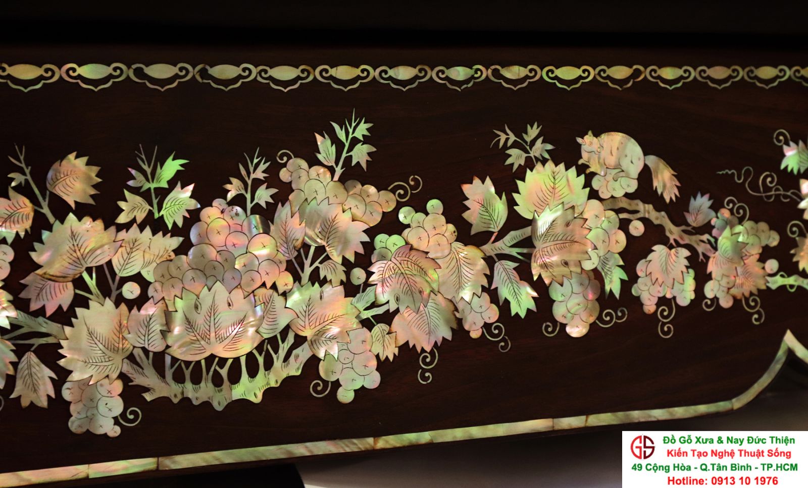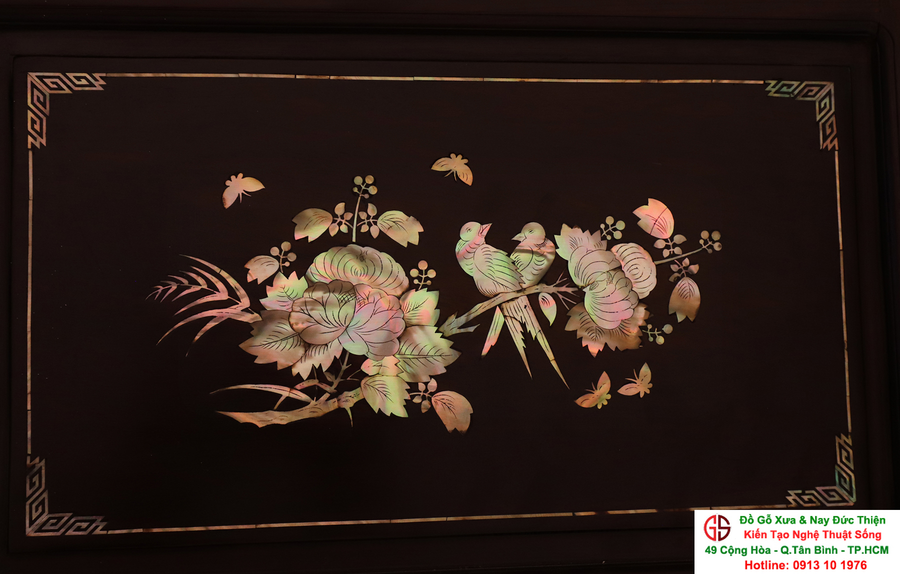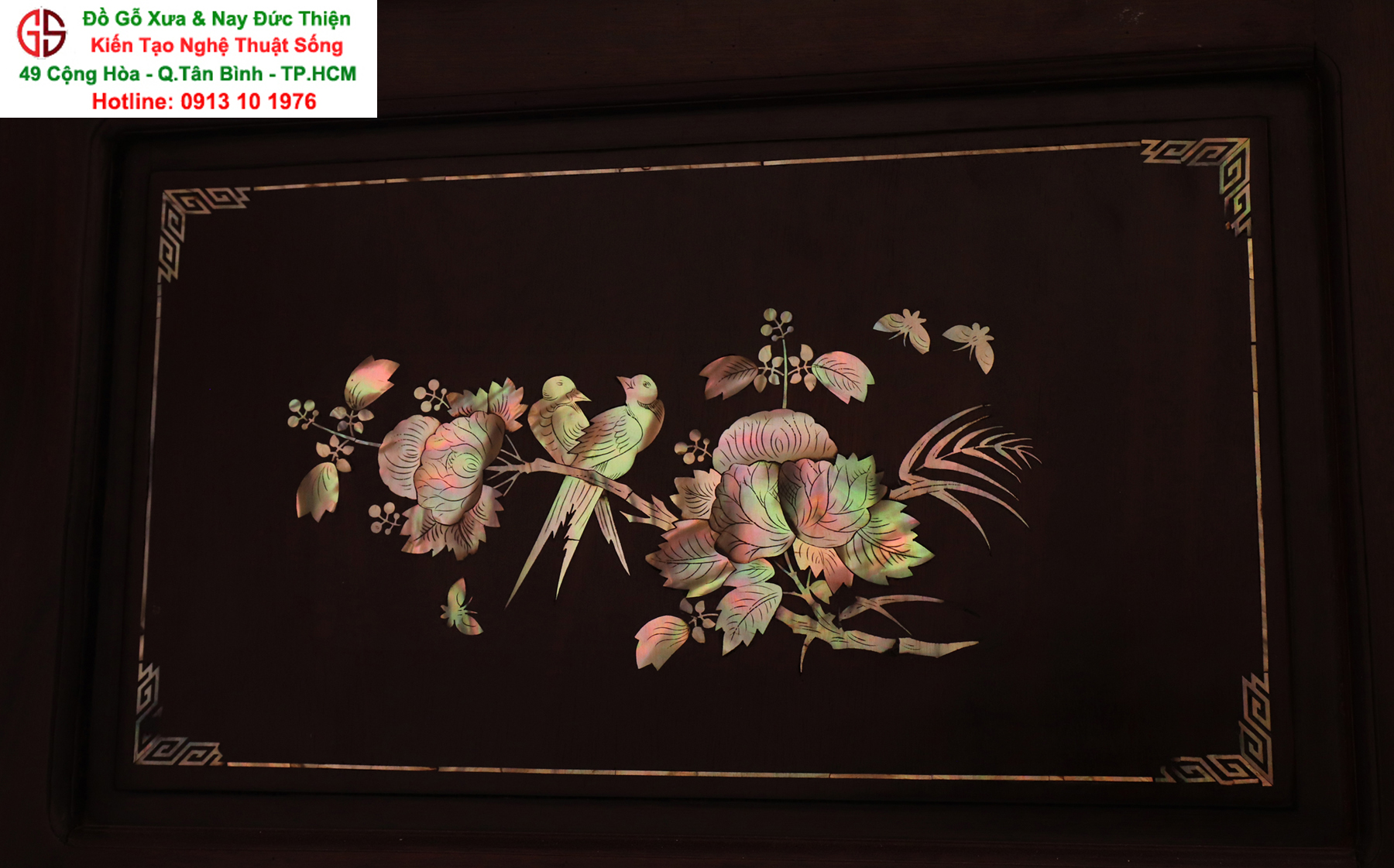 + Chất liệu: Gỗ Gụ + Khảm Ốc Xà Cừ