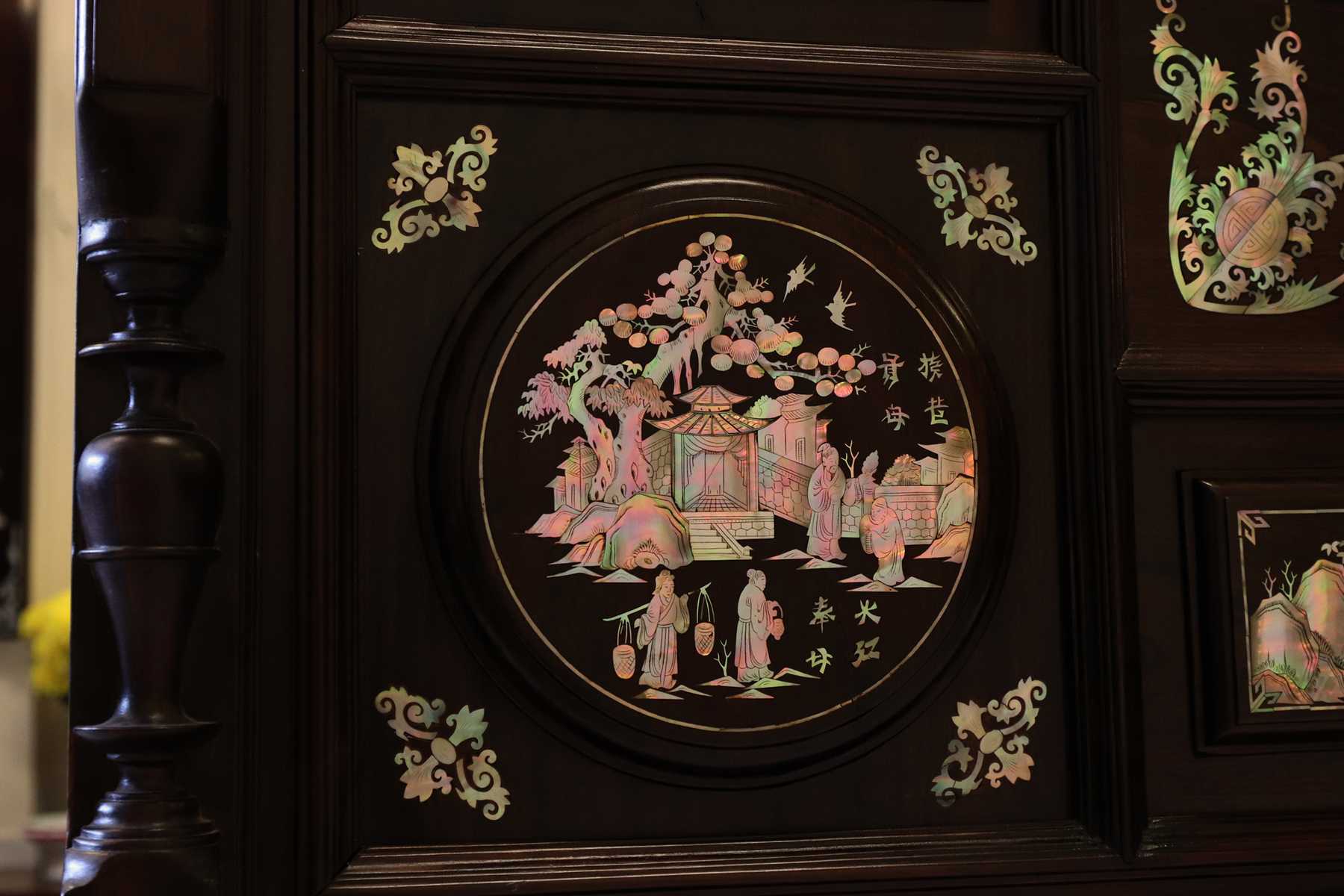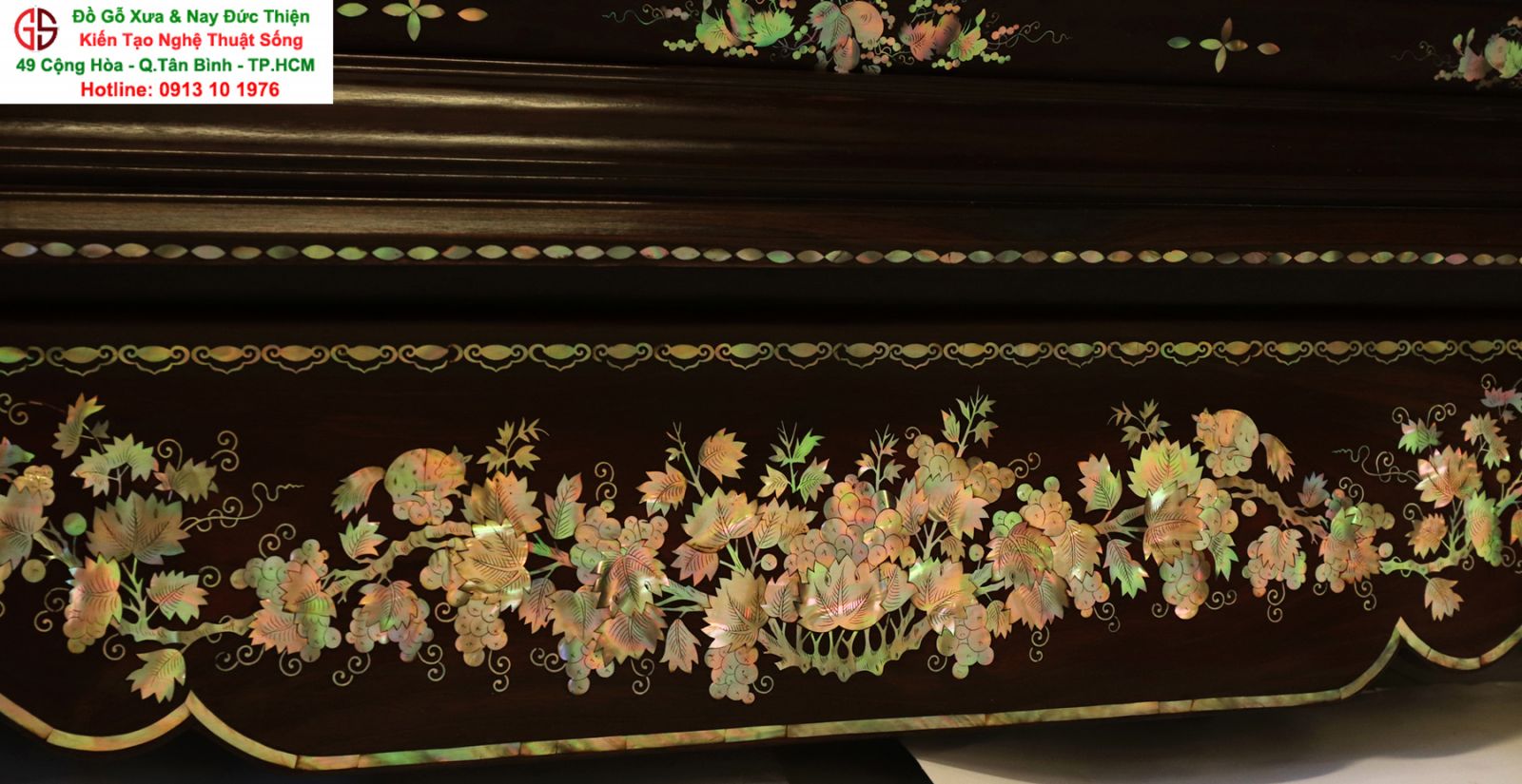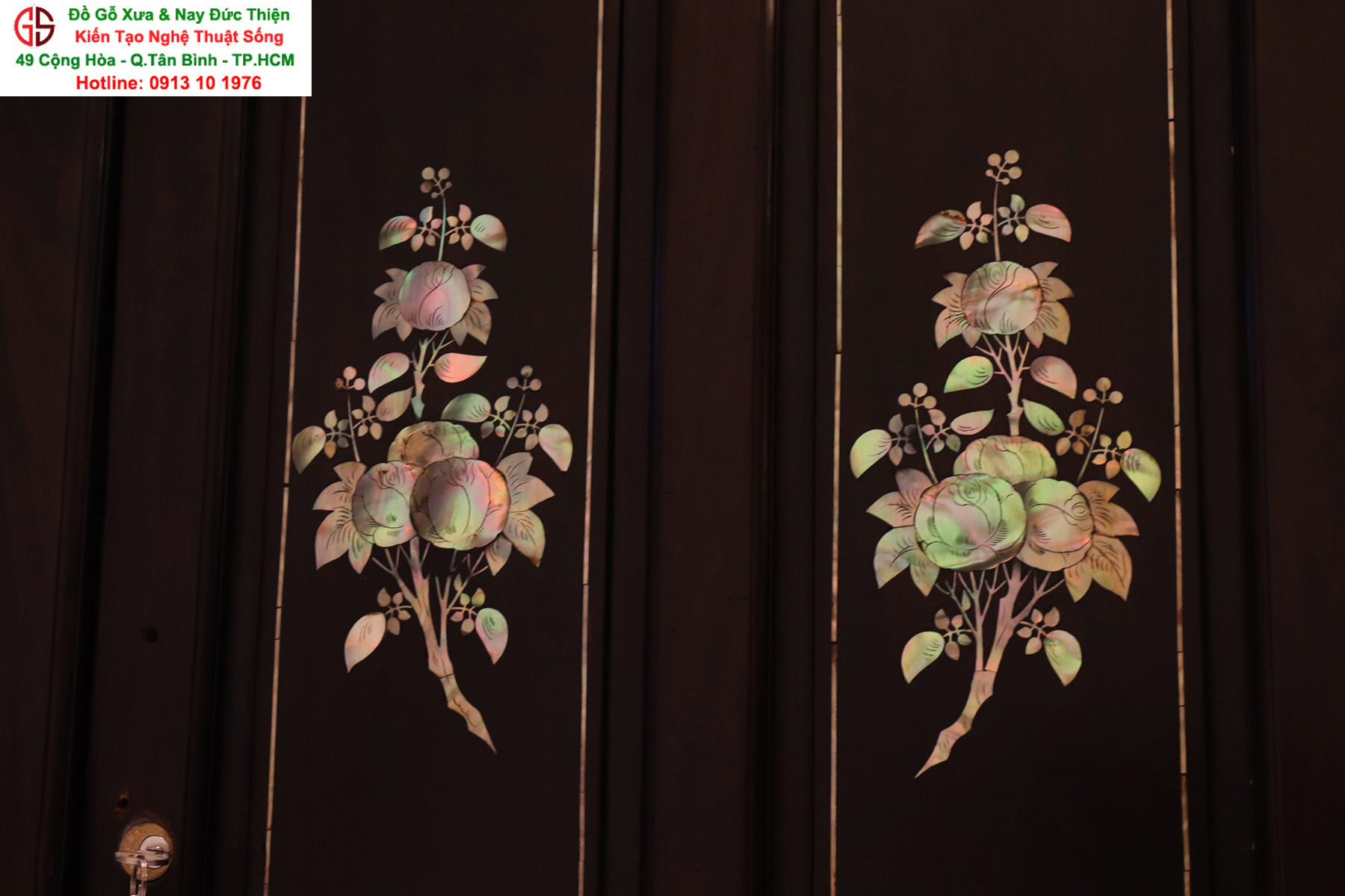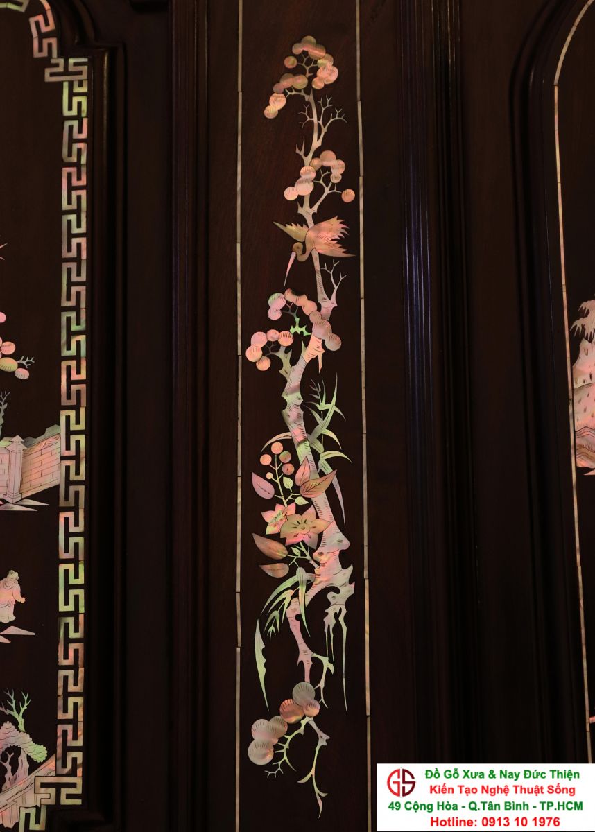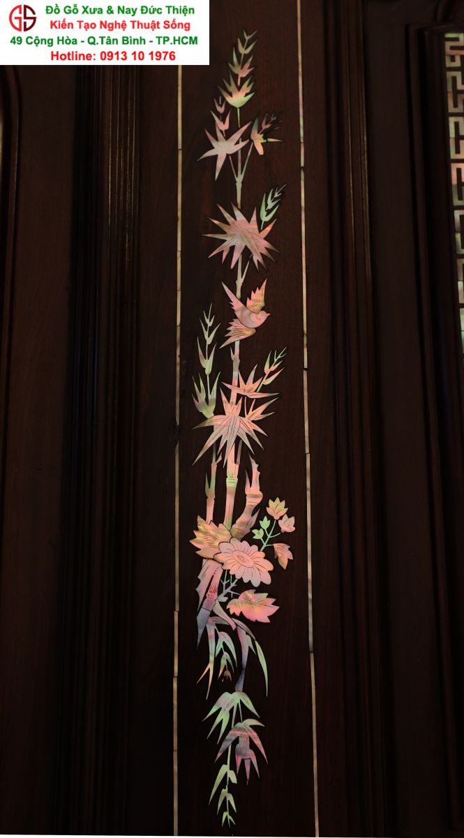 + Chất liệu: Gỗ Gụ + Khảm Ốc Xà Cừ