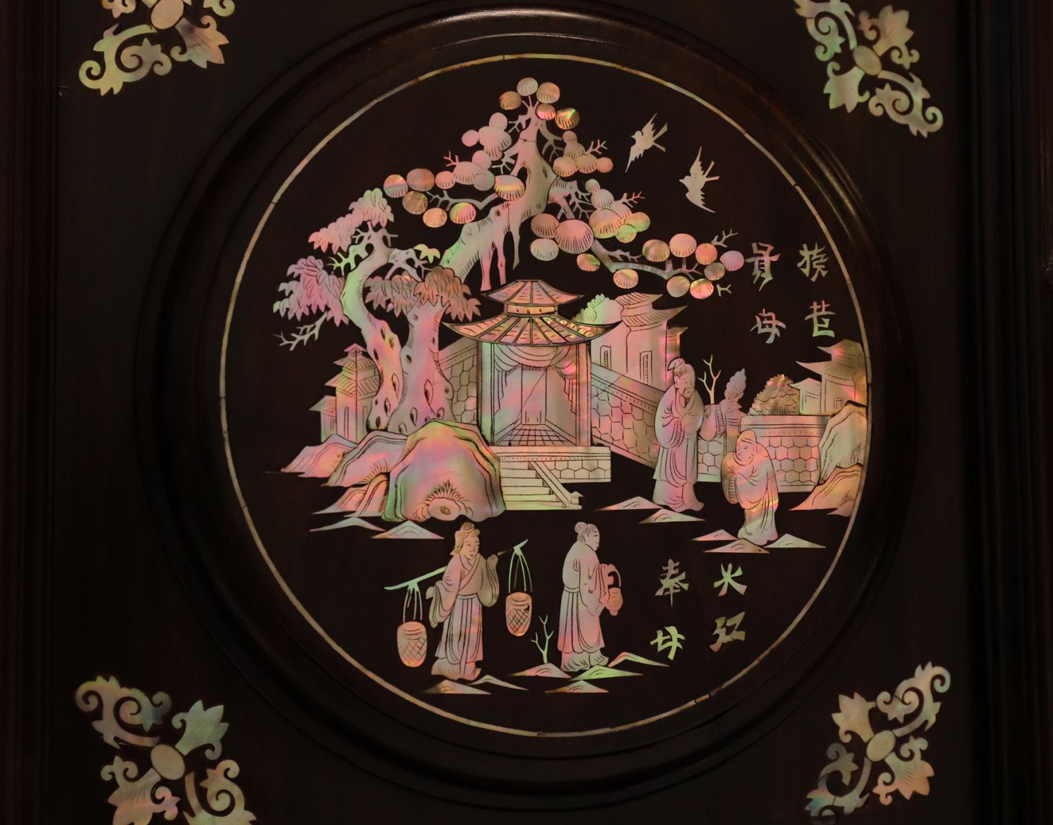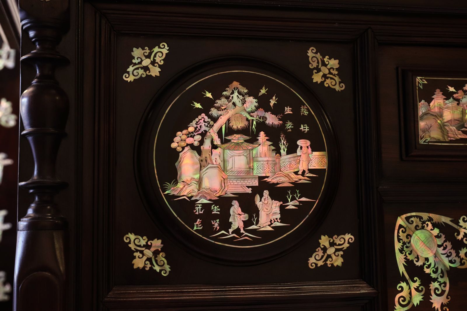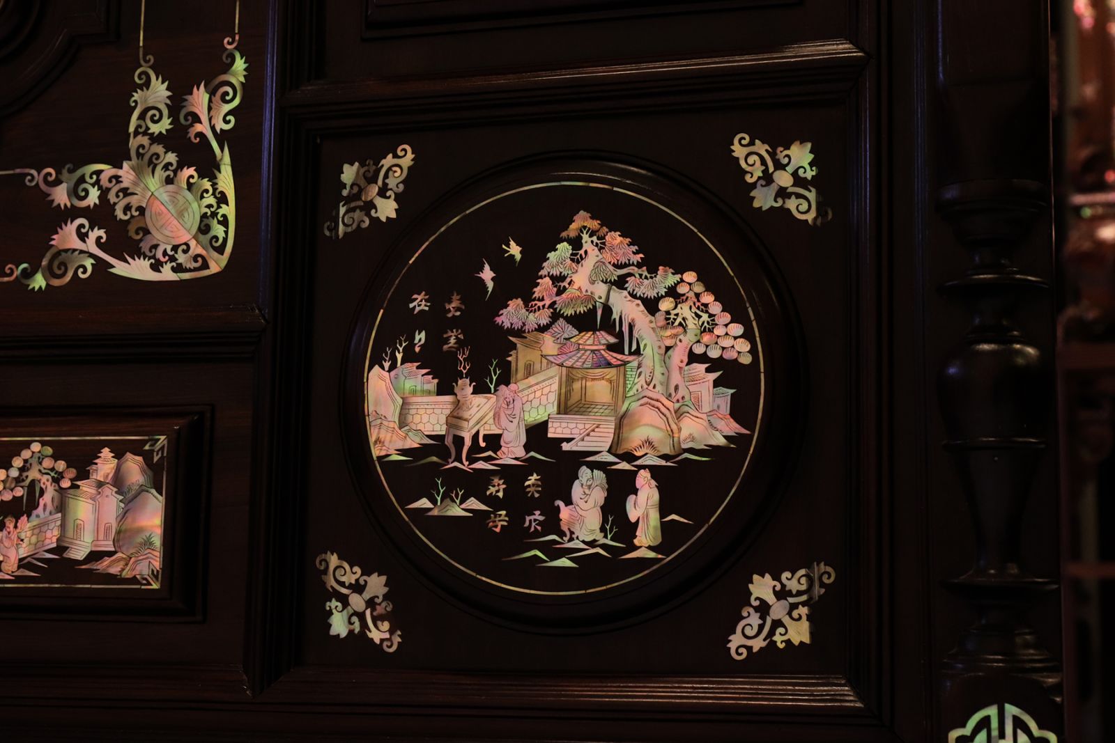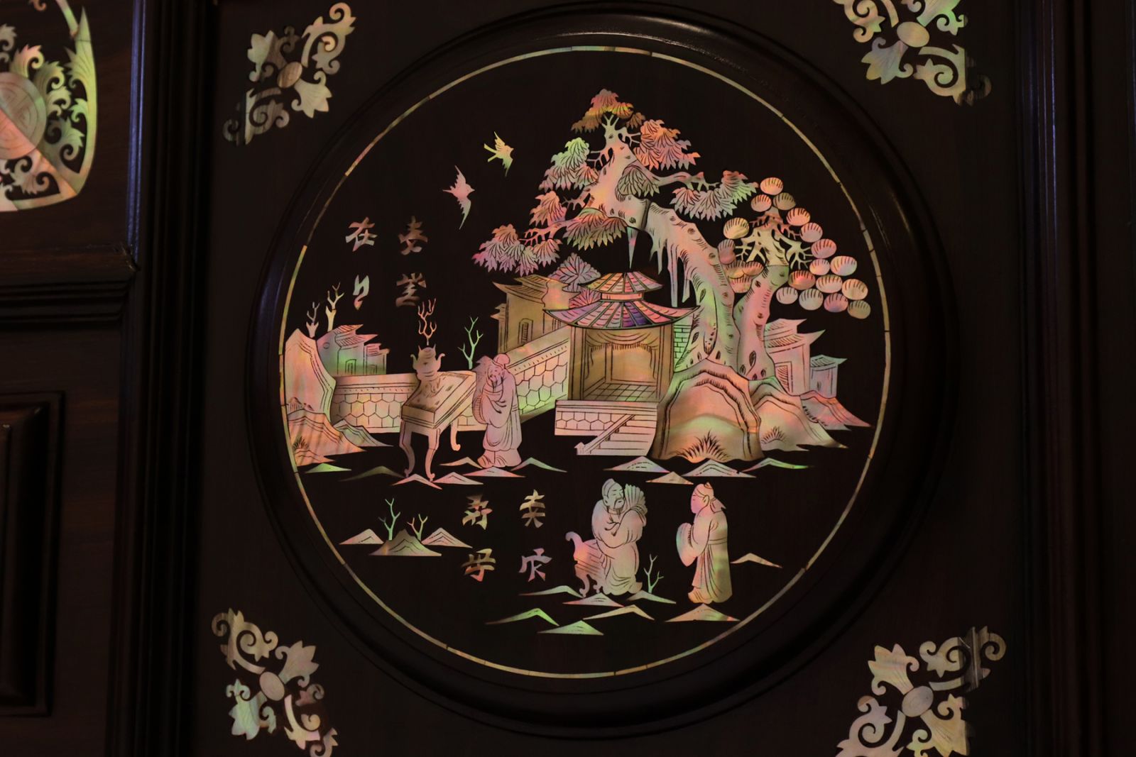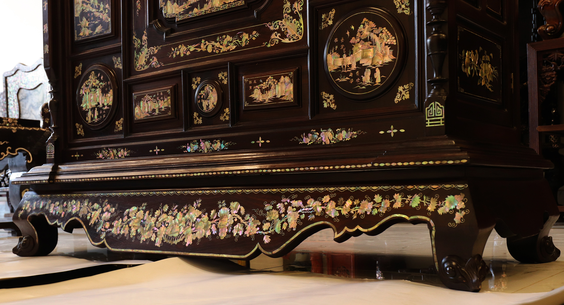 + Chất liệu: Gỗ Gụ + Khảm Ốc Xà Cừ