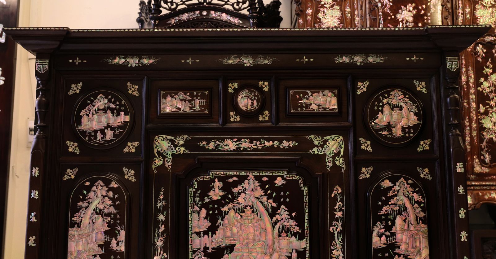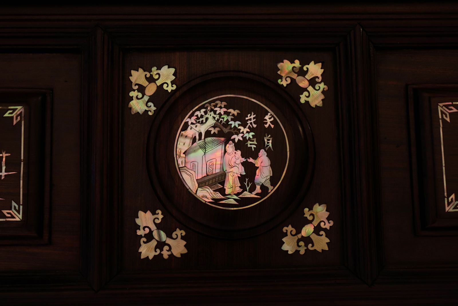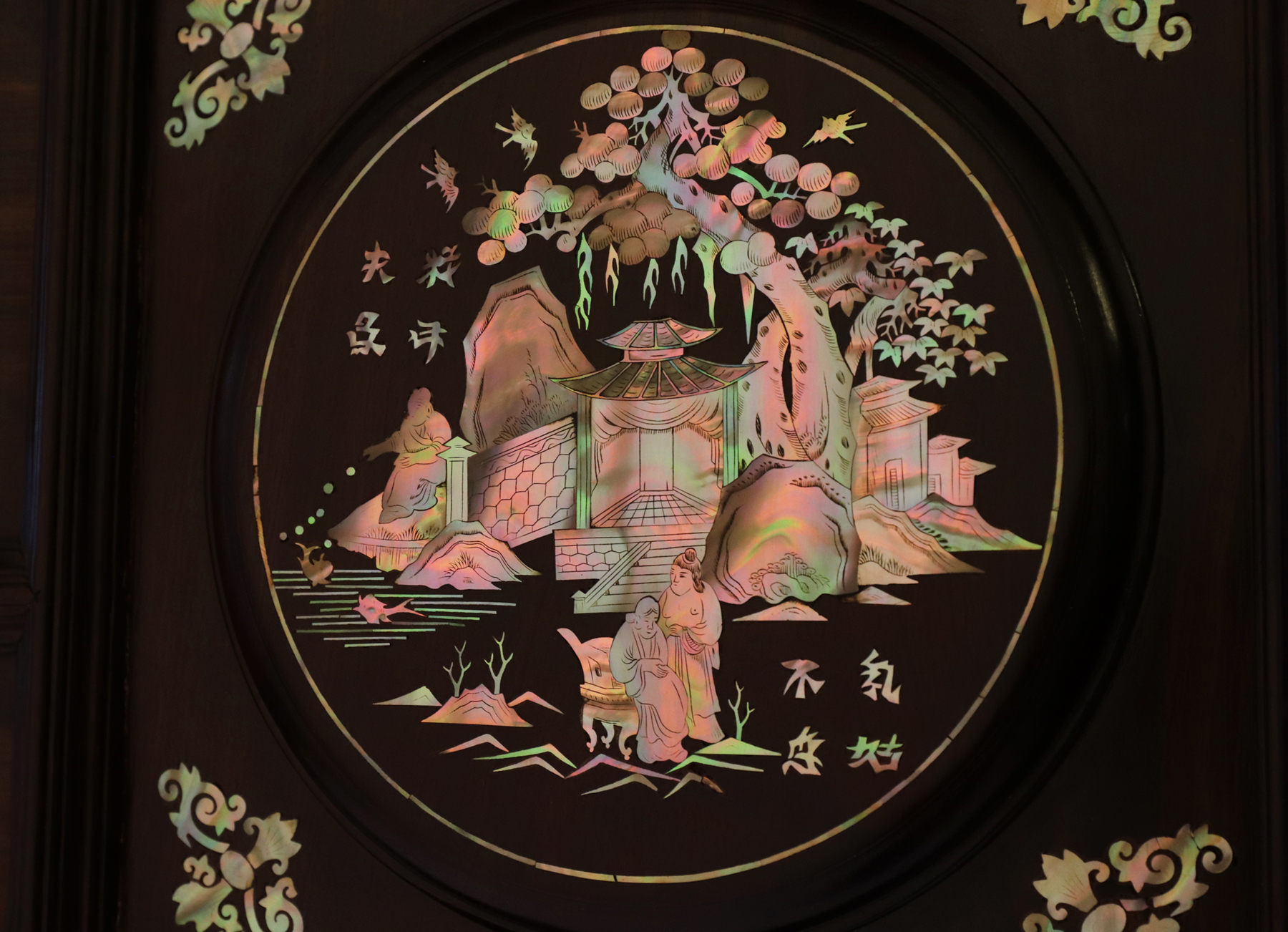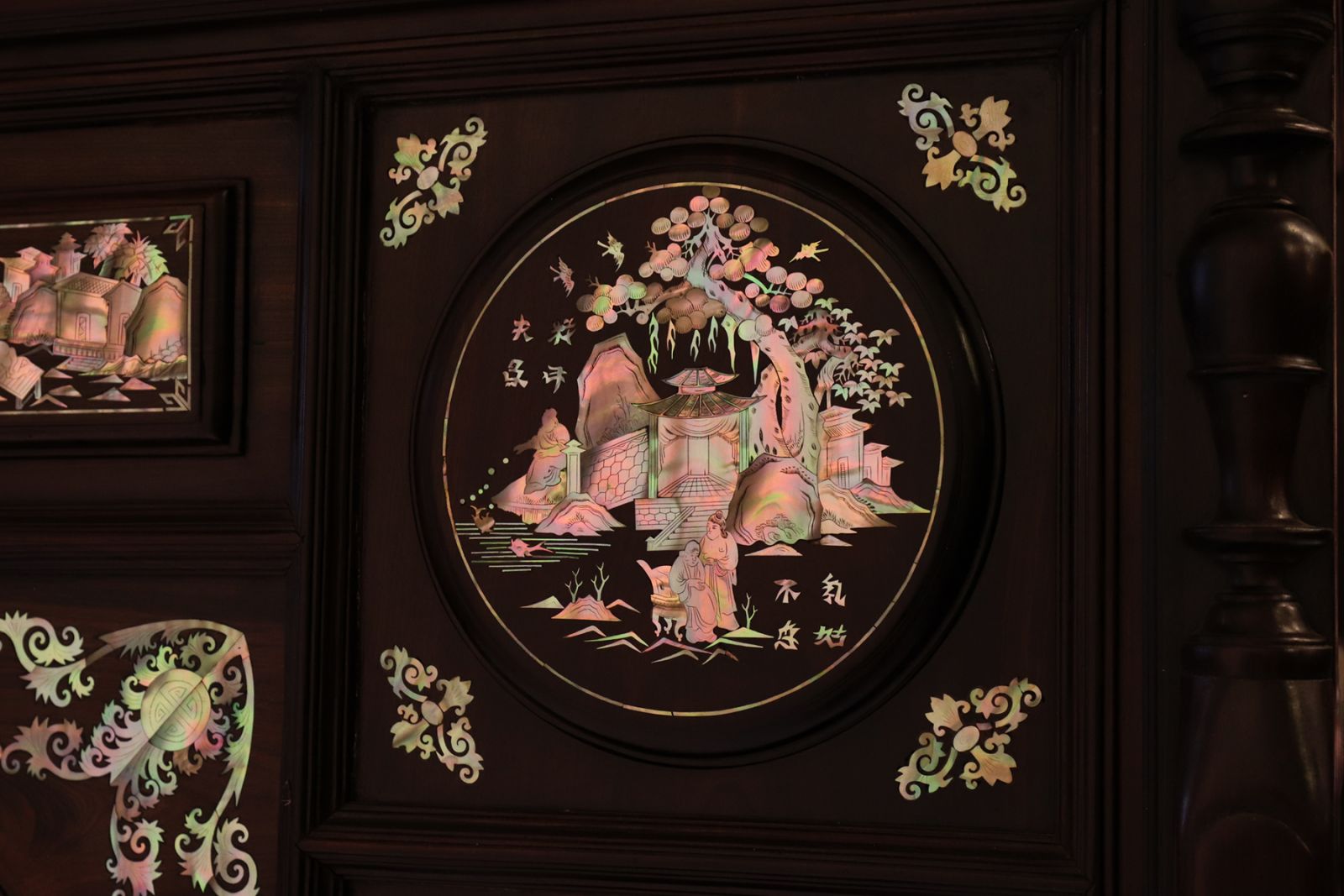 + Chất liệu: Gỗ Gụ + Khảm Ốc Xà Cừ