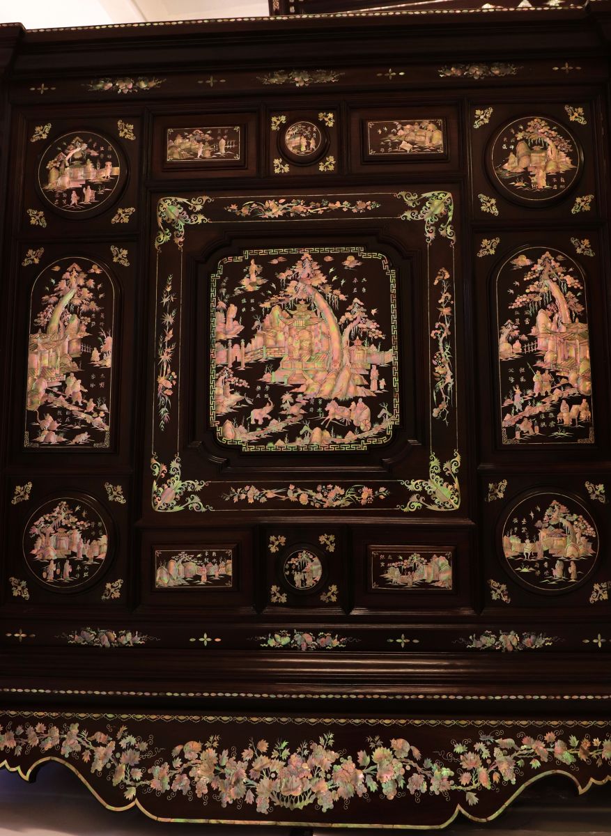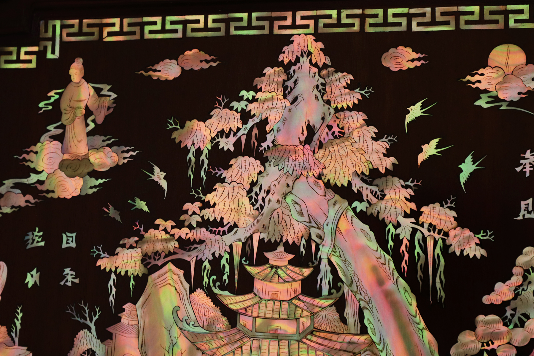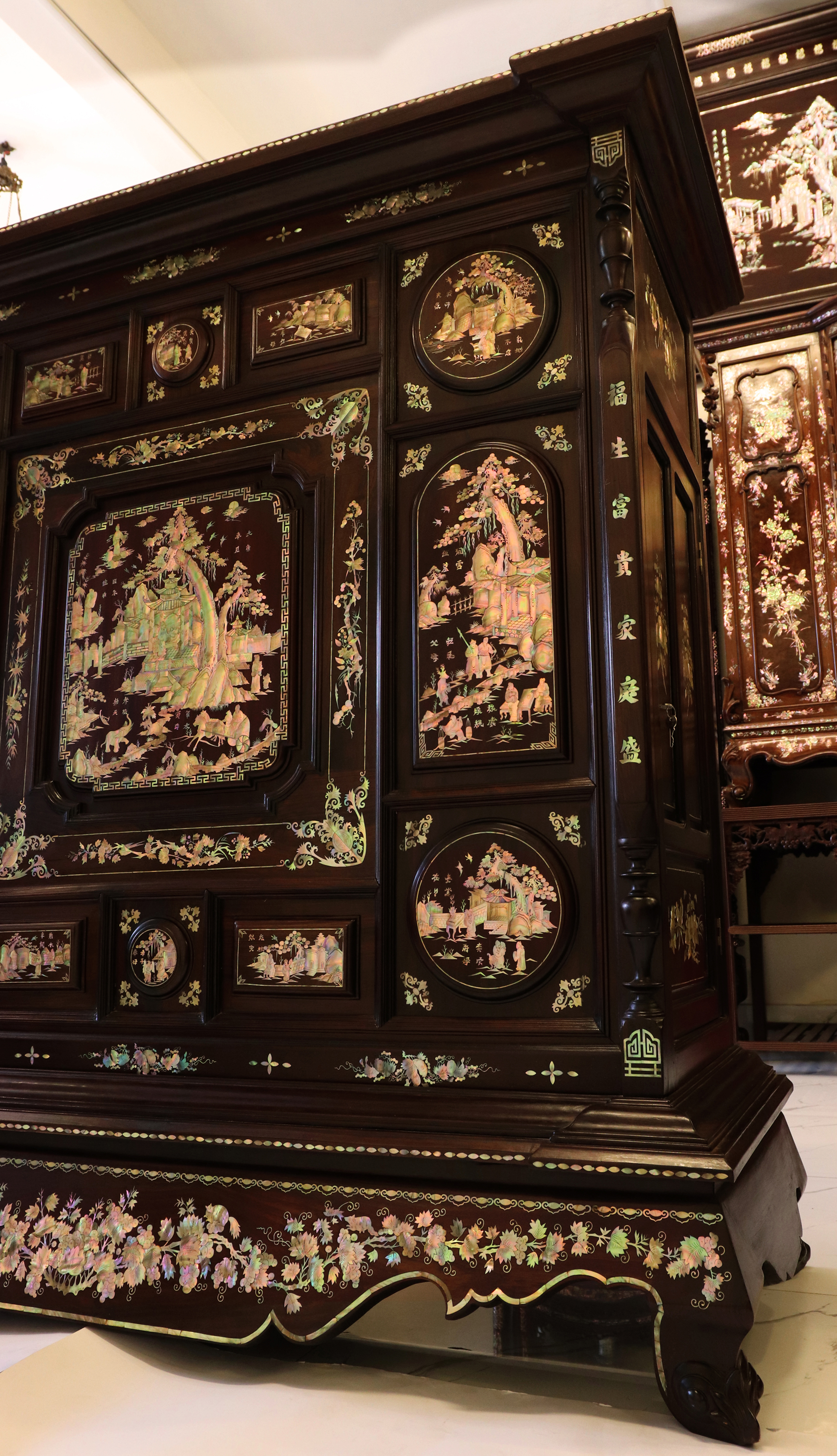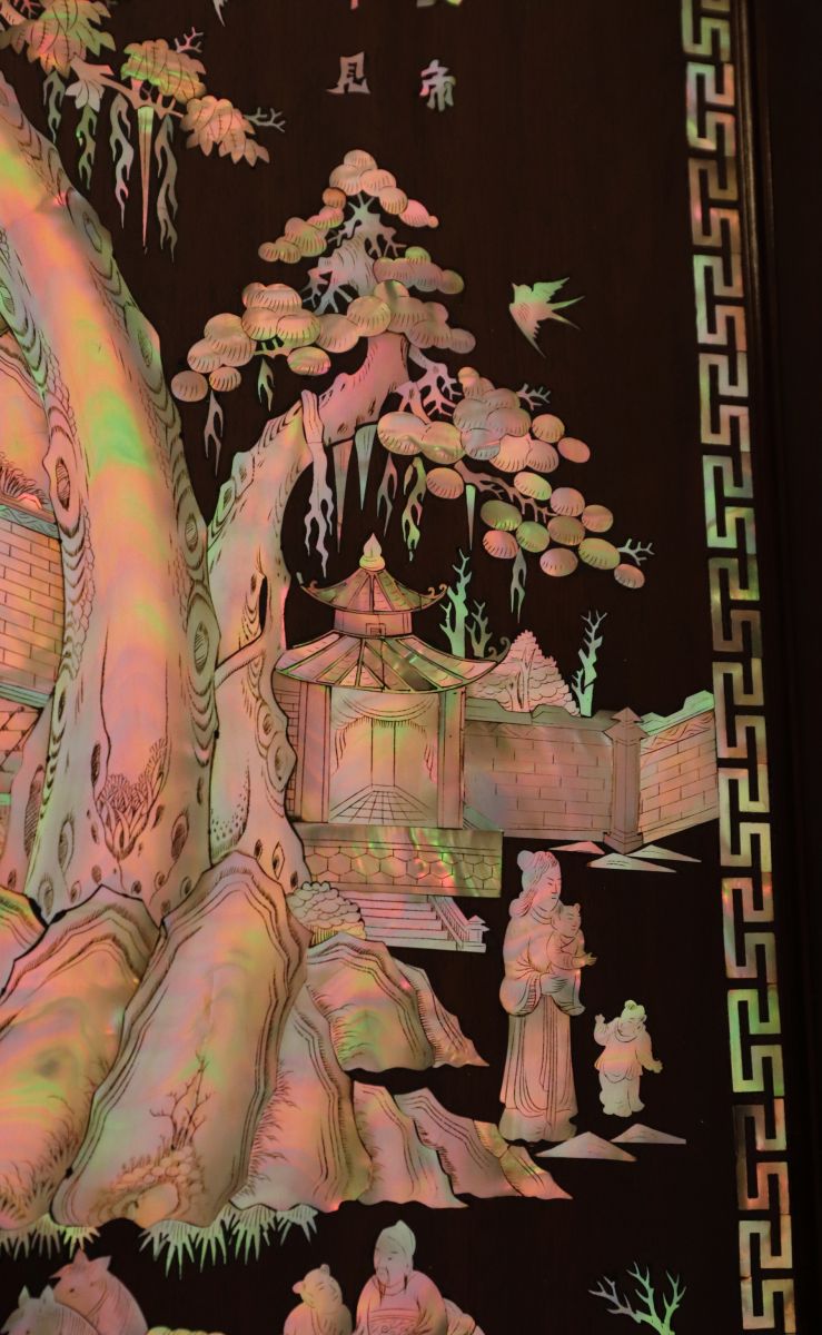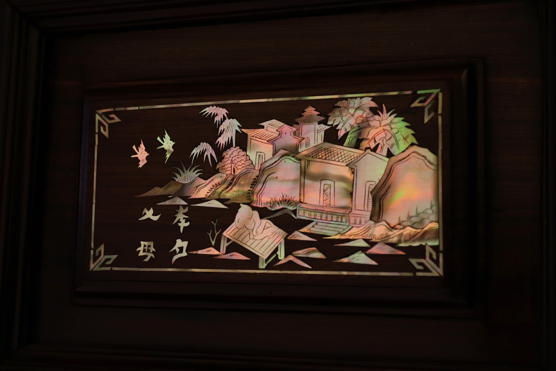 + Chất liệu: Gỗ Gụ + Khảm Ốc Xà Cừ