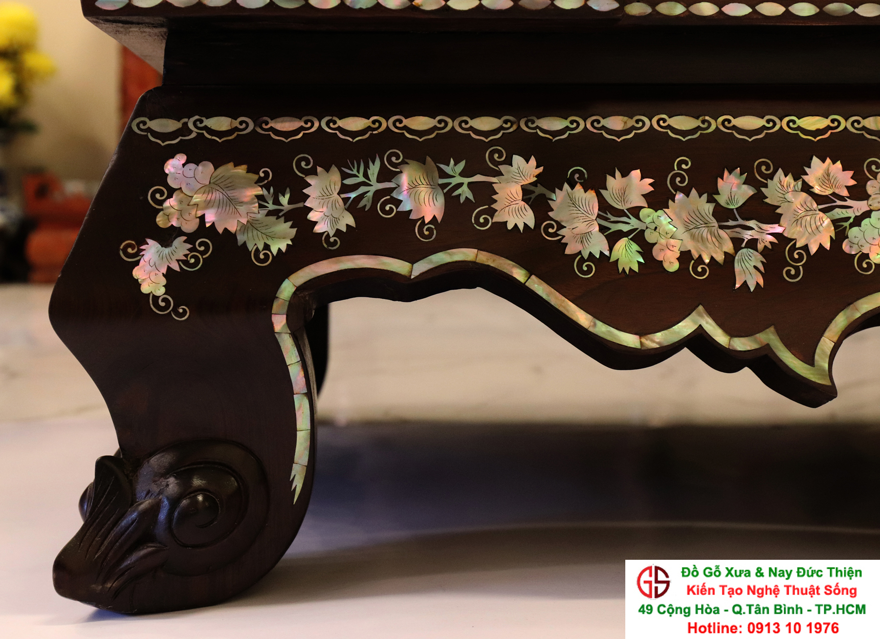 - Bàn ghế Louis, đôn trống gỗ trắc, bộ bàn ăn cẩn ốc, bàn ghế phương kỷ, bàn trung đường cẩn ốc xà cừ