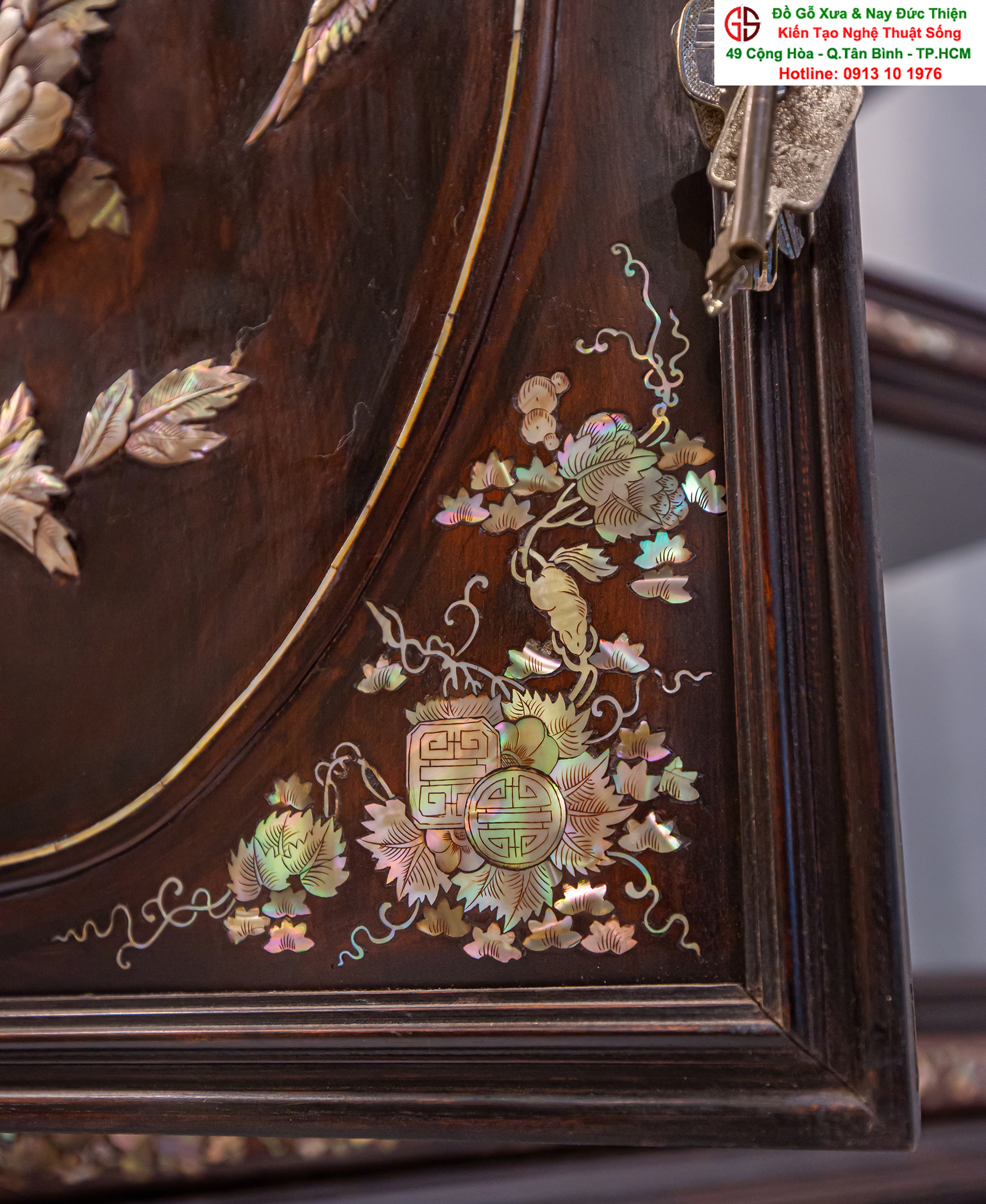 + Chất liệu : Gỗ Gụ + Khảm Ốc Xà Cừ ( Bảo hành sản phẩm về gỗ )