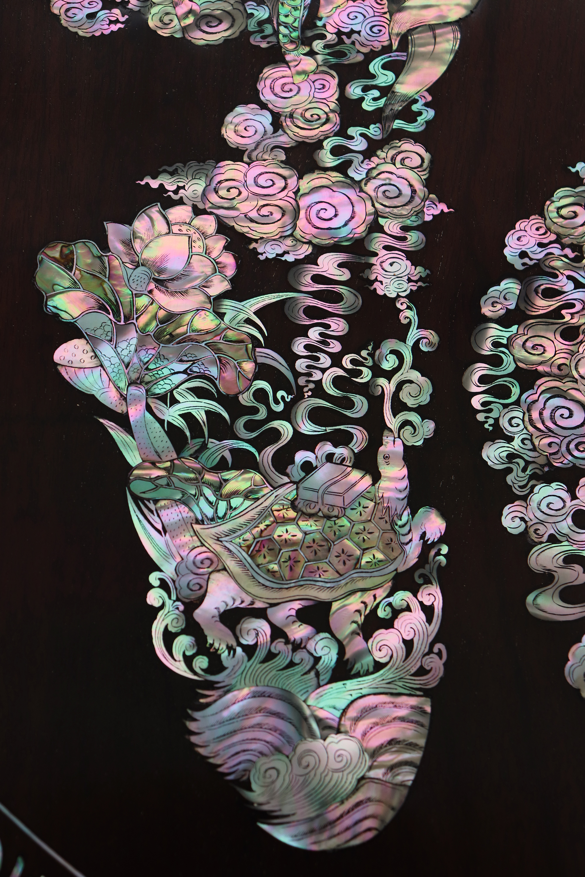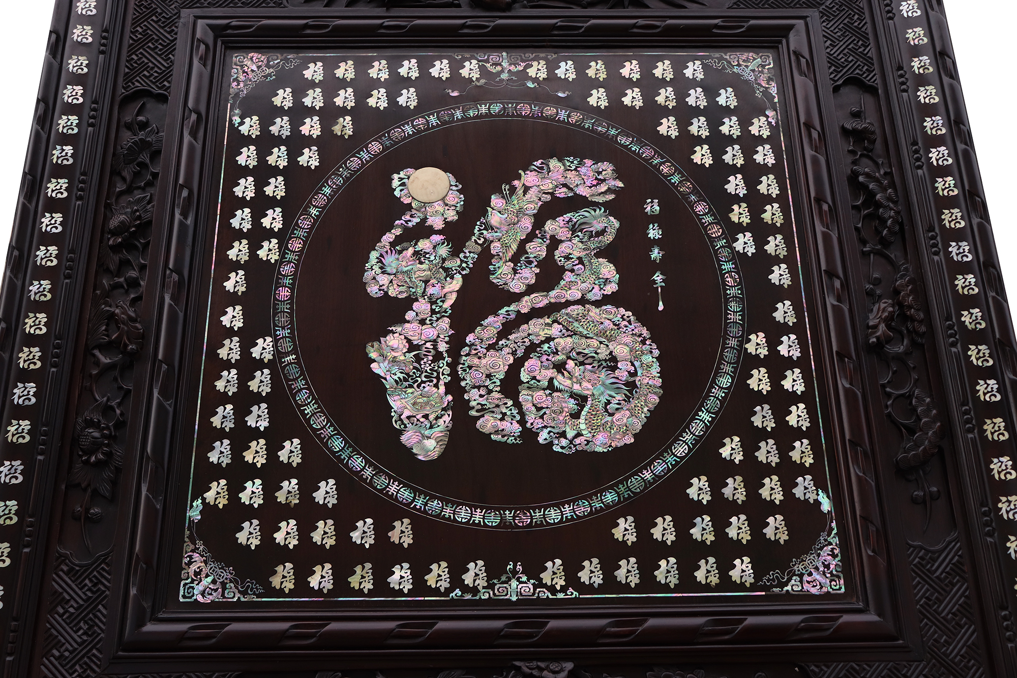 Tranh khảm ốc đẹp treo phòng khách, treo phòng thờ được sử dụng nhiều nhất vẫn là tranh bách phúc, bách lộc, bách thọ