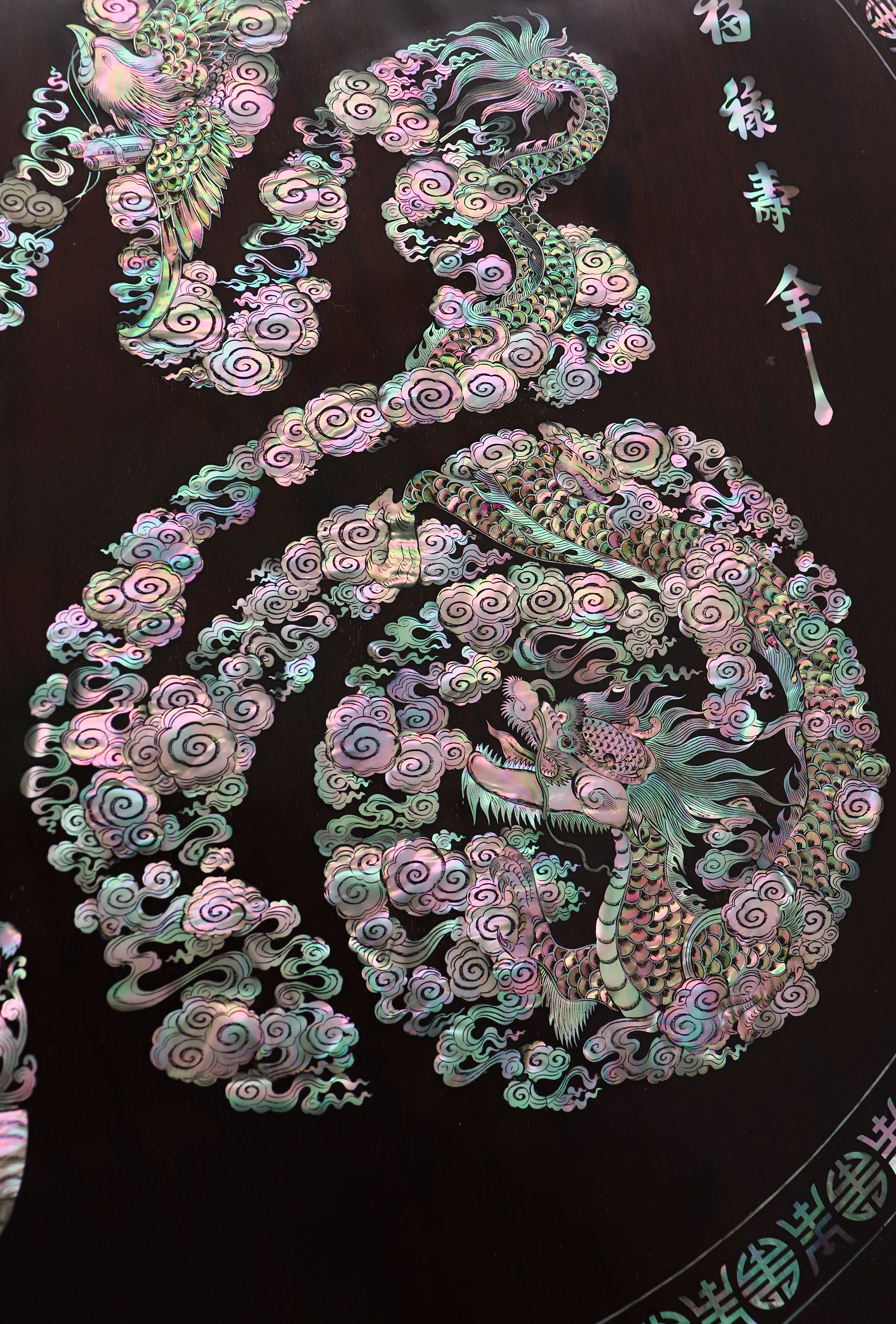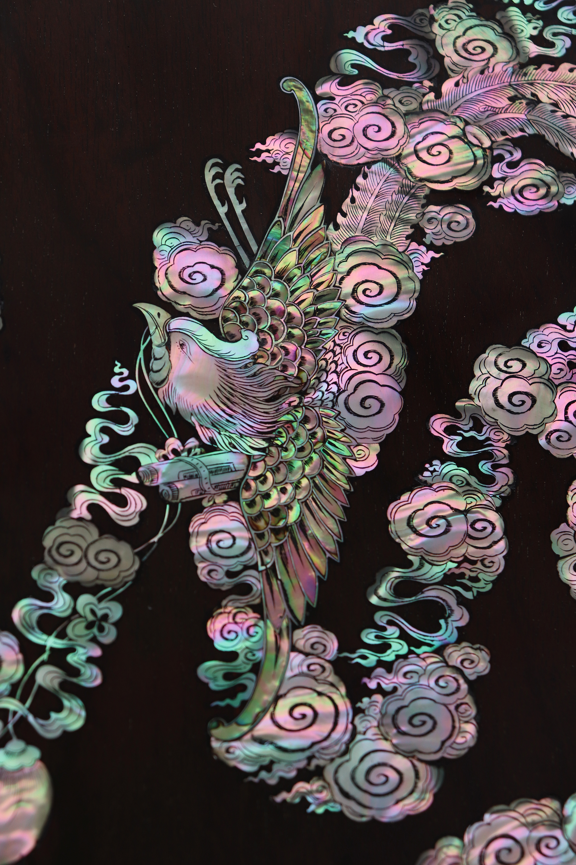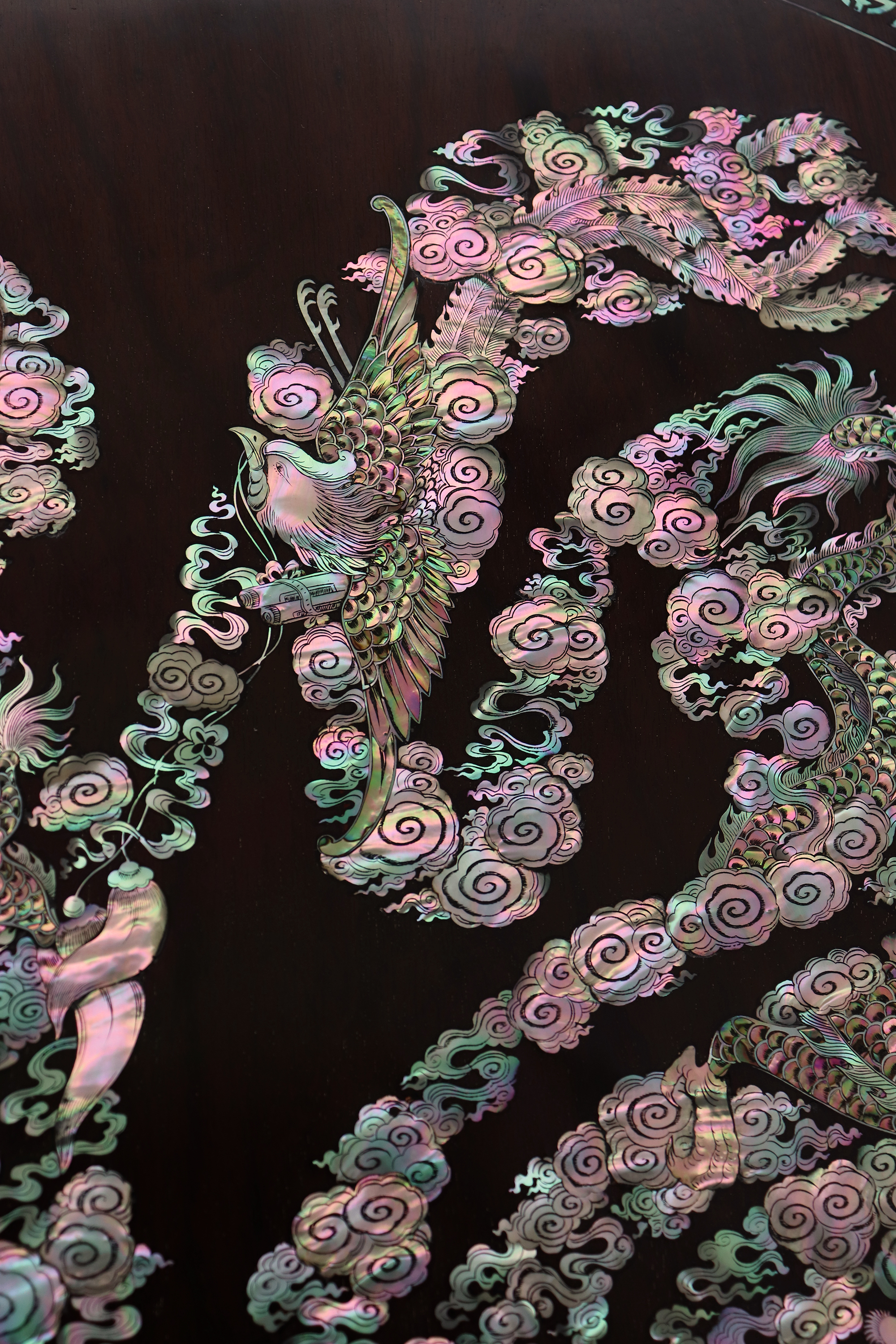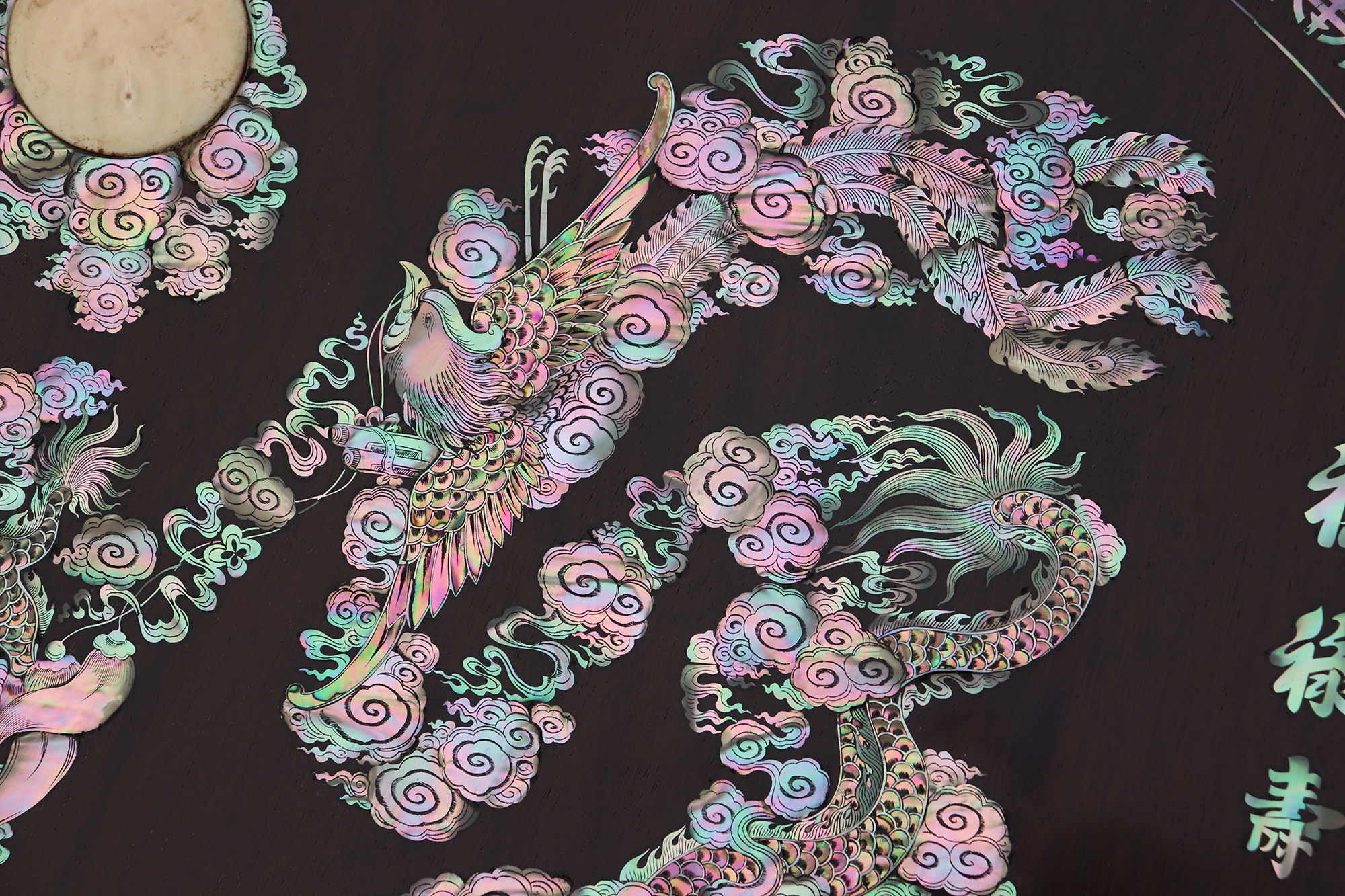 + Chất liệu: Gỗ gụ mật khảm ốc sà cừ 100% đỏ lửa vàng chanh xanh ngọc được hoàn thiện bởi bàn tay nghệ nhân.