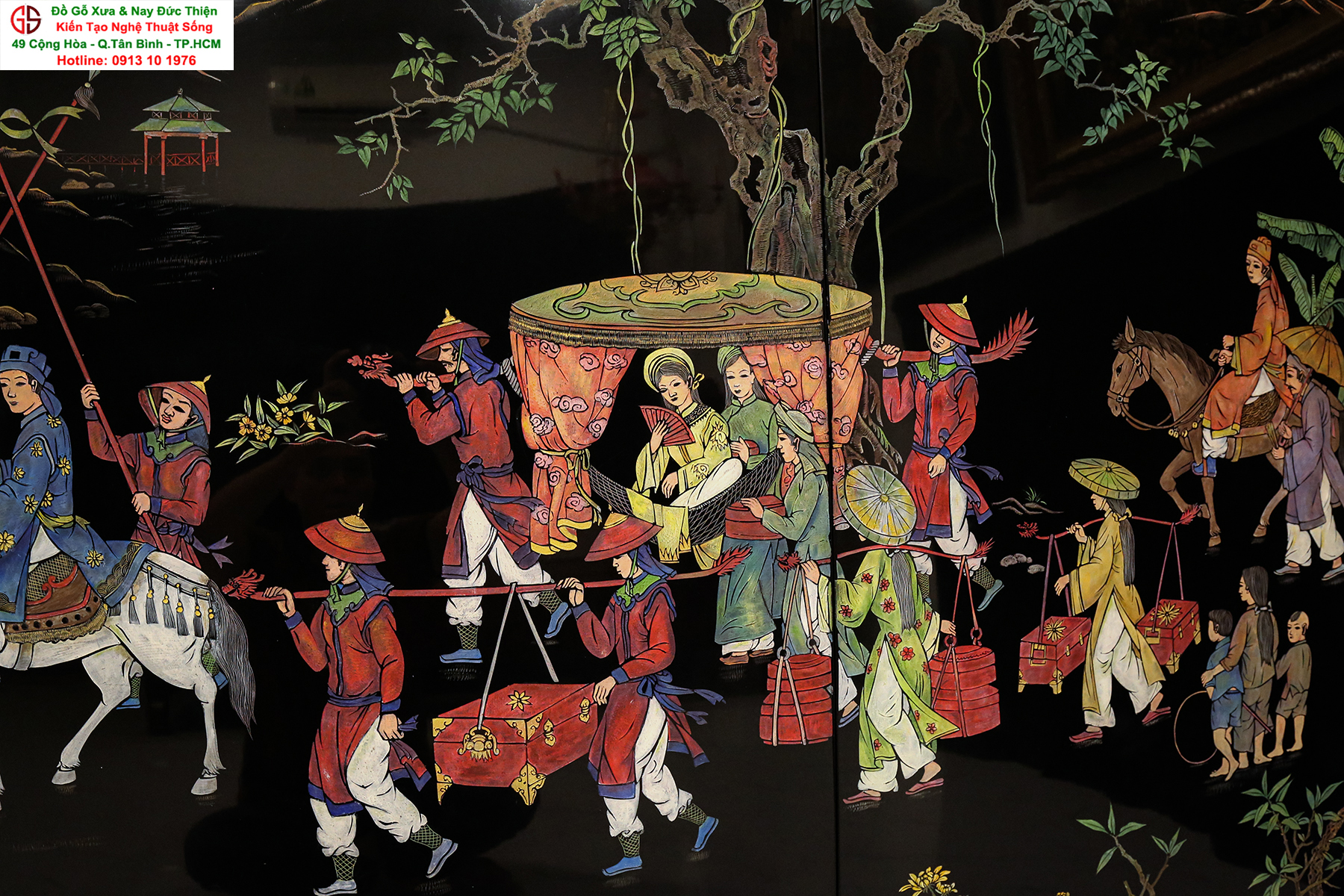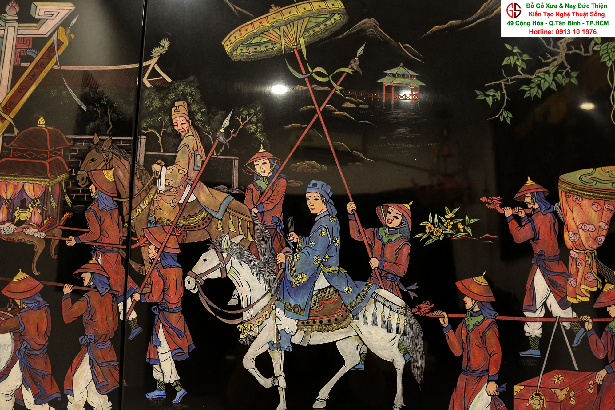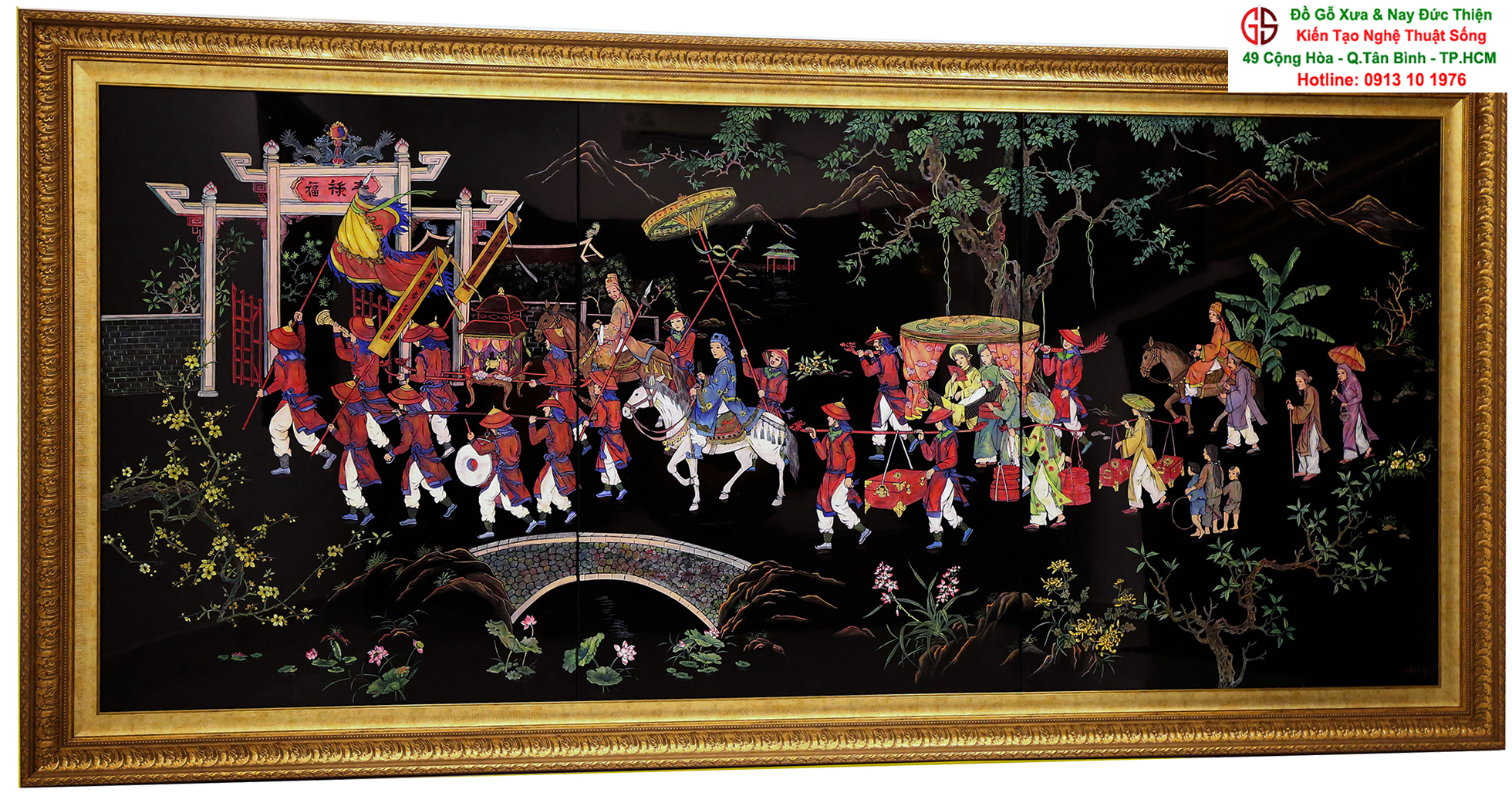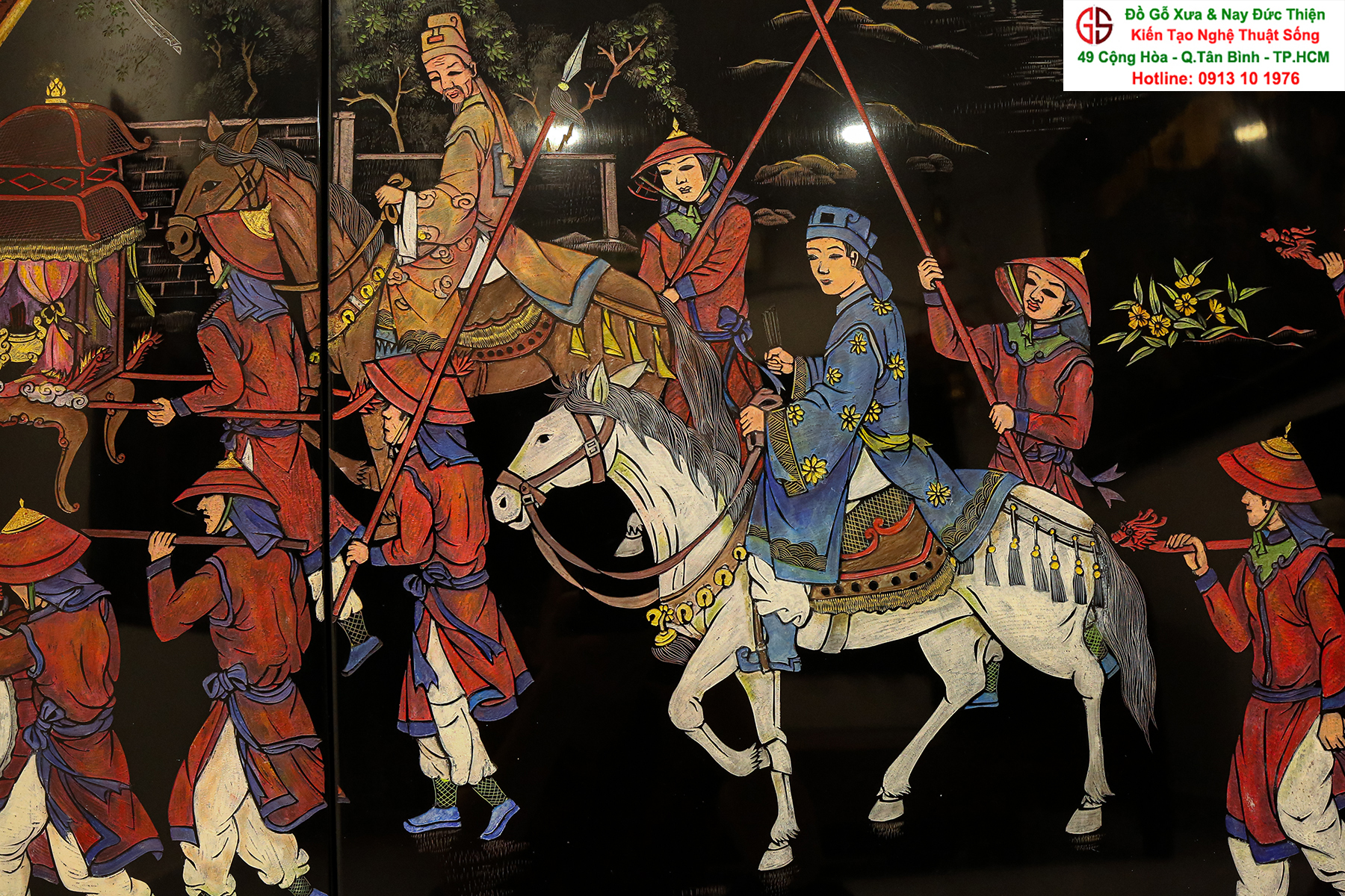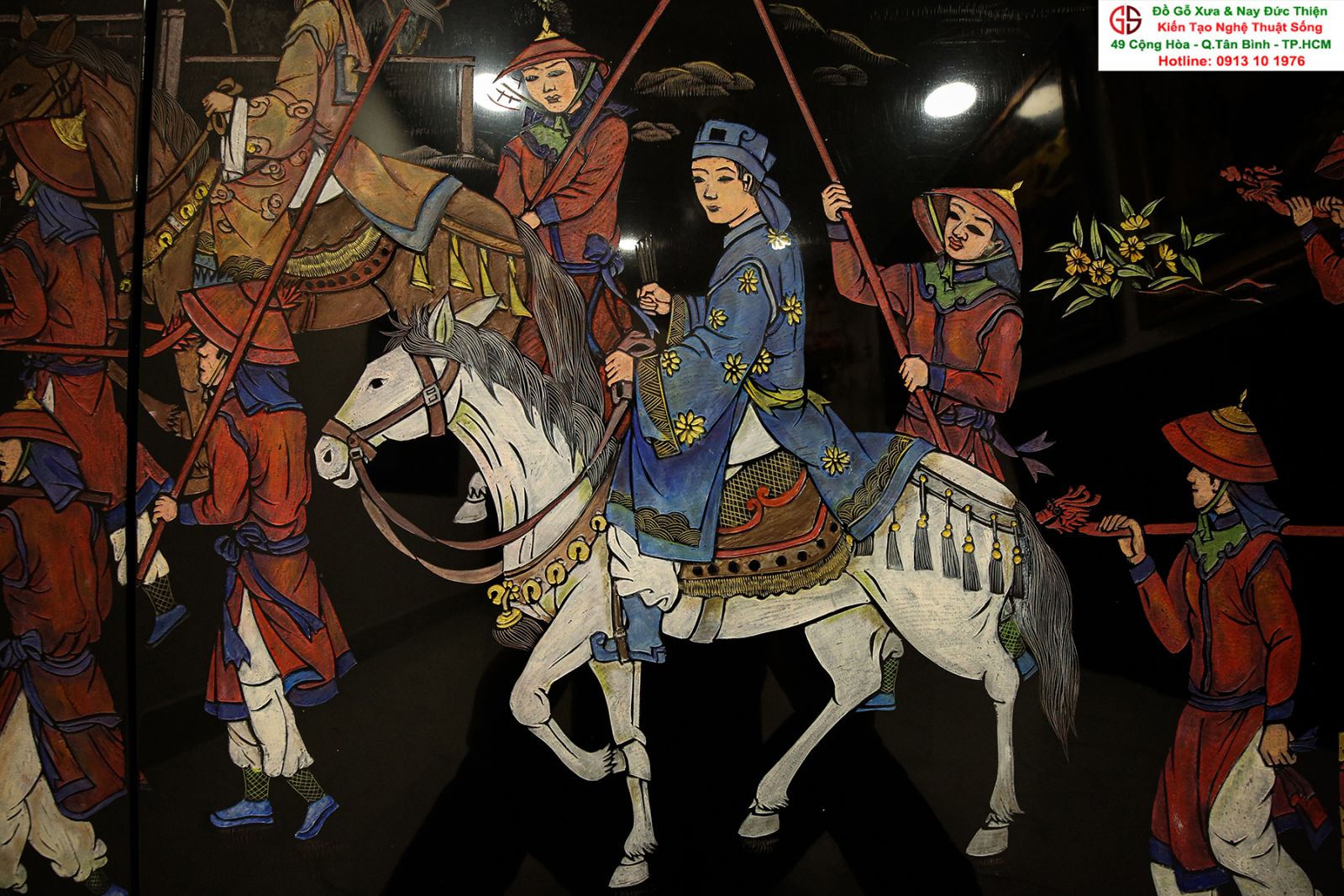 Trong bài viết này, Đồ Gỗ Xưa Và Nay Đức Thiện xin giới thiệu với các bạn một tác phẩm tranh sơn mài vô cùng độc đáo: Tấm tranh sơn mài khắc trũng với đề tài: Vinh Quy Bái Tổ. Đề tài vinh quy bái tổ là một đề tài rất thân thuộc trong đời sống văn hóa của người Việt ta, đã được nhiều họa sĩ, nhiều nghệ nhân thể hiện trên nhiều chất liệu khác nhau: Tranh giấy, tranh khảm ốc, tranh thêu và hiếm hơn là tranh sơn mài, đặc biệt là tranh sơn mài khắc trũng - đã được rất nhiều những người sành chơi nhất săn tìm về treo trong nhà.