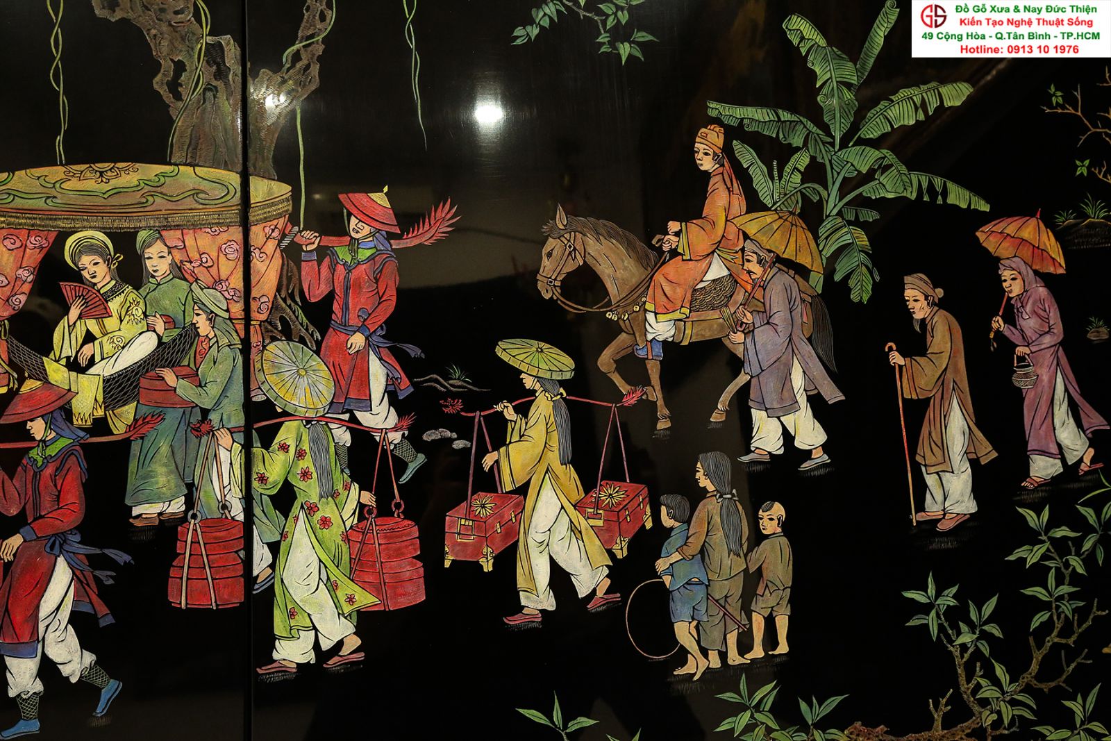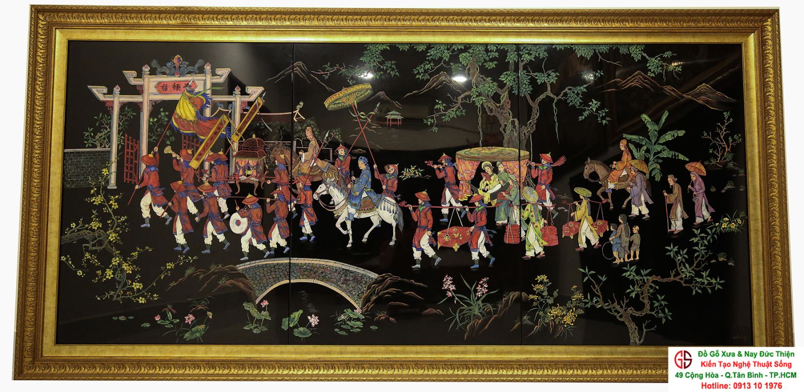 Với những không gian cổ việt đặc sắc sẽ không thể thiếu một bức tranh sơn mài đẹp, nổi tiếng nhất vẫn là những dòng tranh sơn mài thành lễ. Trong bài viết này, mời các bạn cùng ngắm tác phẩm tranh sơn mài khắc trũng đặc sắc đề tài vinh quy bái tổ